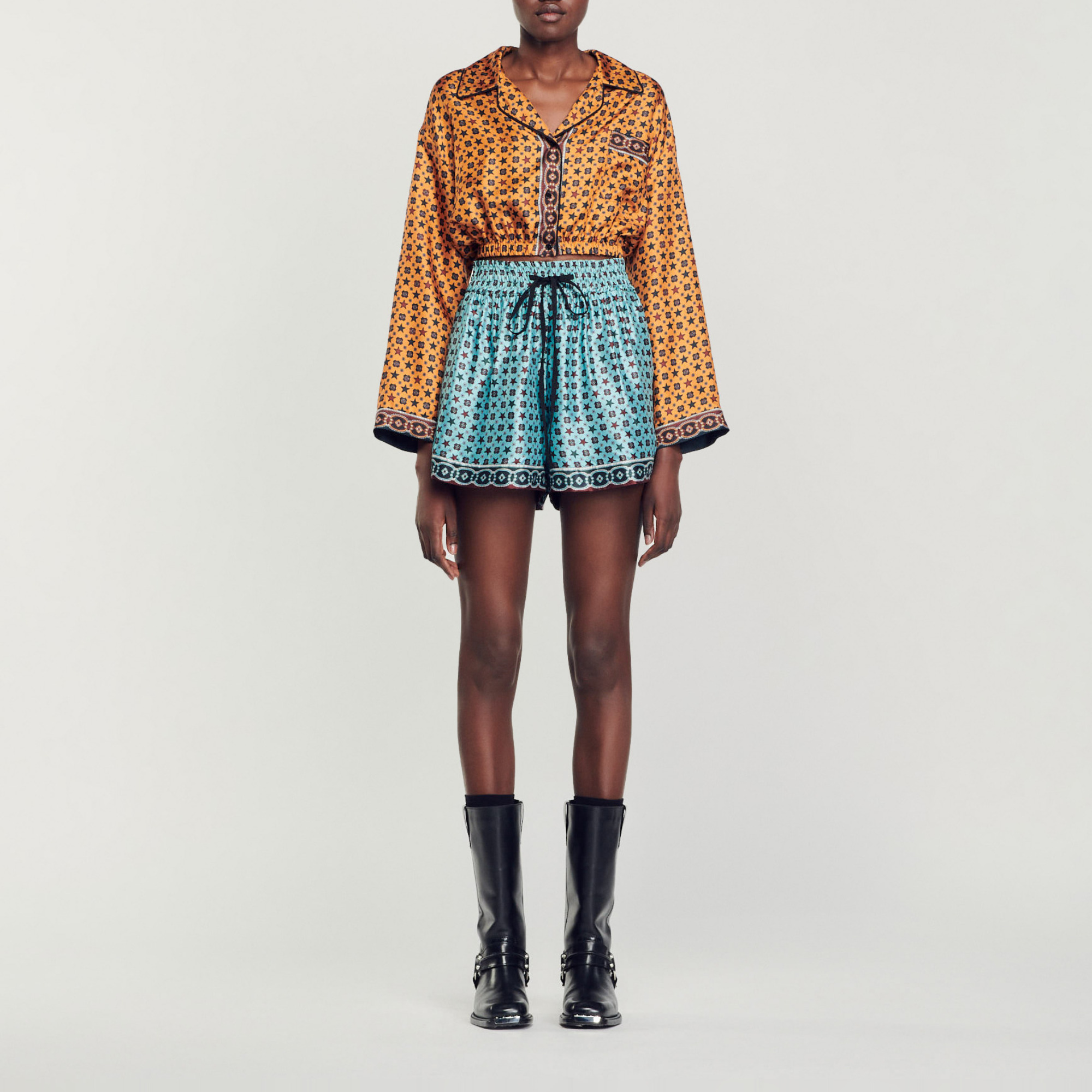 Sandro Women's cropped shirt Mixture of prints Long sleeves Concealed button placket Contrasting edges The viscose in this item is made of cellulose from sustainably managed forests.
