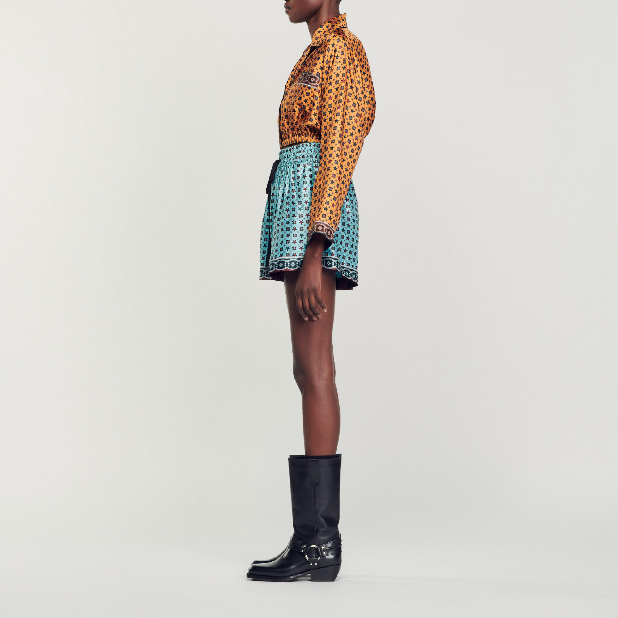 Sandro viscose Flowing cropped shirt with an elasticated waist embellished with a mixture of prints, long sleeves, a concealed button placket fastening and a piped breast pocket.