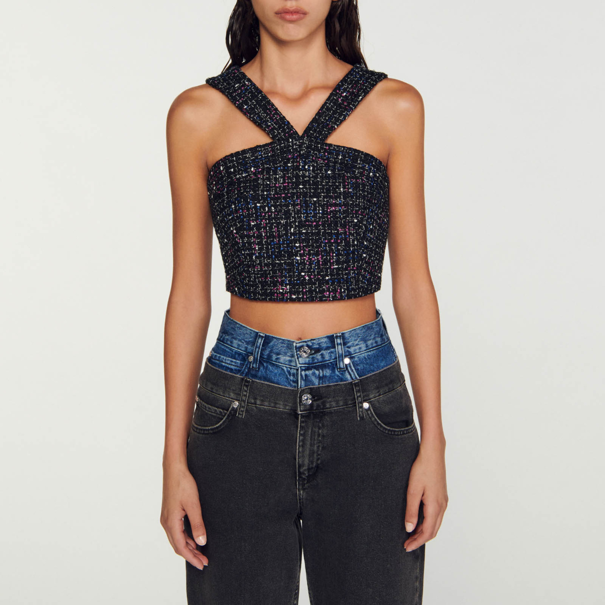 Sandro Women's short tweed top Flat V-shaped straps Zip fastening This top matches the skirt and the jacket.