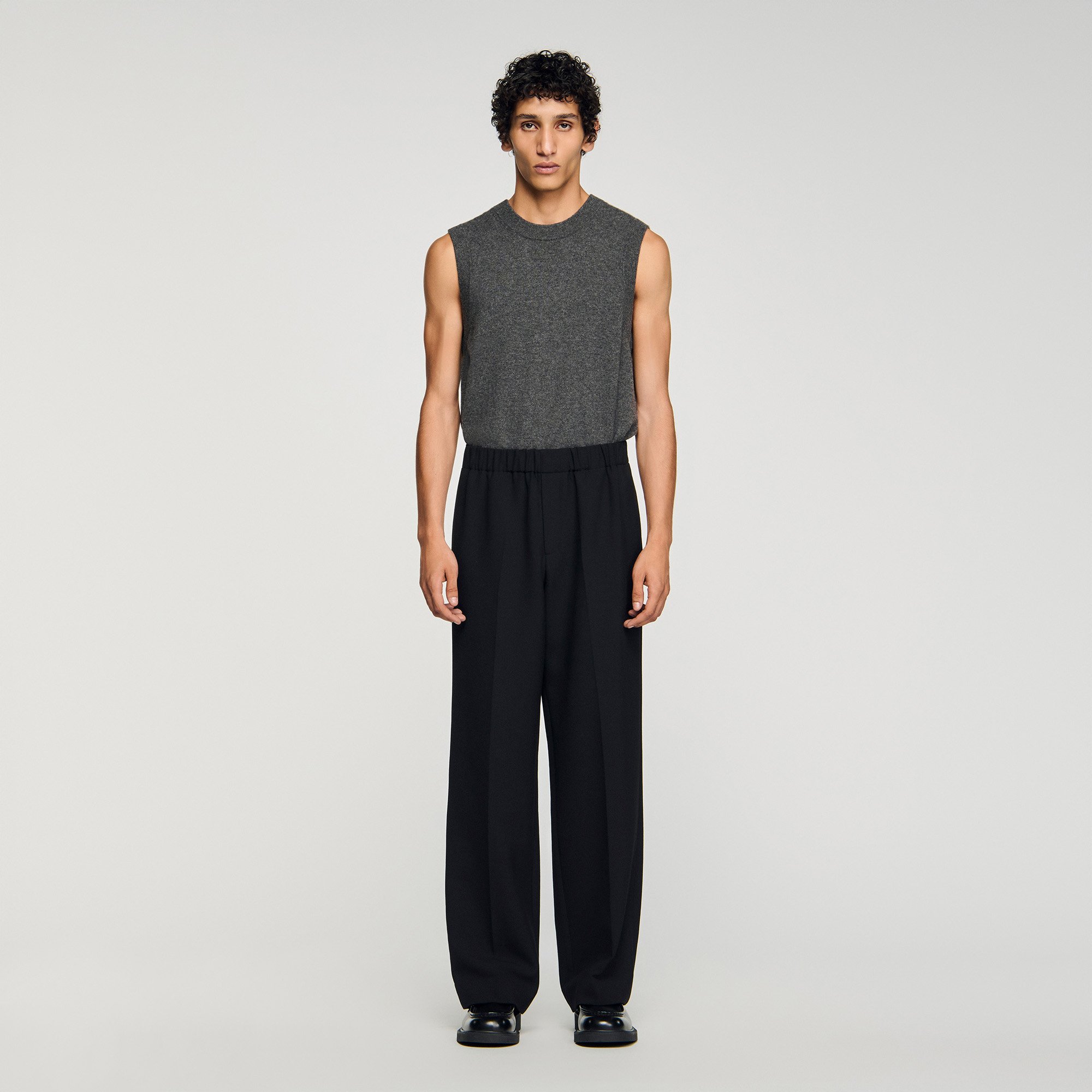 Sandro Men's wide-leg trousers Elasticated waist Side pockets Runs Large.