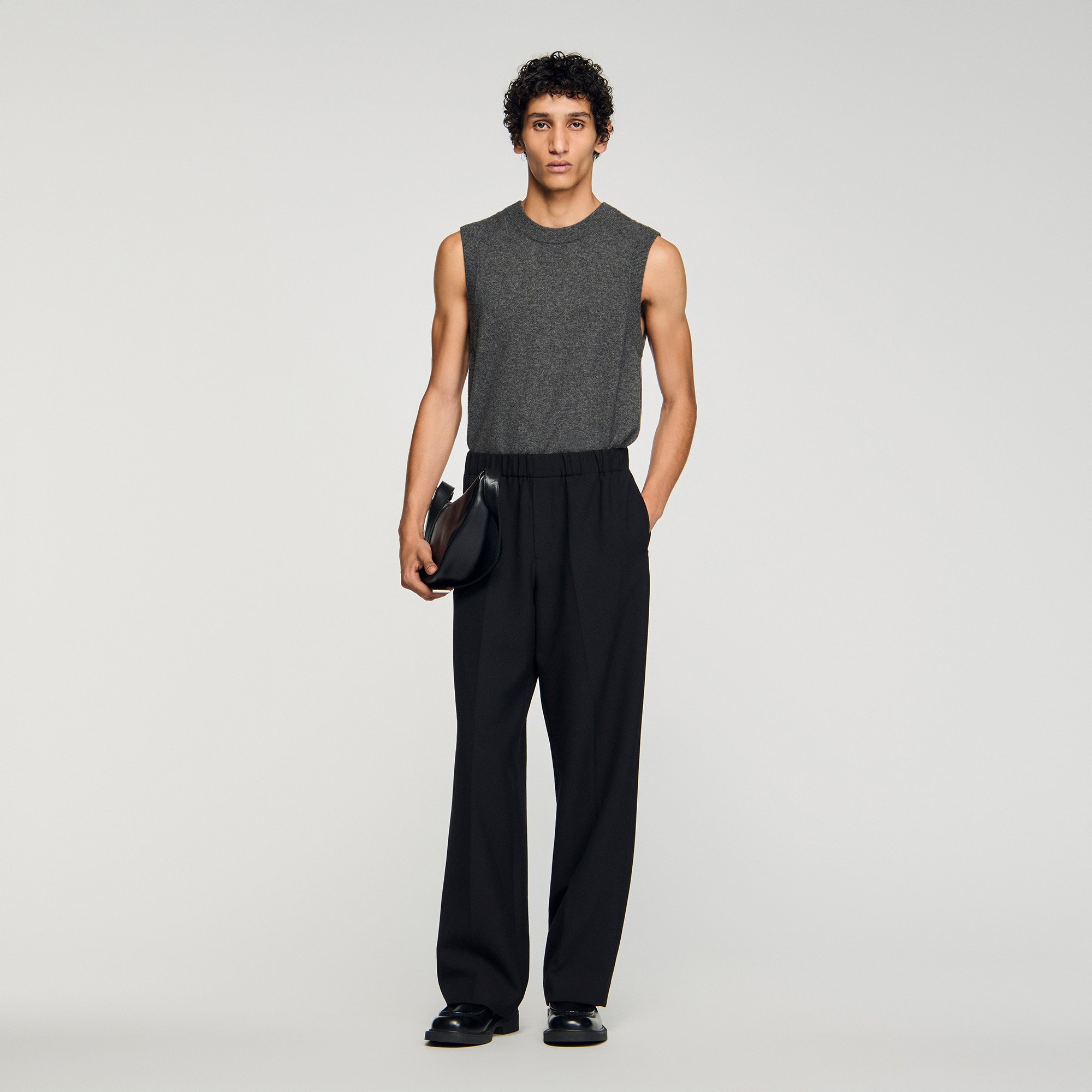 Sandro Men's wide-leg trousers Elasticated waist Side pockets Runs Large.