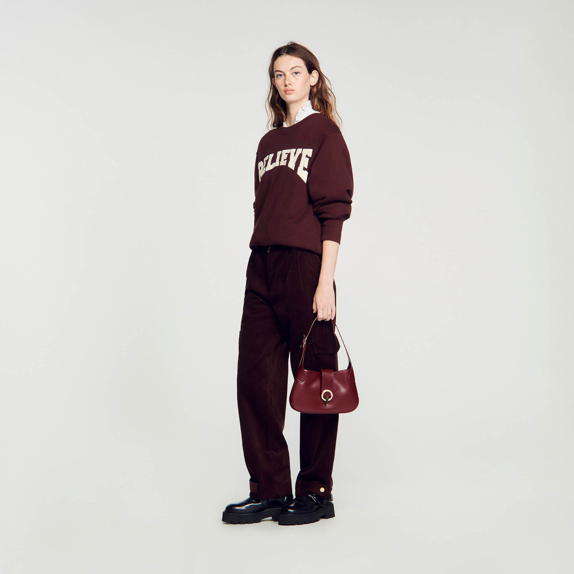 Sandro Women's bag Carried on the shoulder Smooth leather Signature clasp Leather and cotton lining Handle with buckle Magnetic fastening Inside pocket Width: