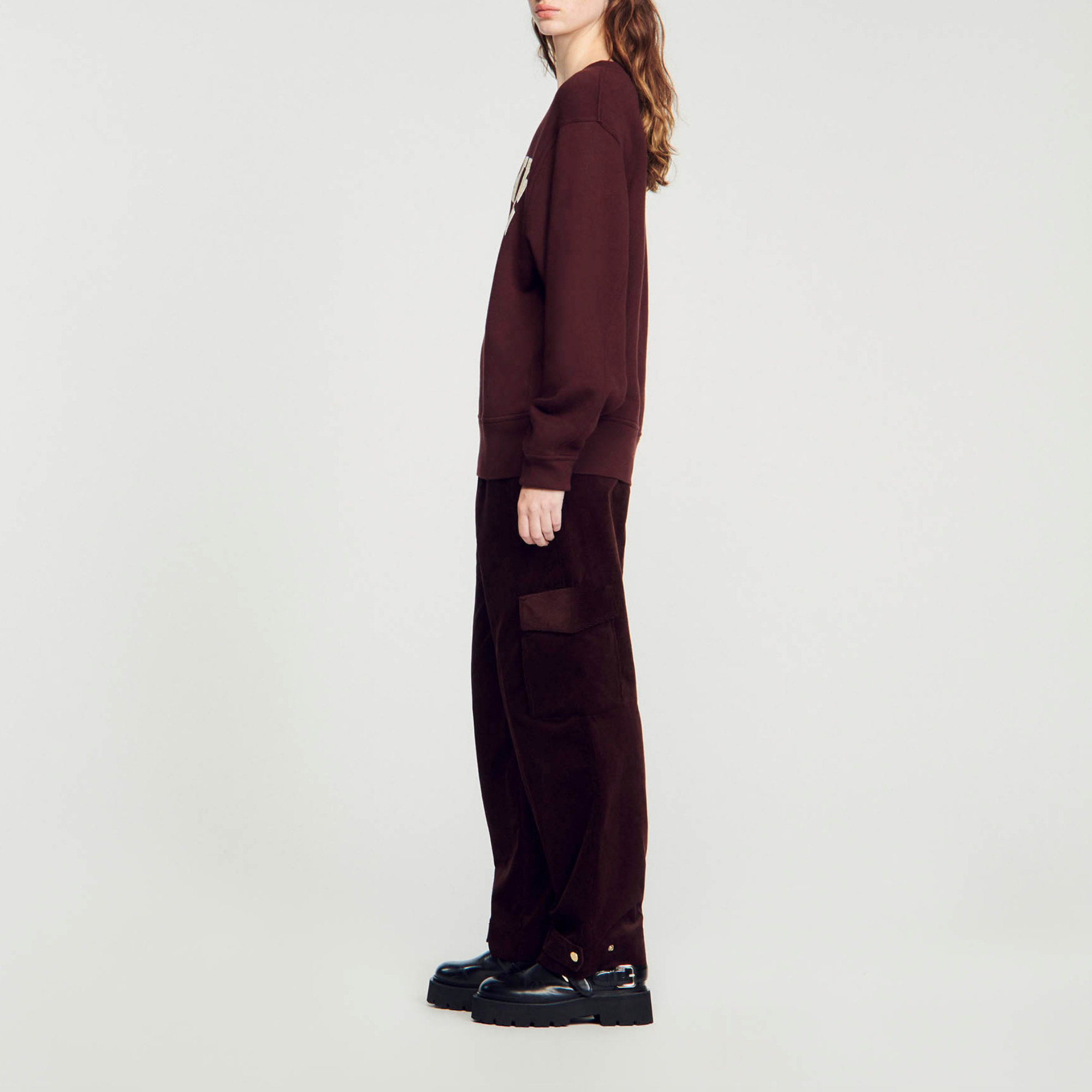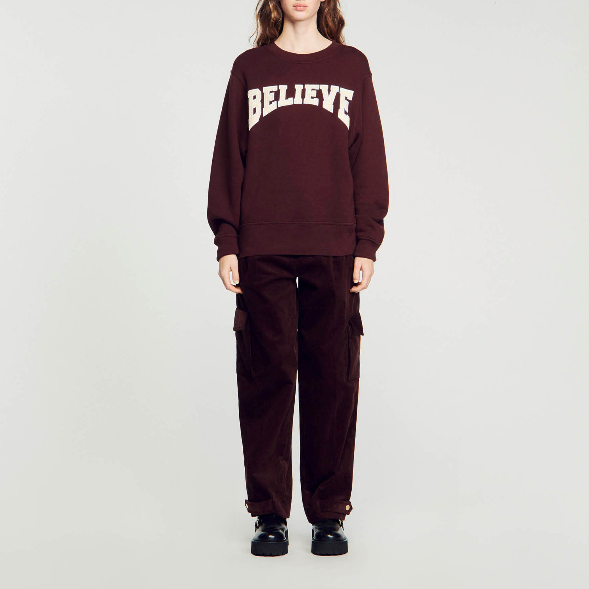 Sandro Women's fleece sweatshirt Round neck Long sleeves Believe patches The cotton in this item was produced organically via a cultivation method that preserves biodiversity and bans the use of pesticides and GMOs.