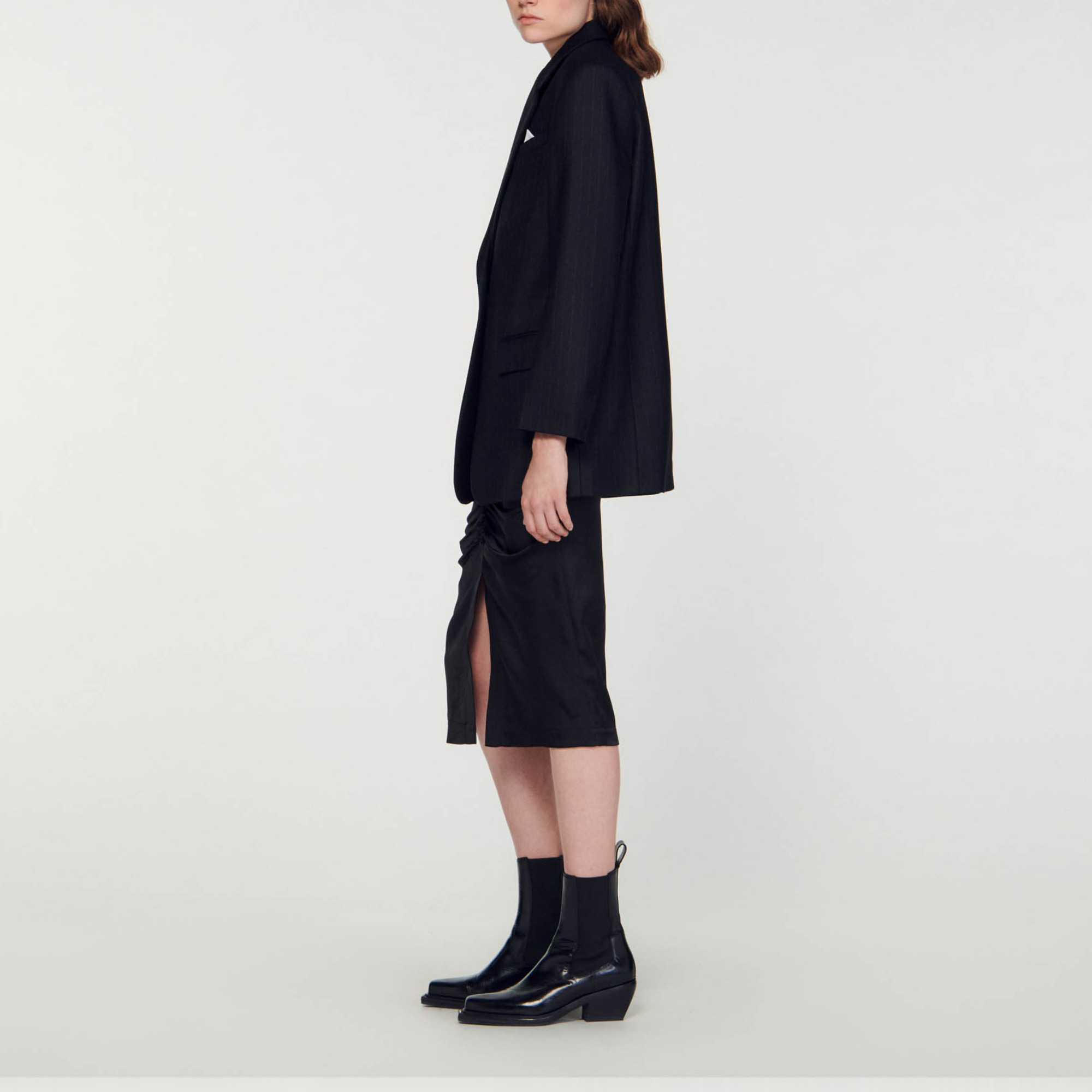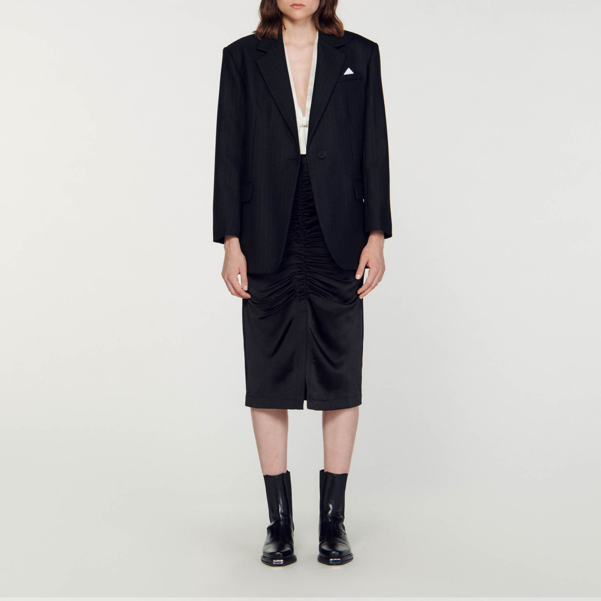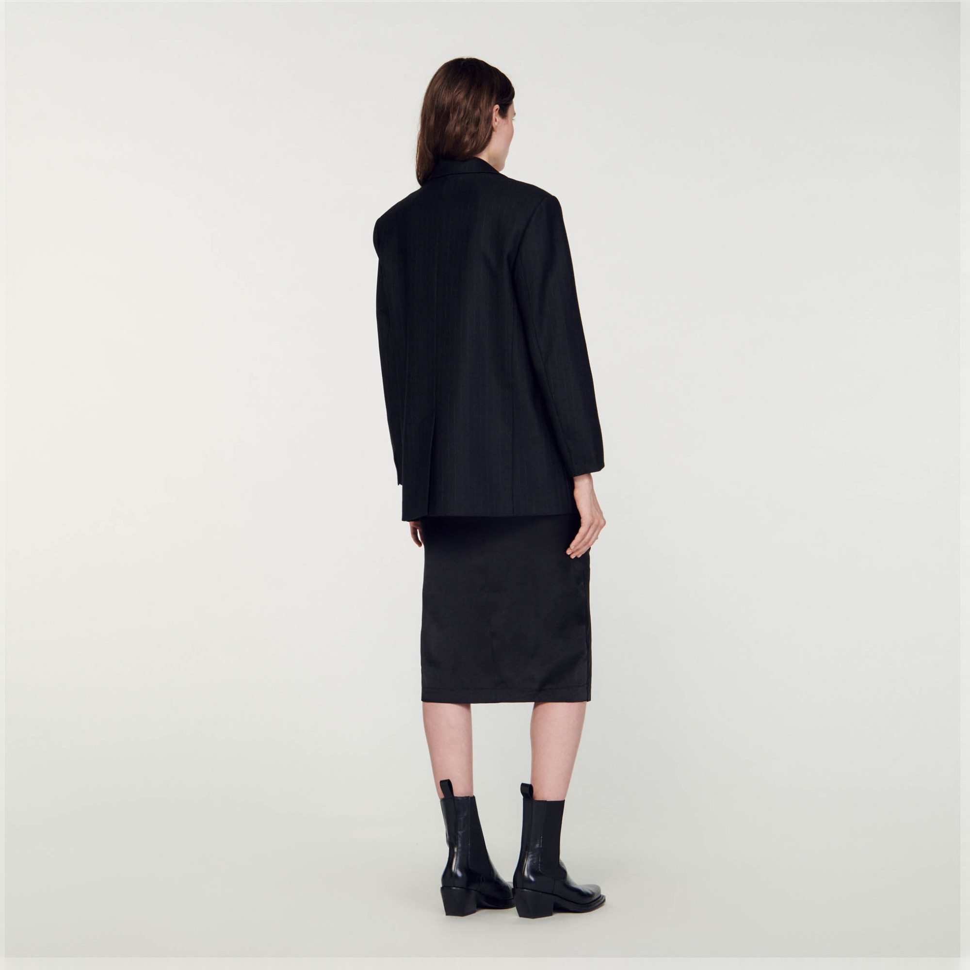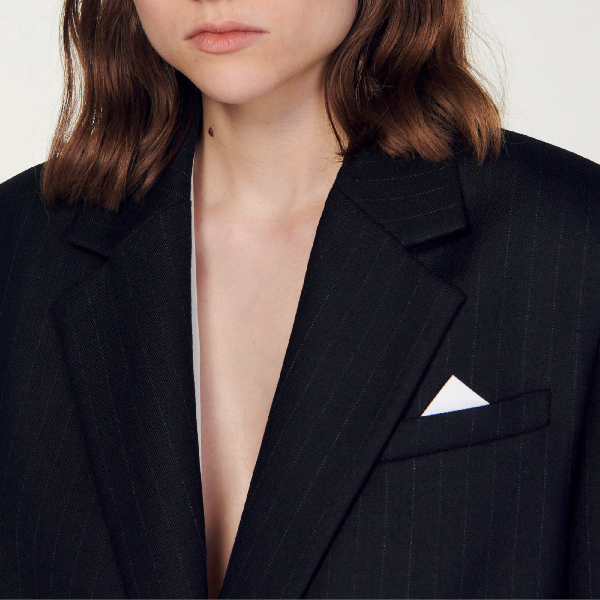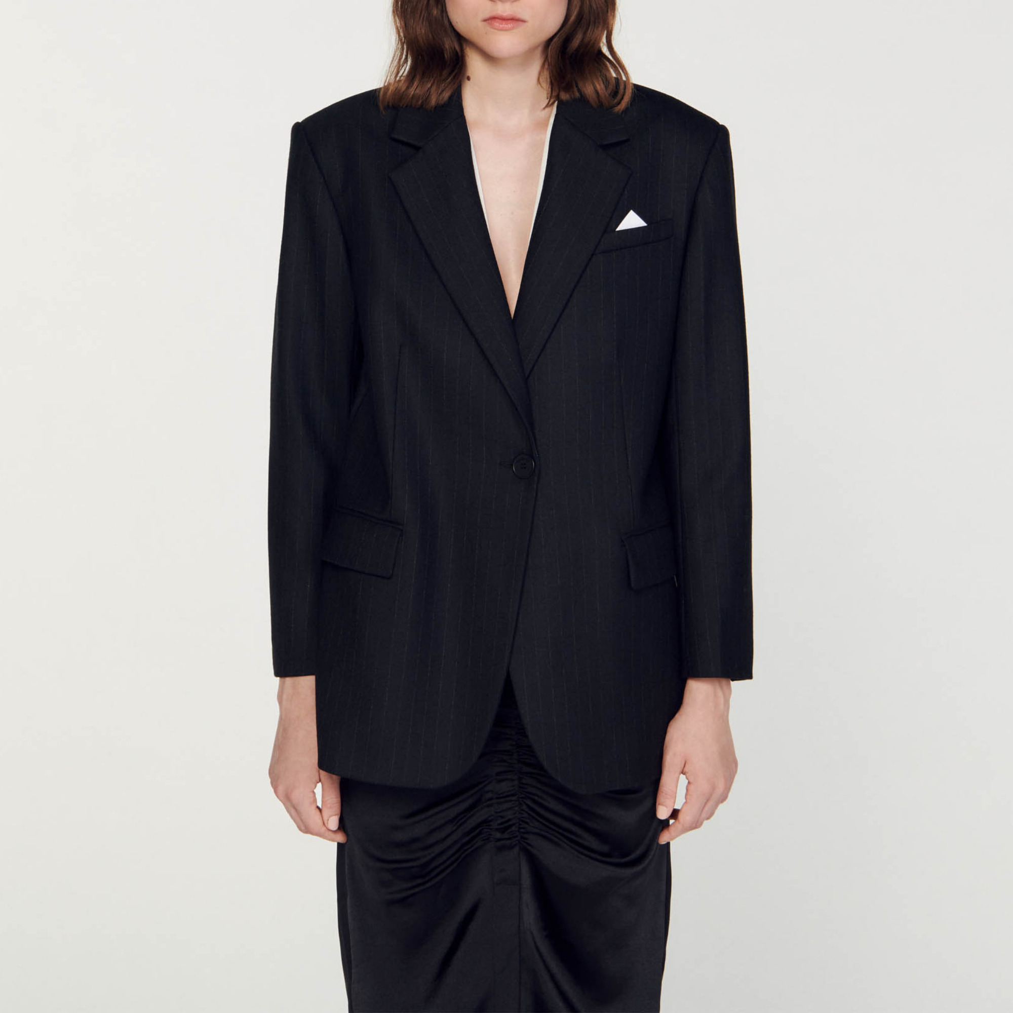 Sandro polyester Oversized blazer embellished with thin stripes, featuring long sleeves, a suit collar, flap pockets on the sides and a welt pocket on the chest.