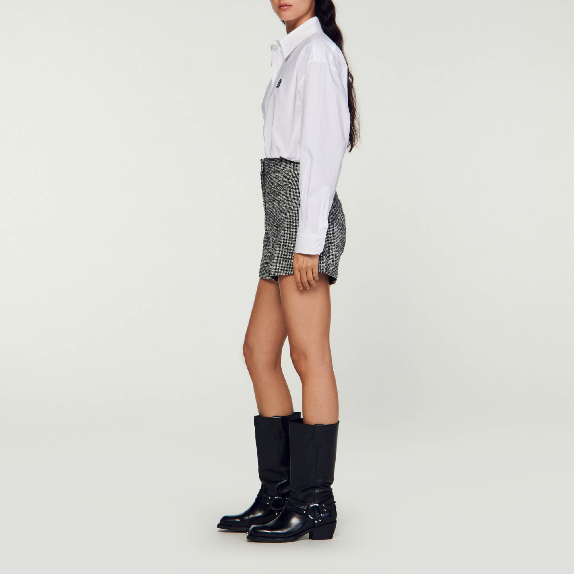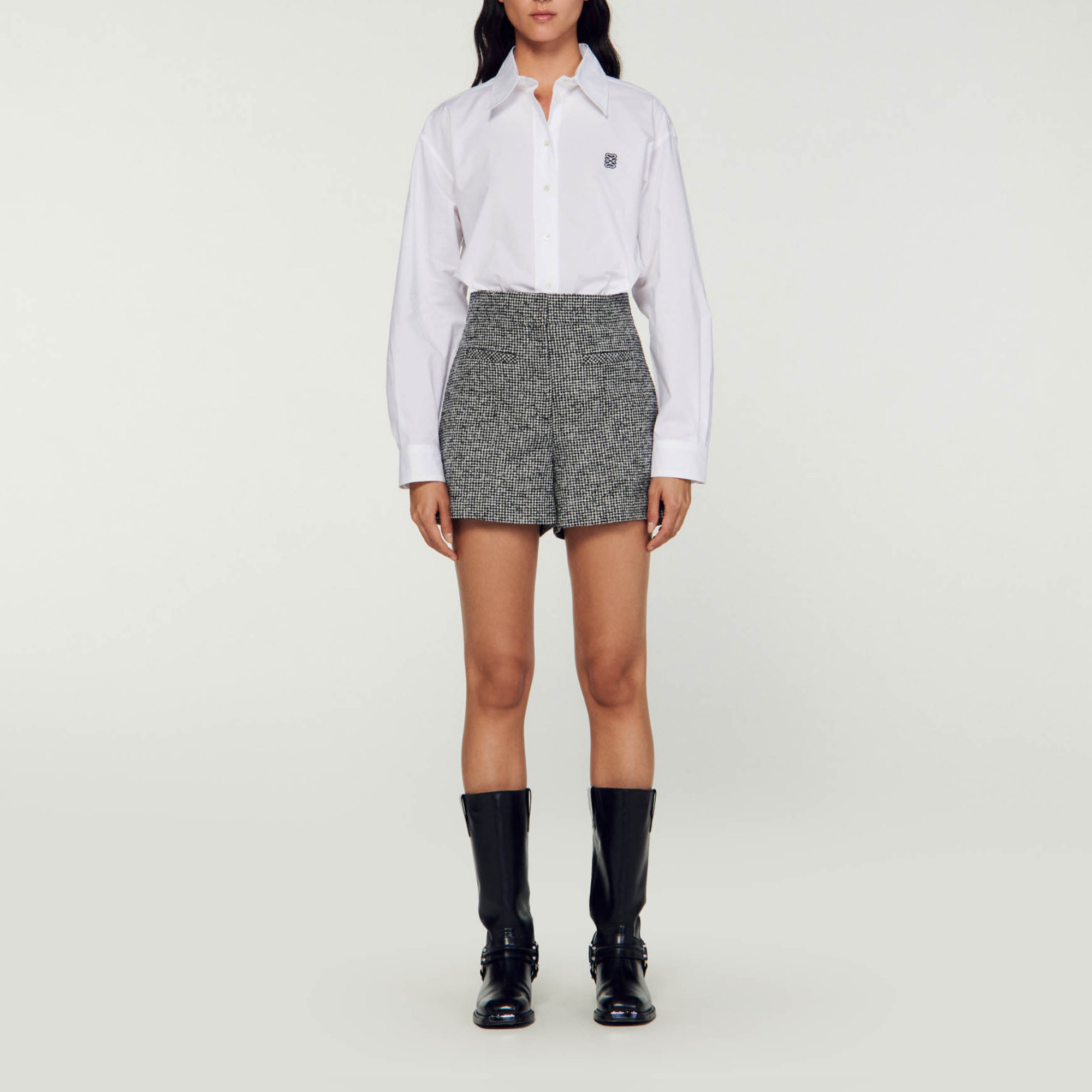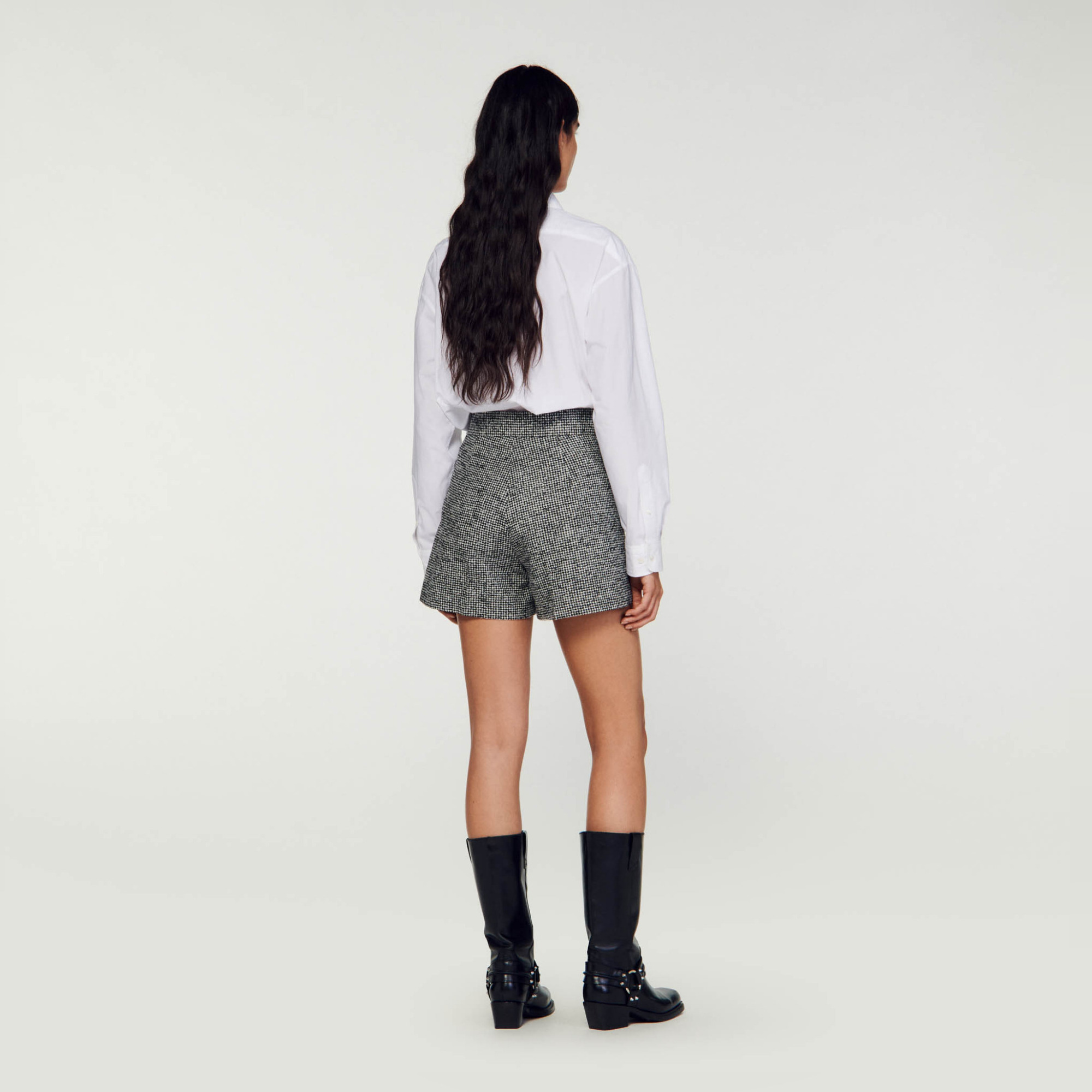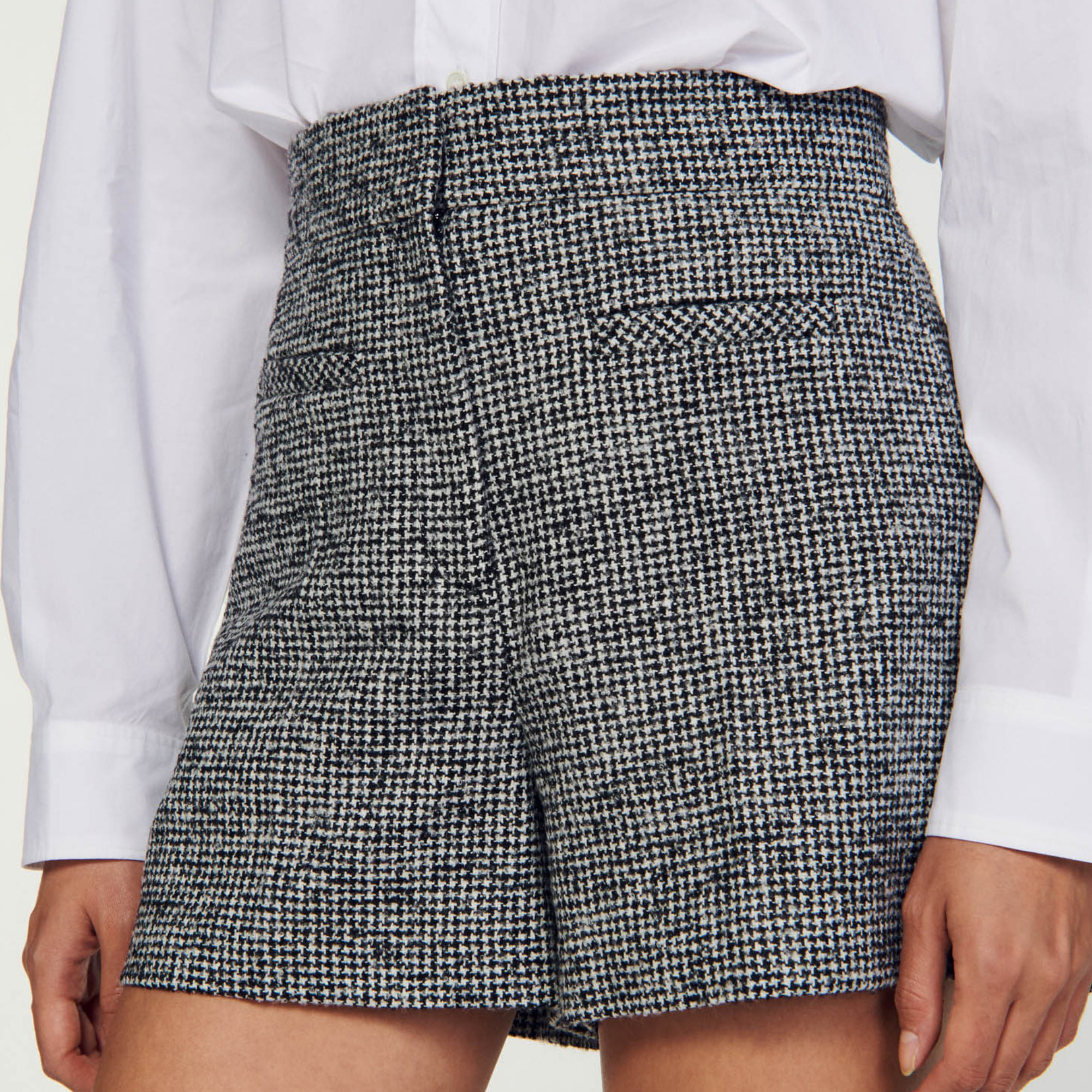 Sandro wool Wool blend shorts with houndstooth pattern, high waist and welt pockets.