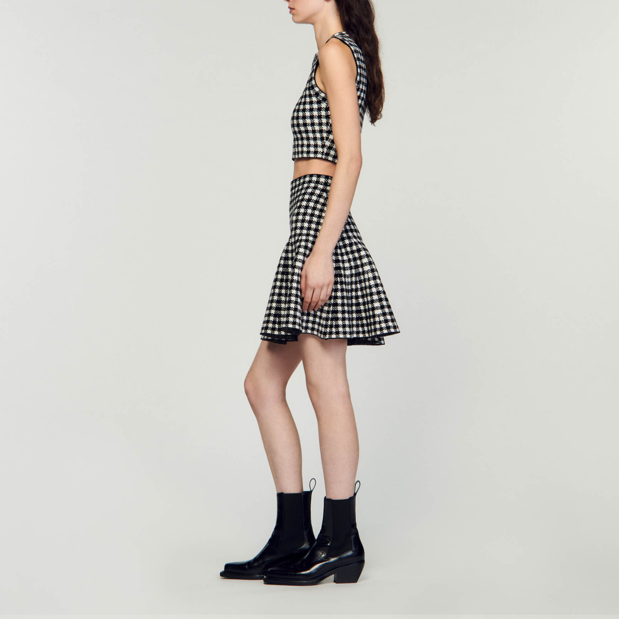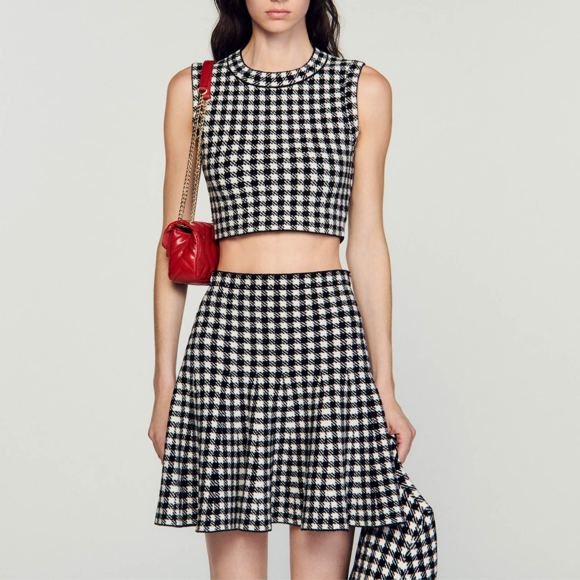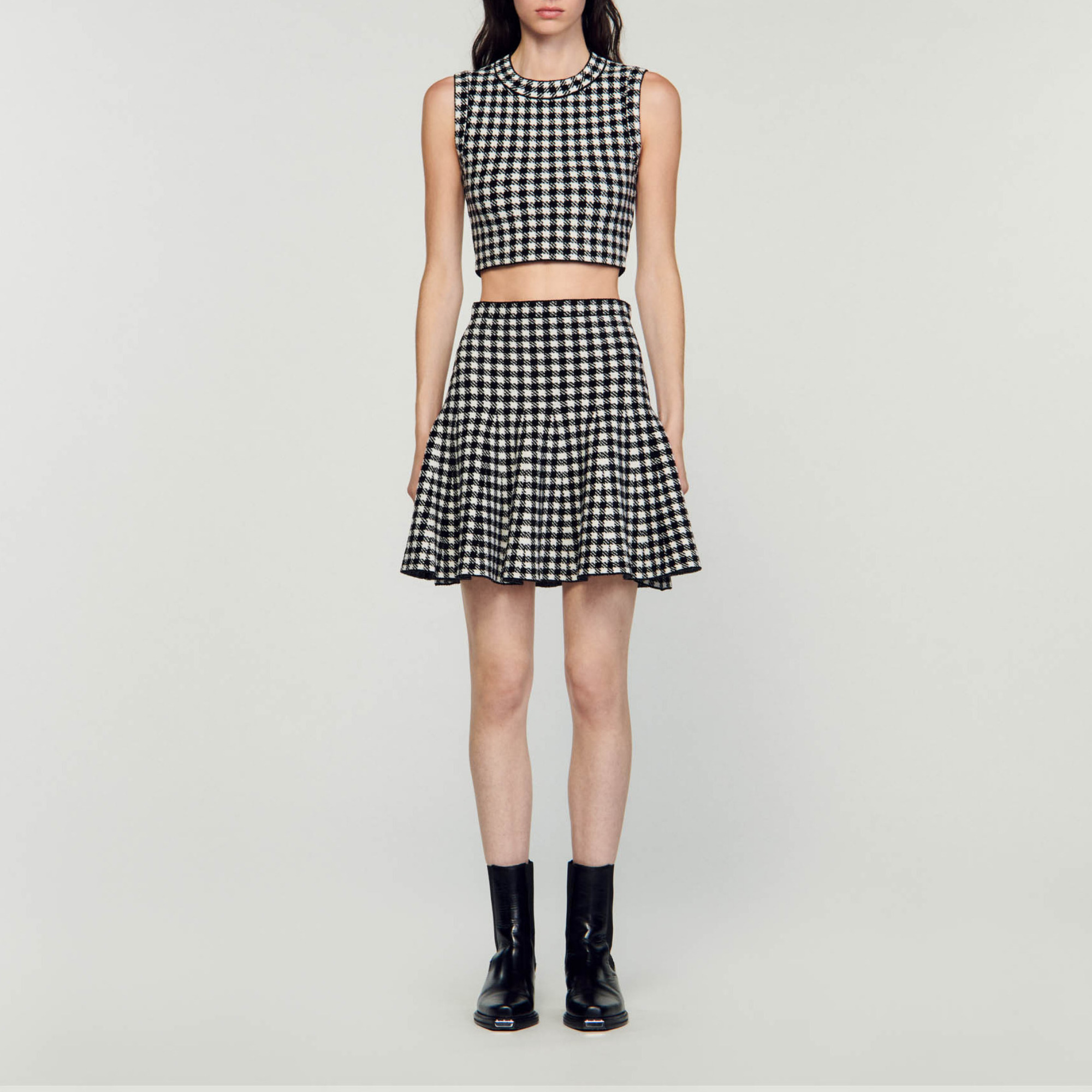 Sandro Women's sweater Round neck Sleeveless Gingham knit Short, straight fit This sweater matches the skirt and the cardigan.