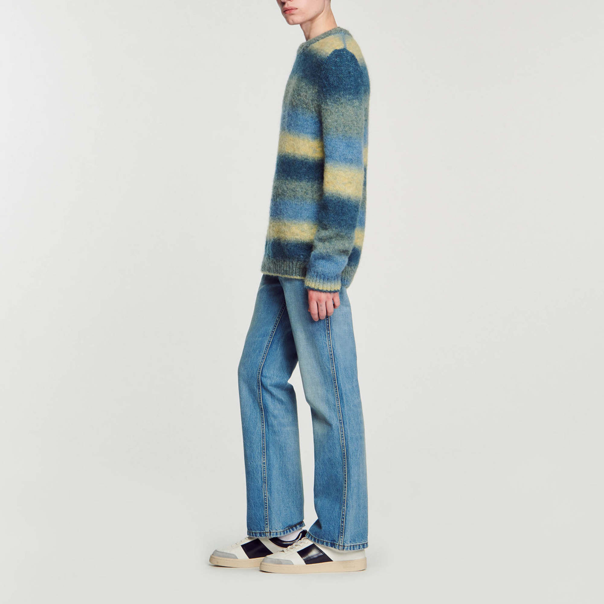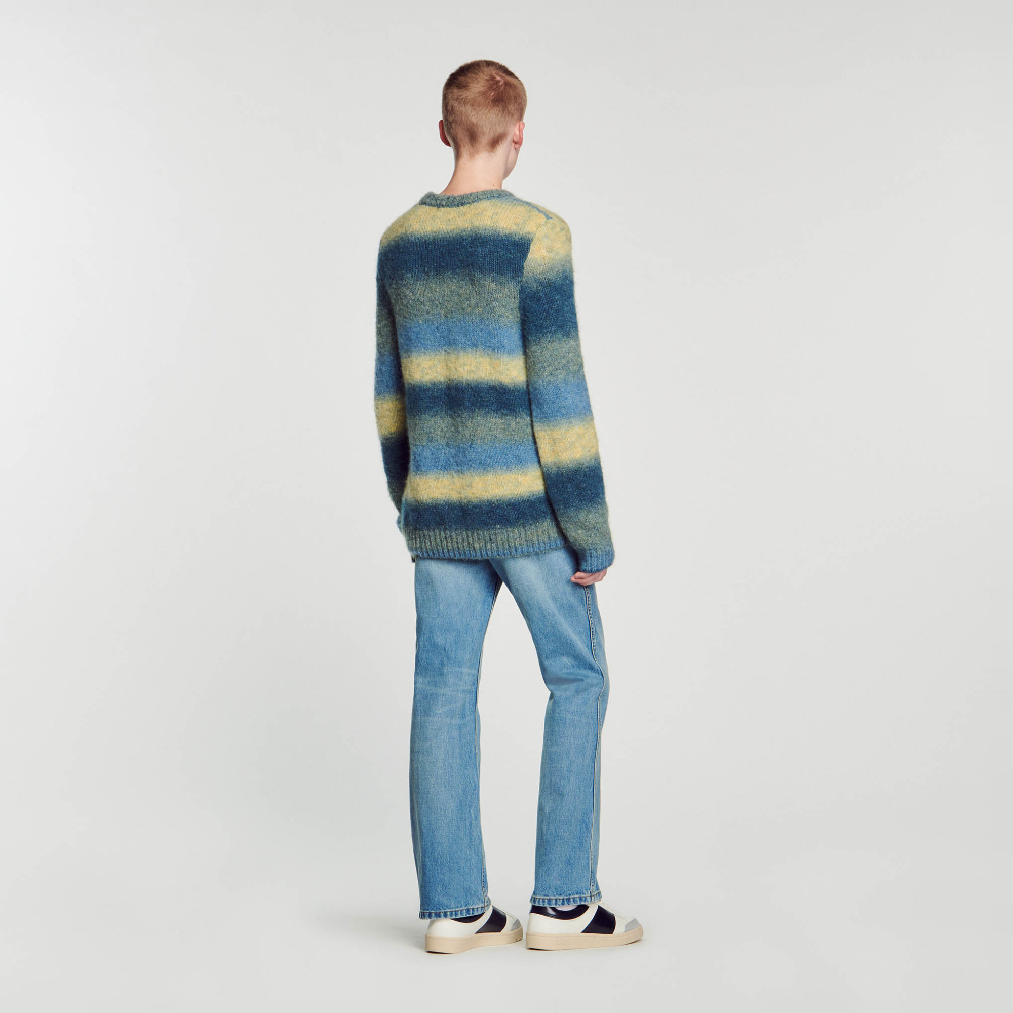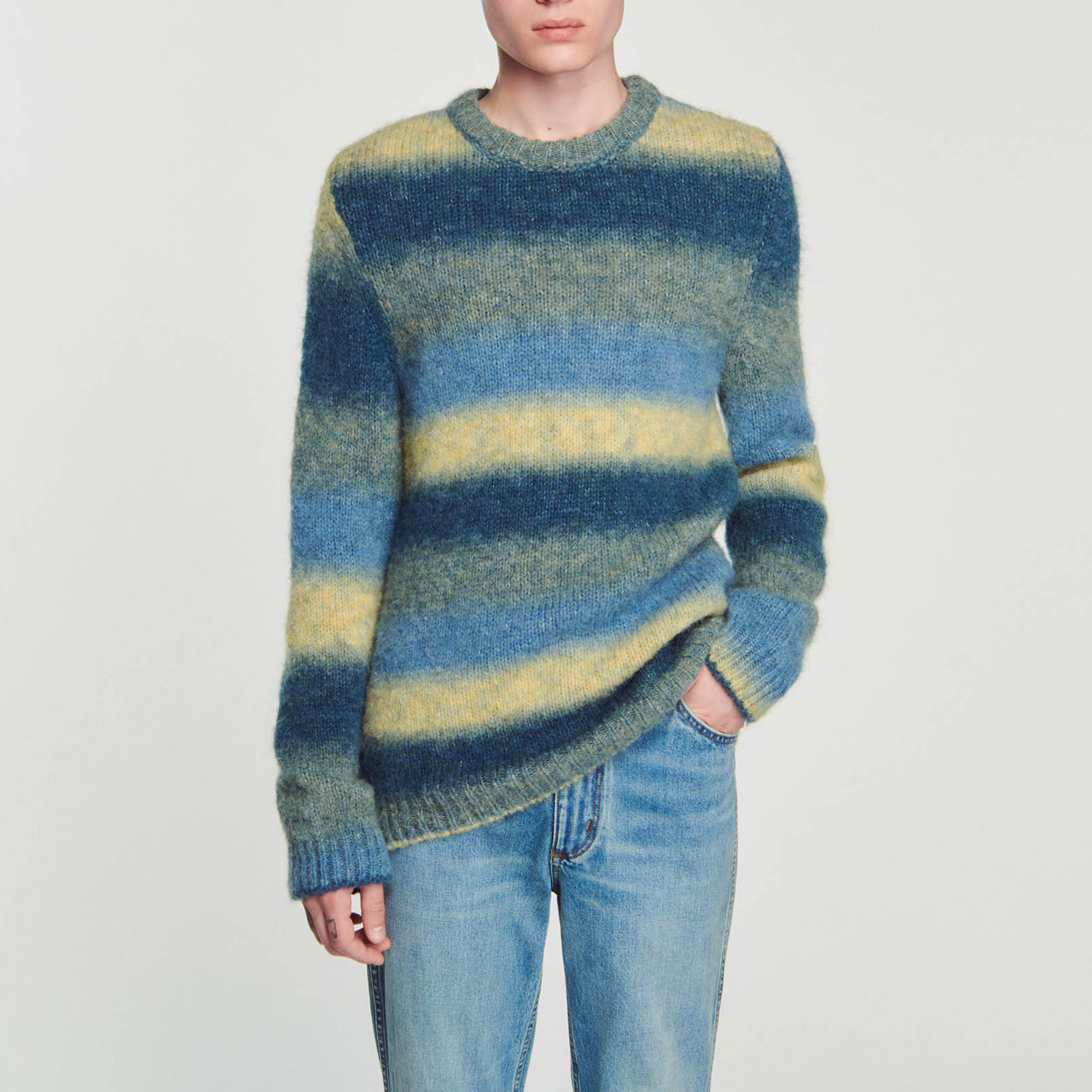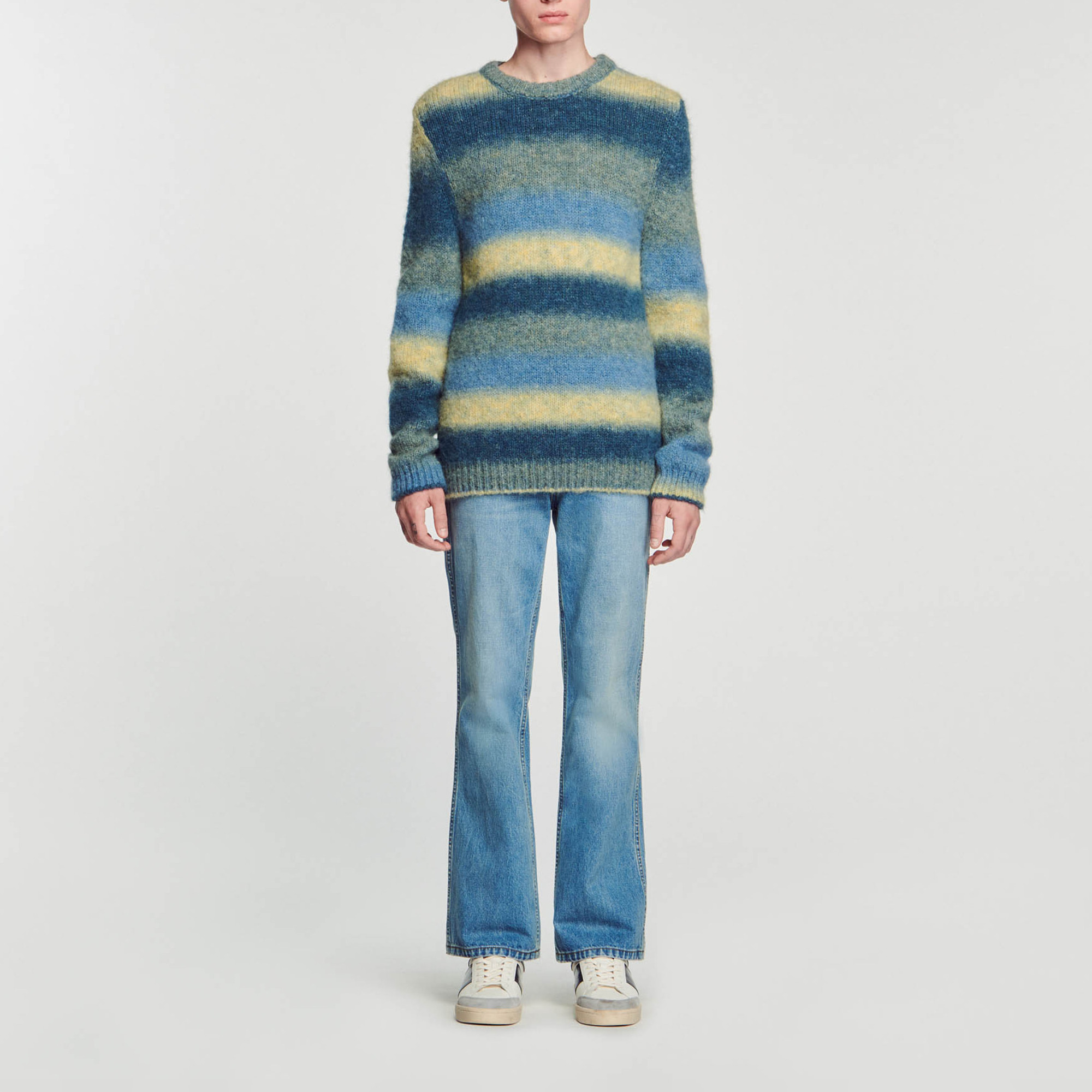 Sandro wool Wool and alpaca blend sweater with round neck, long sleeves and embellished with a stripy pattern.