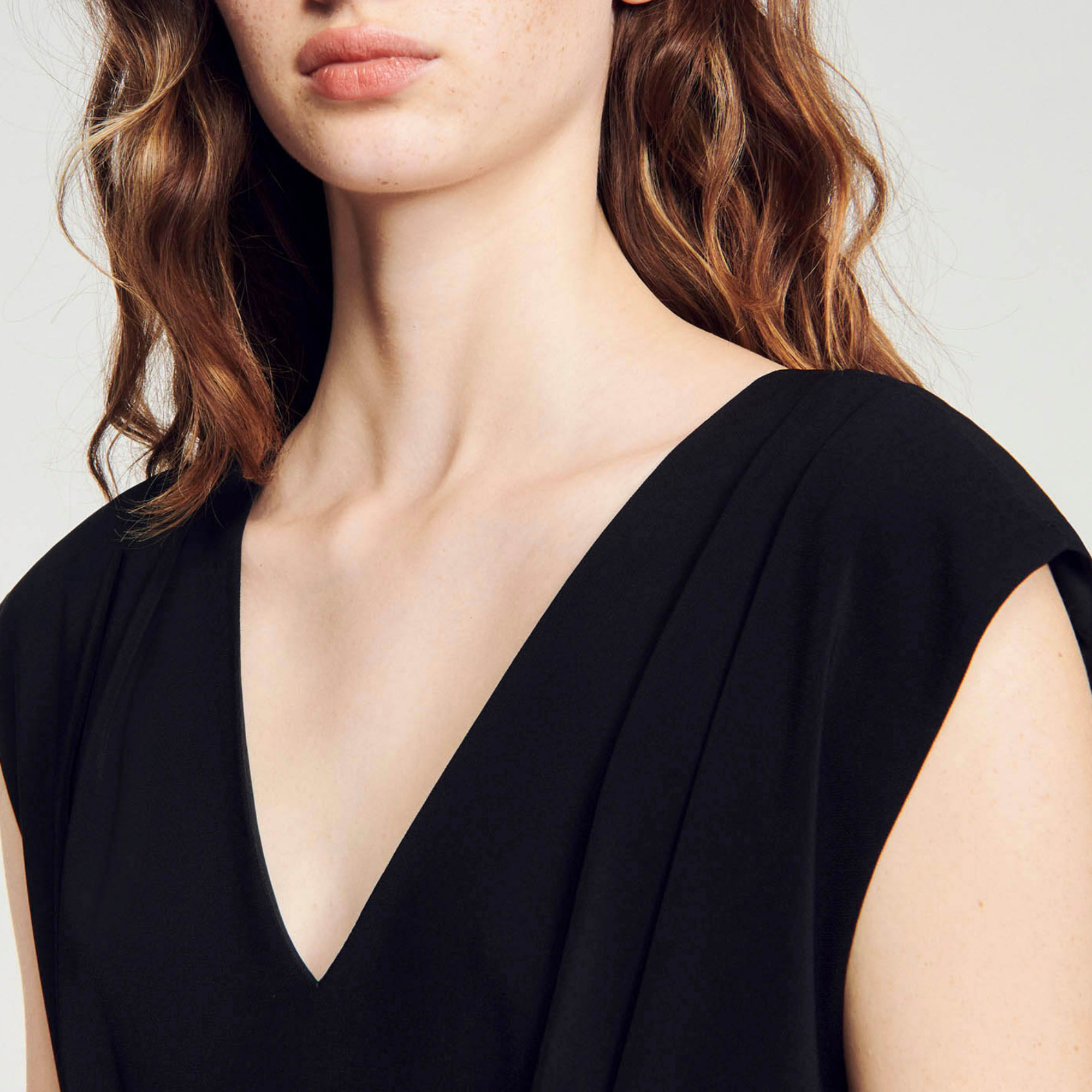 Sandro Women's romper V-neck front and back Sleeveless Pleated flared shorts Fitted waist This item's main material is at least 50% recycled.