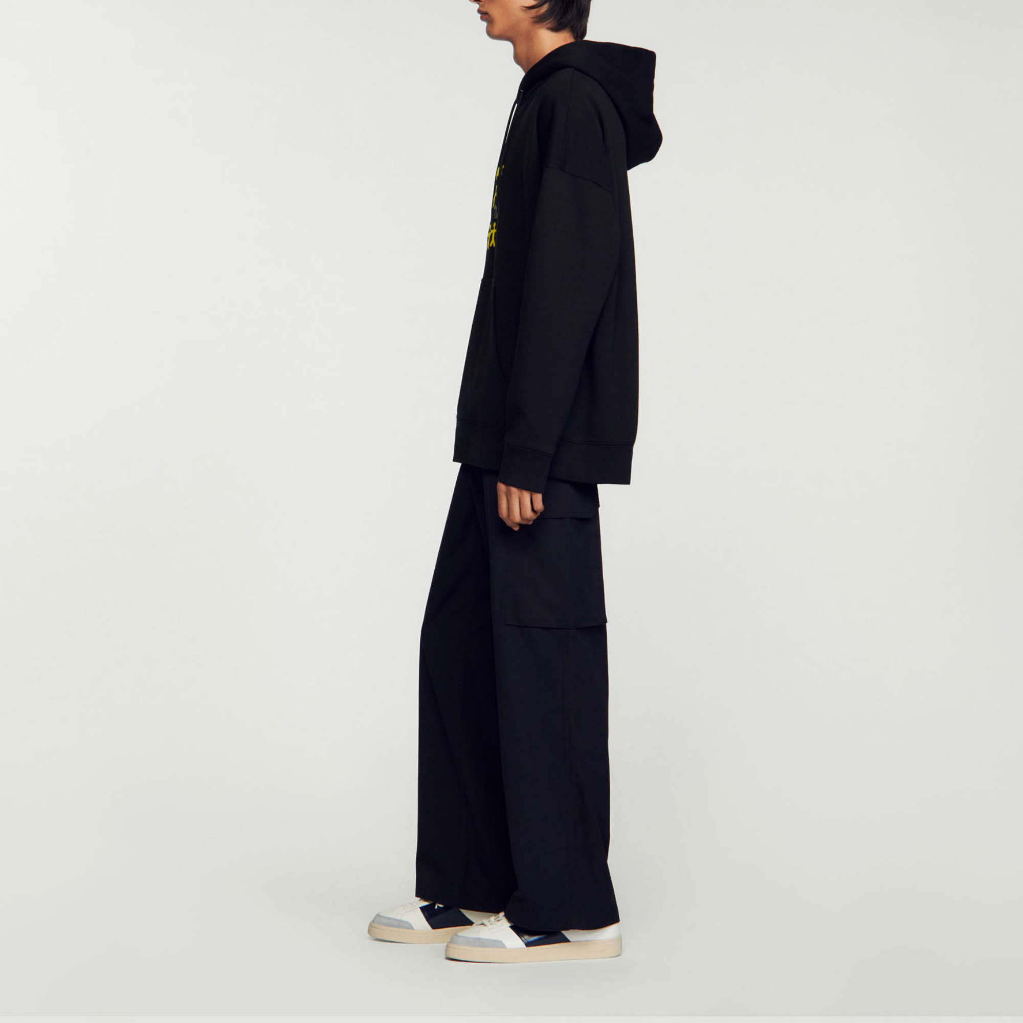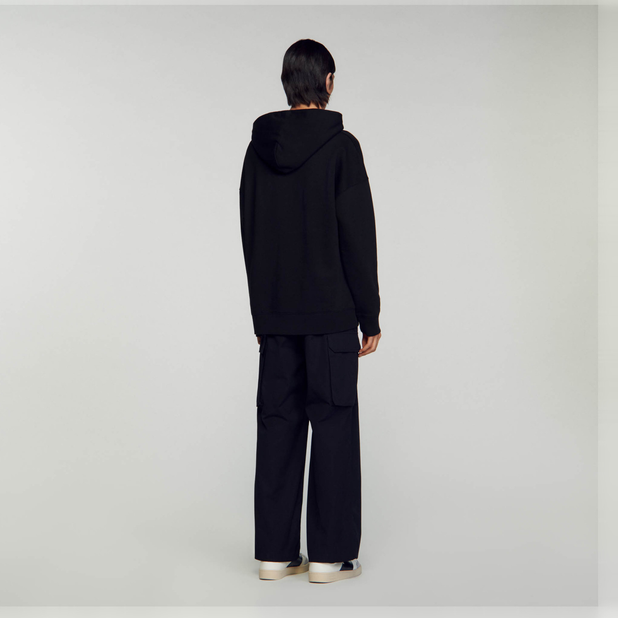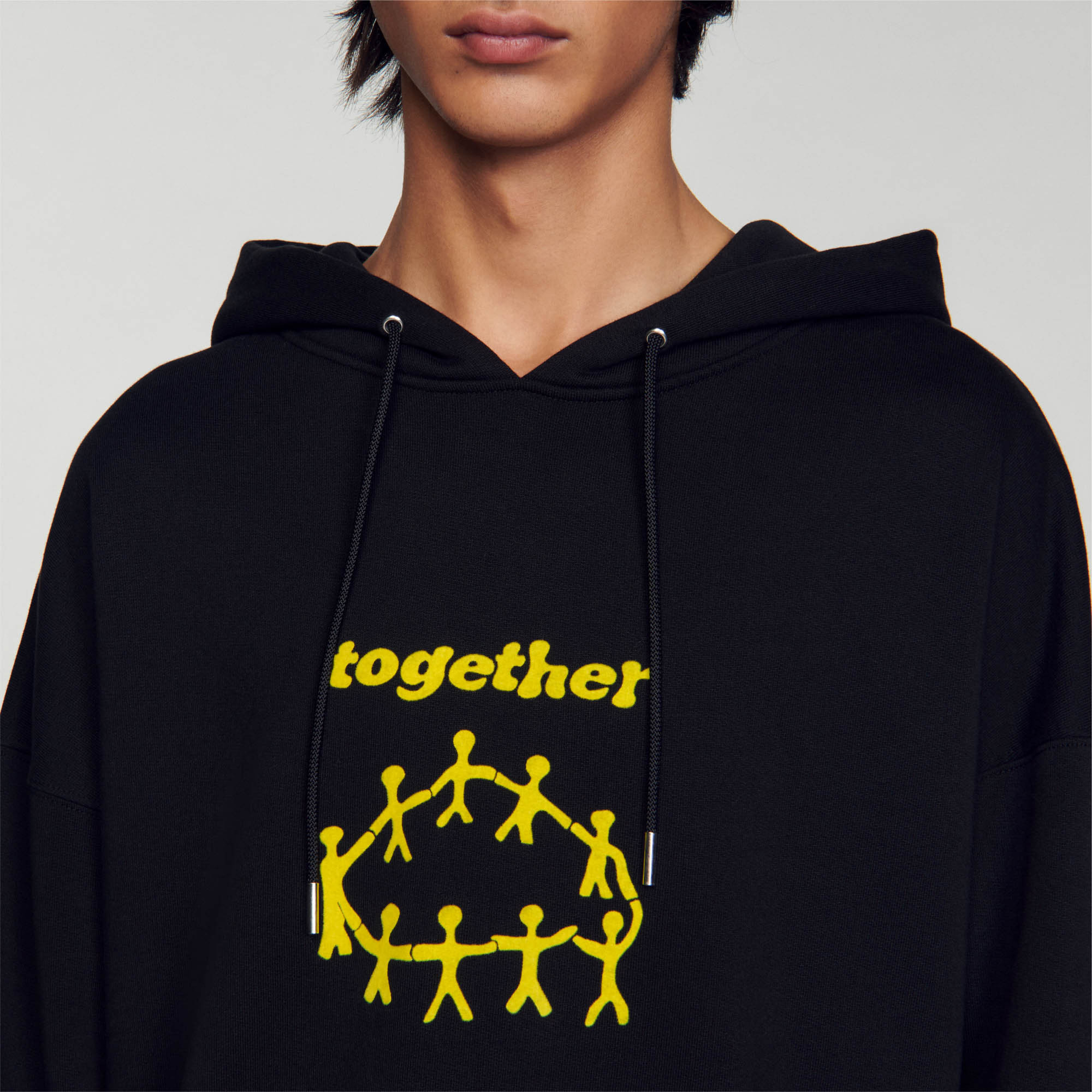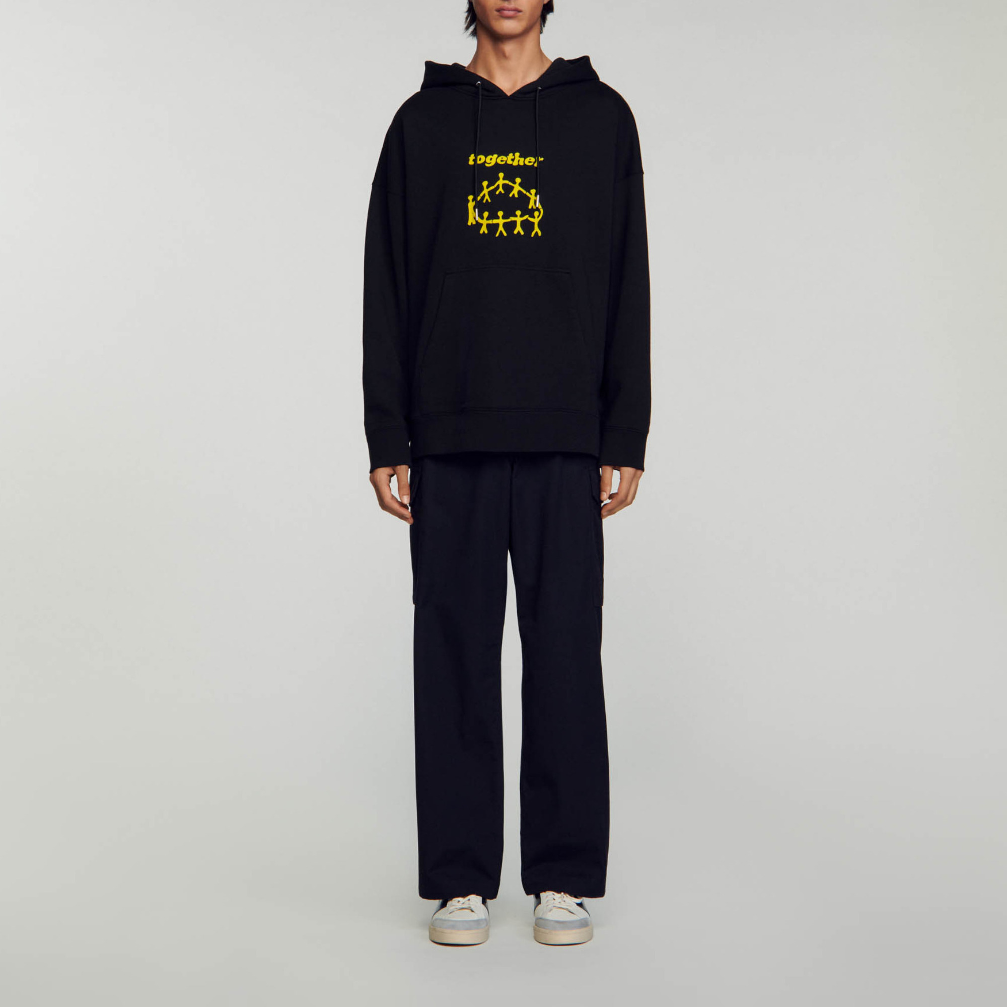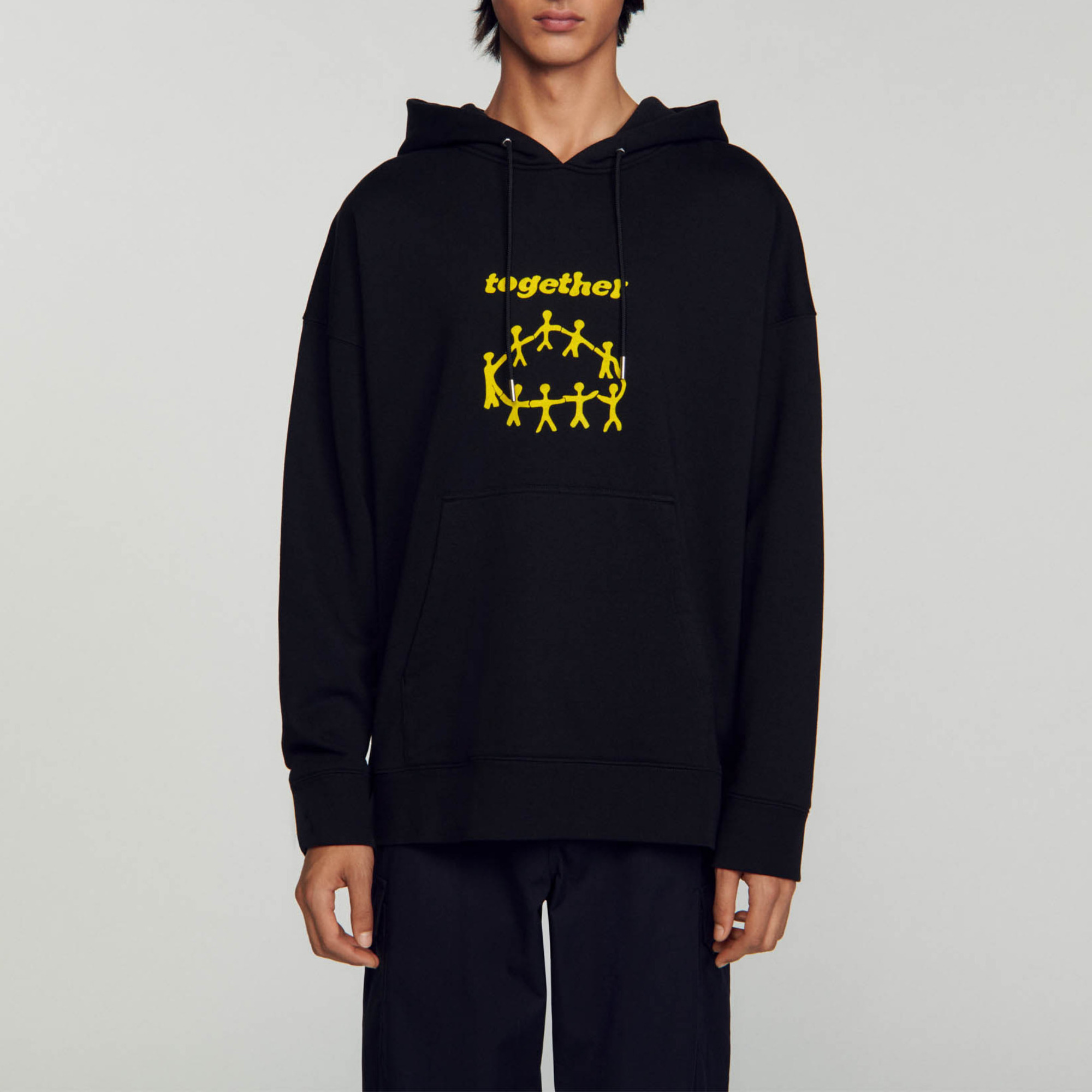 Sandro cotton Oversized hoodie in brushed cotton fleece with drawstring hood, long sleeves and kangaroo pouch pocket, embellished with front Together flocking and contrasting Sandro embroidery.