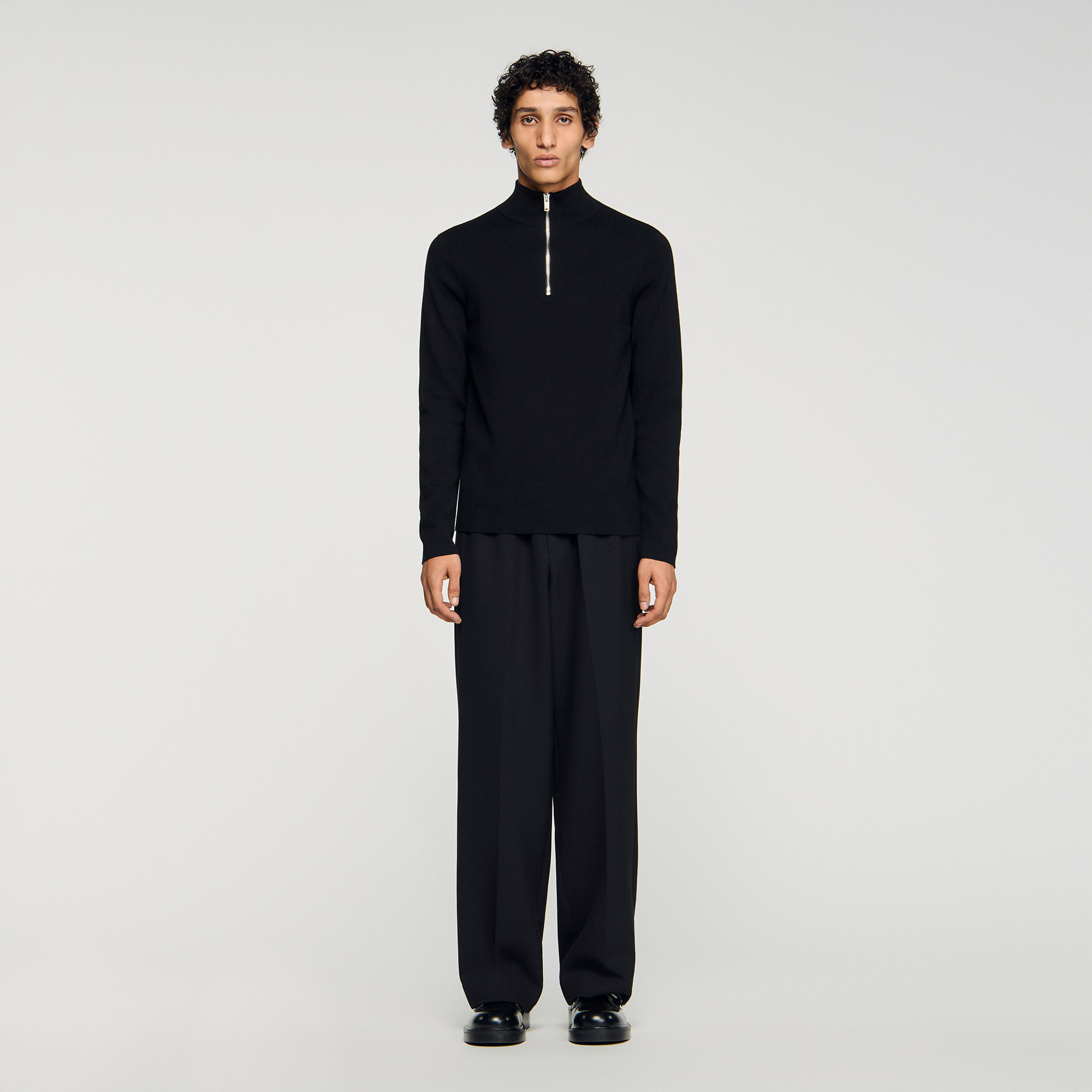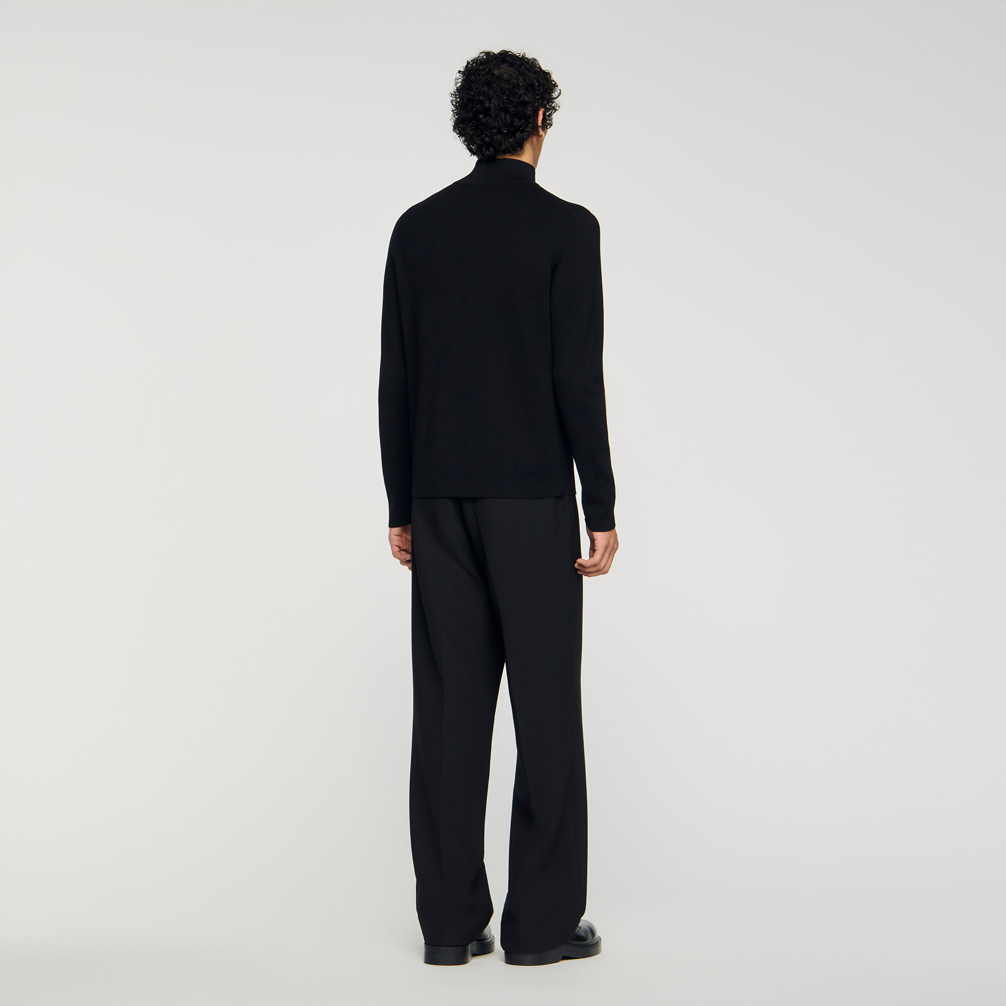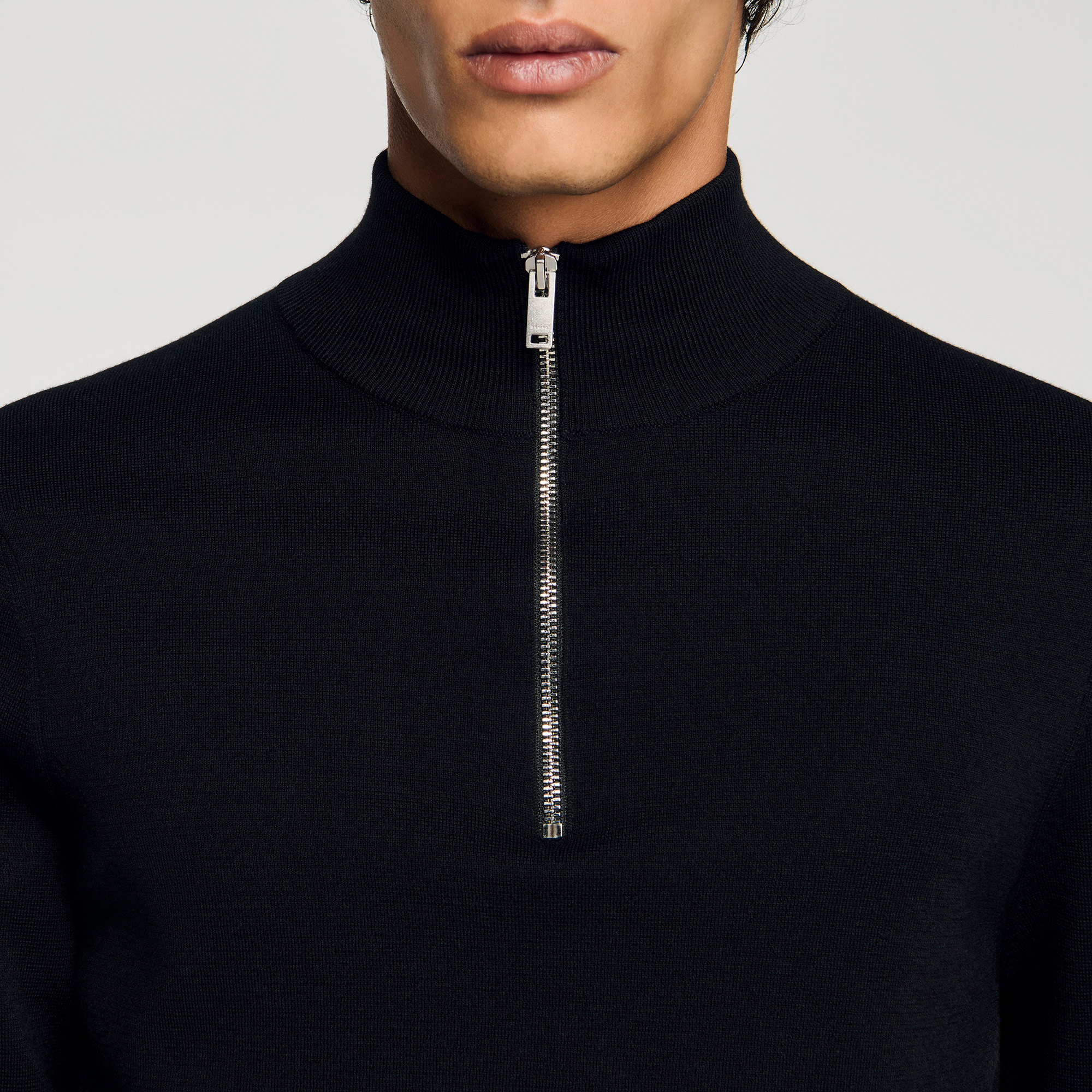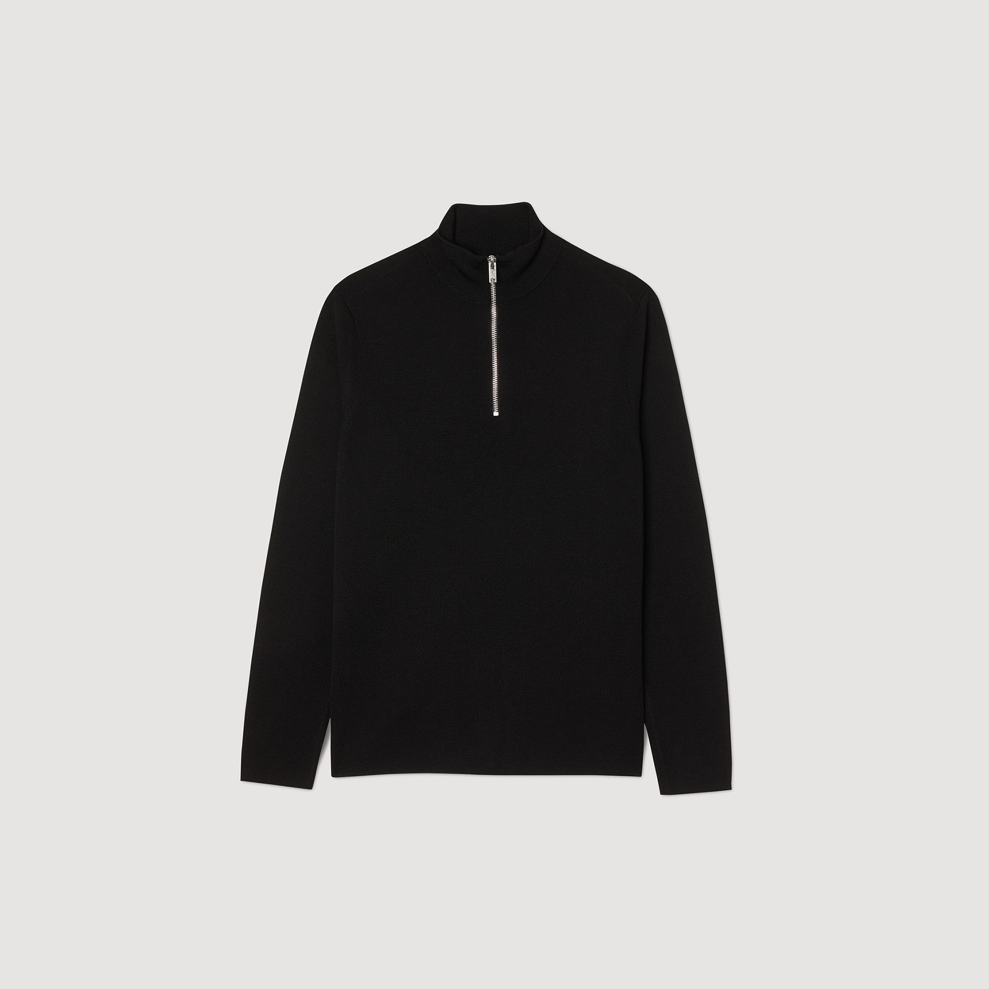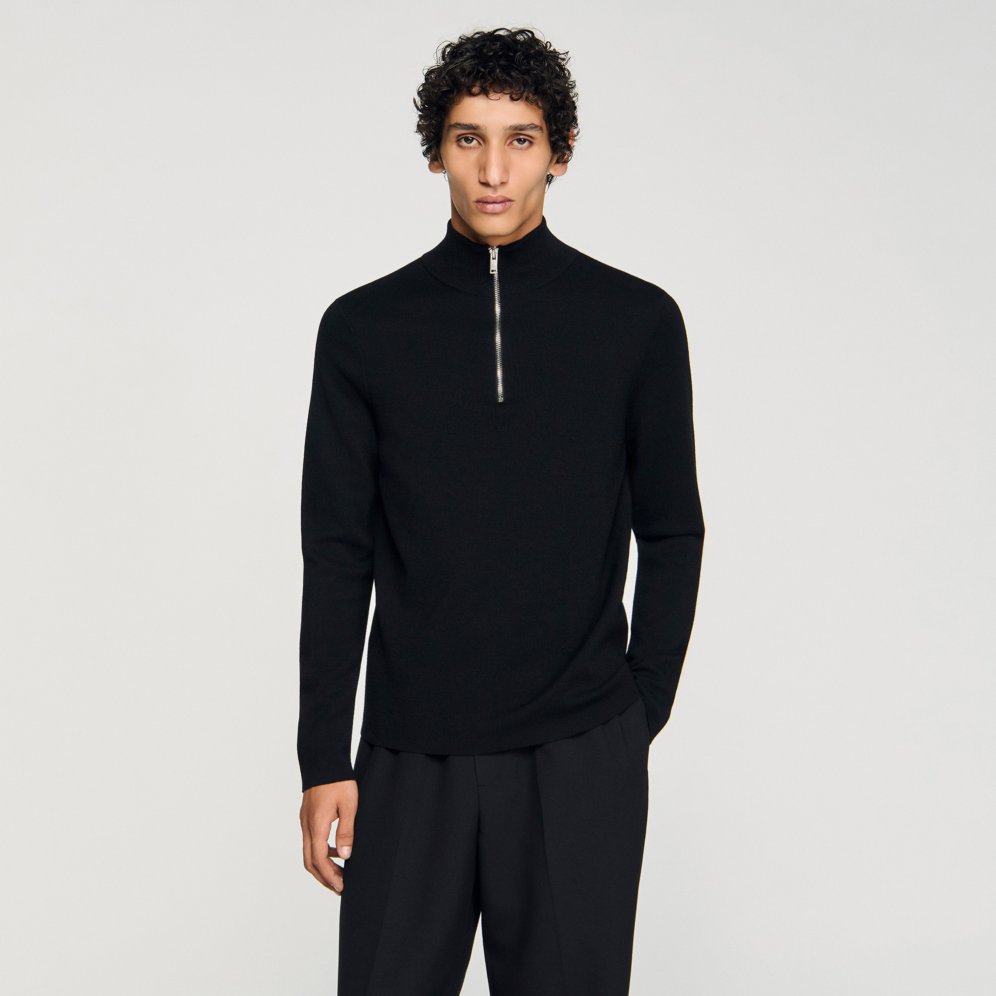 Sandro wool Sandro men's sweater Knitted sweater with high neck 100% wool Zip at the collar Ribbed trim finish True to size The wool in this item comes from extensive farming, which respects animal welfare and contributes to the preservation of local biodiversity..