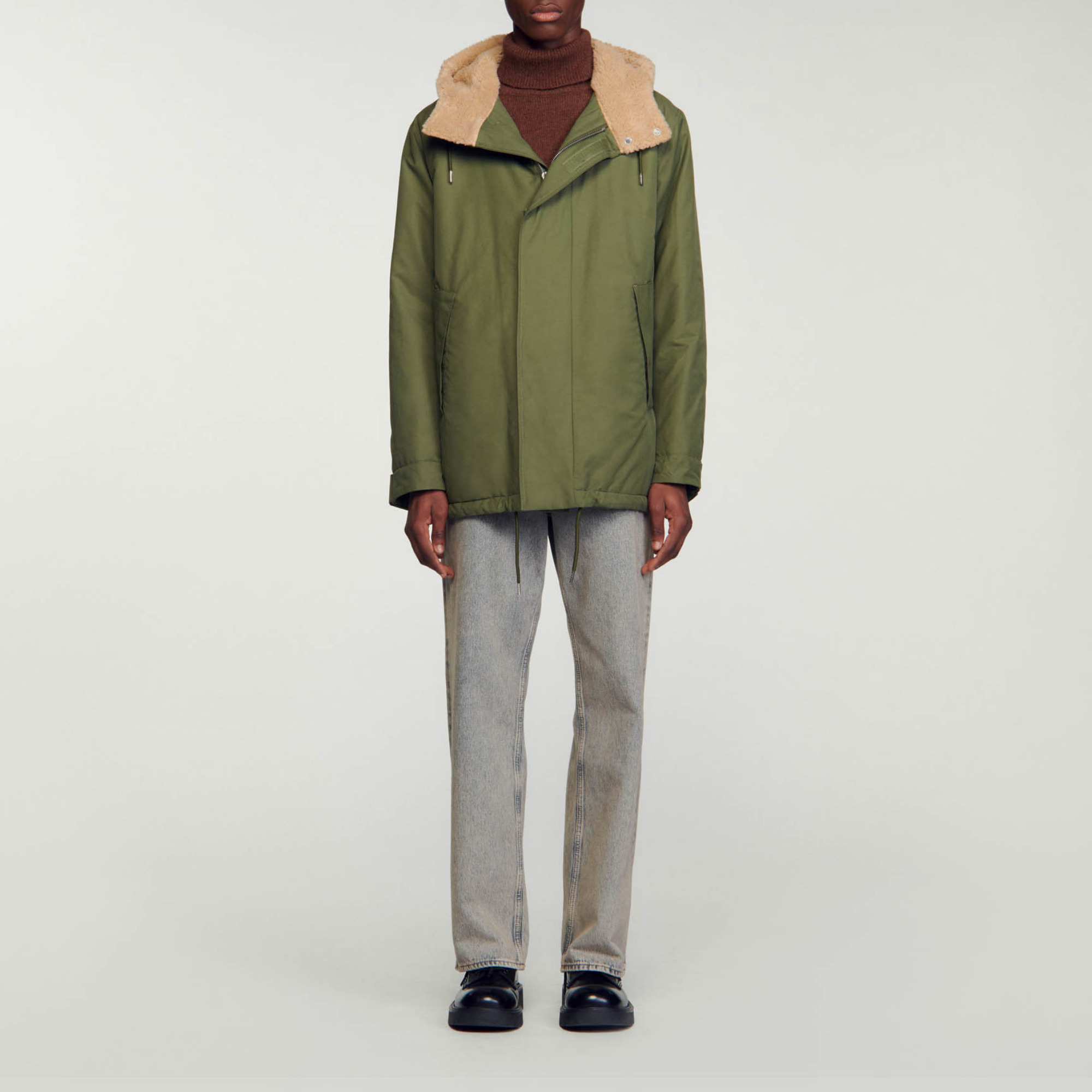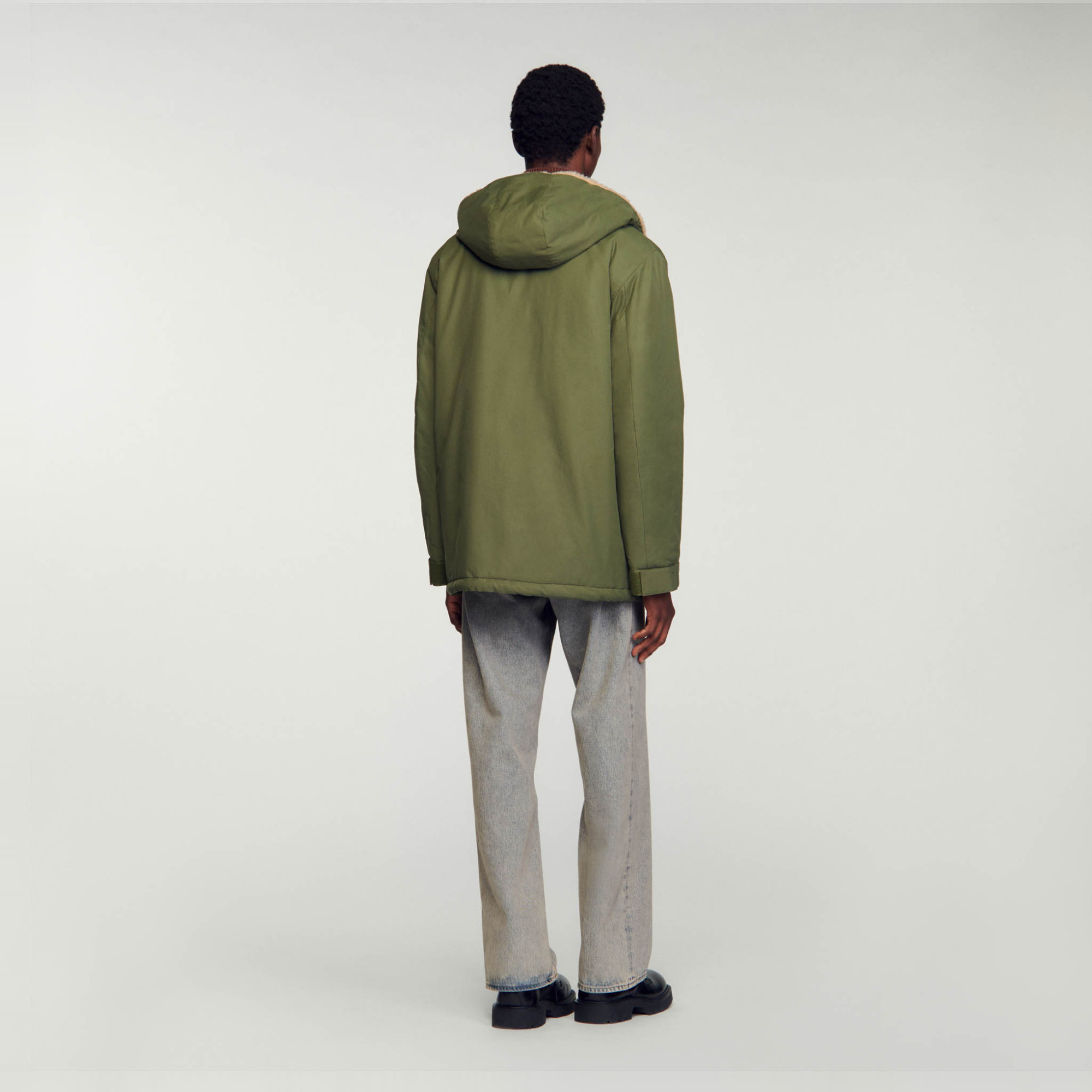 Sandro Men's cotton parka Zip fastening Hood Front pockets with oversize welt Drawstring on hem Quilted, lined interior Large oversized inside patch pocket The model is 189 cm / 6'2 tall and wears a size S.