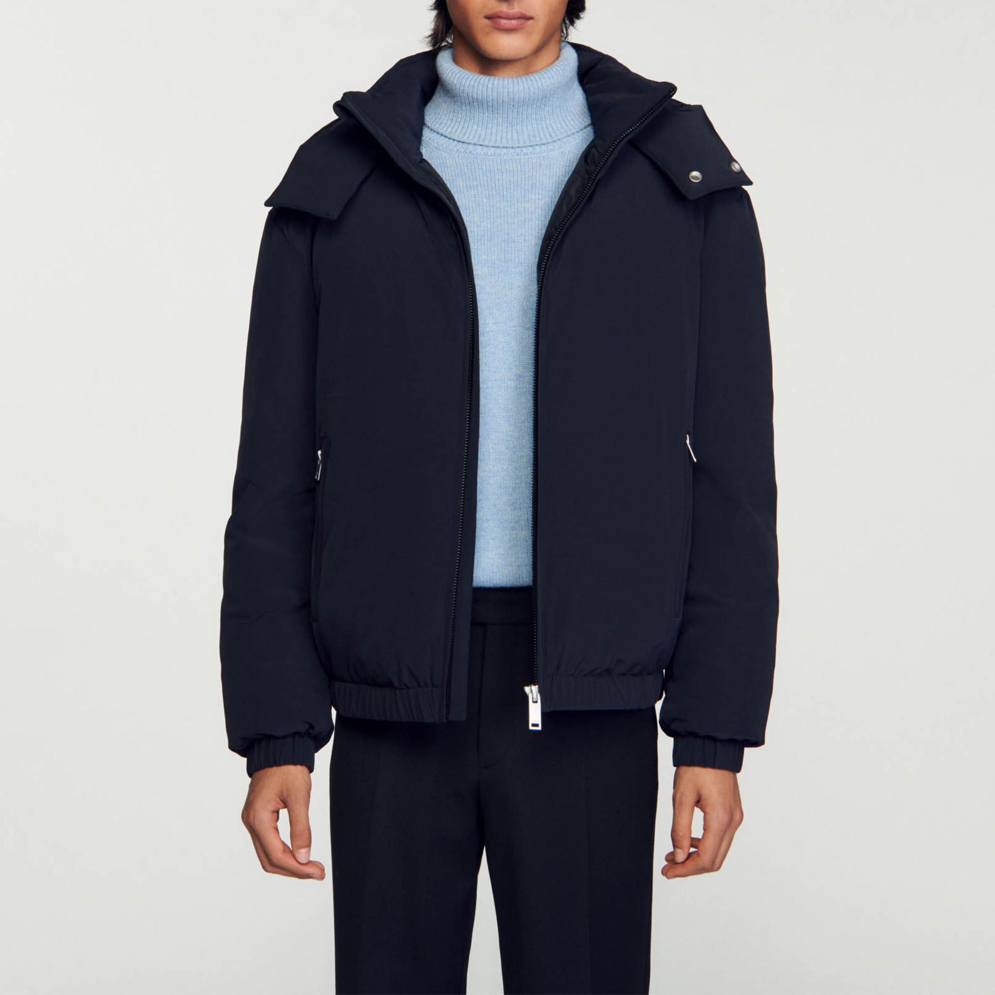 Men's Sandro padded down jacket Hood Zip fastening Long sleeves Zipped pockets Elastic edging The model is 186 cm / 6'