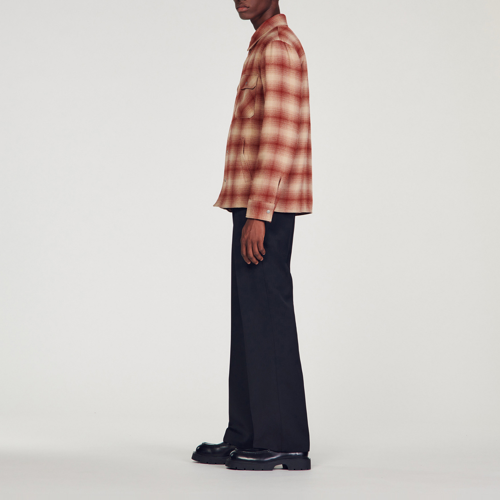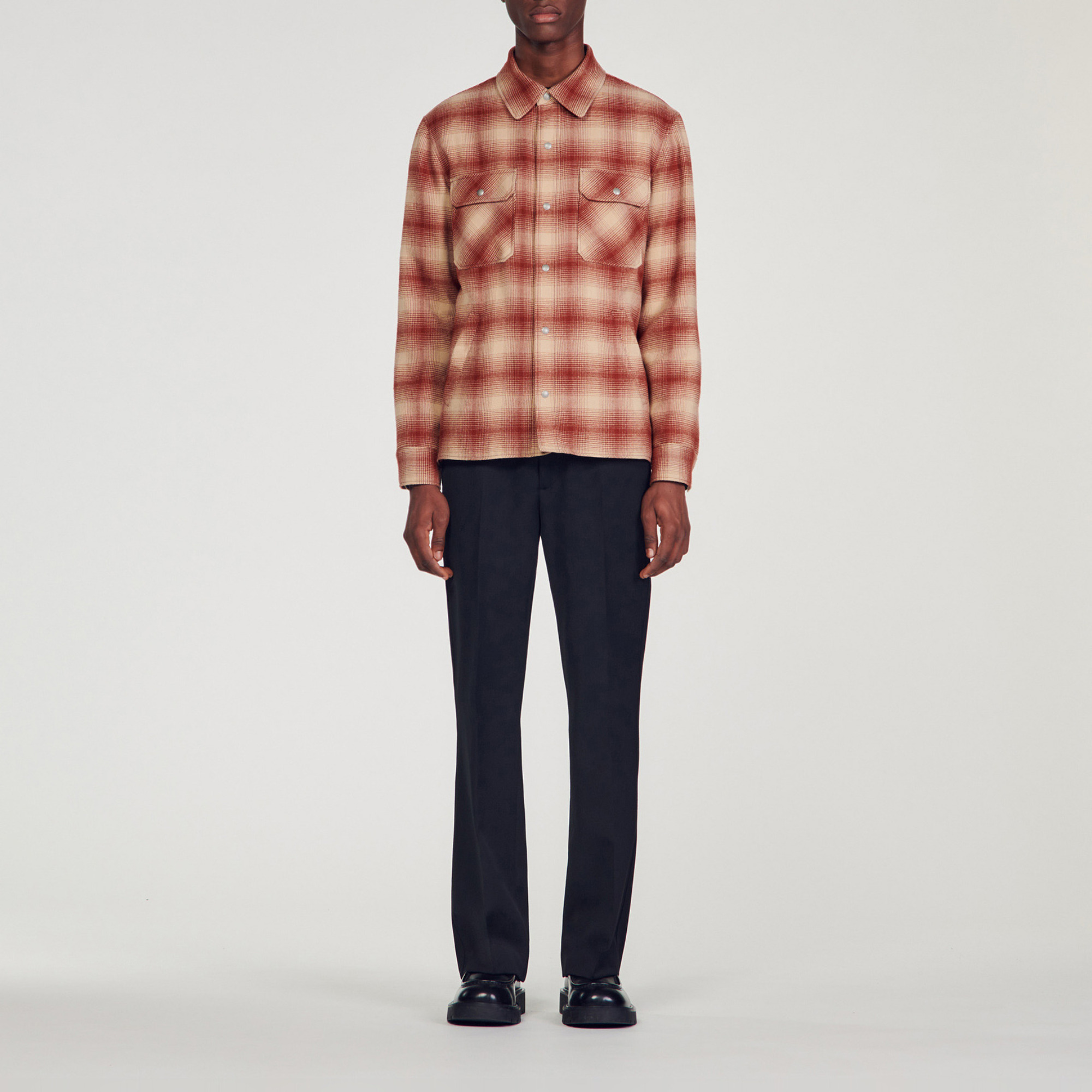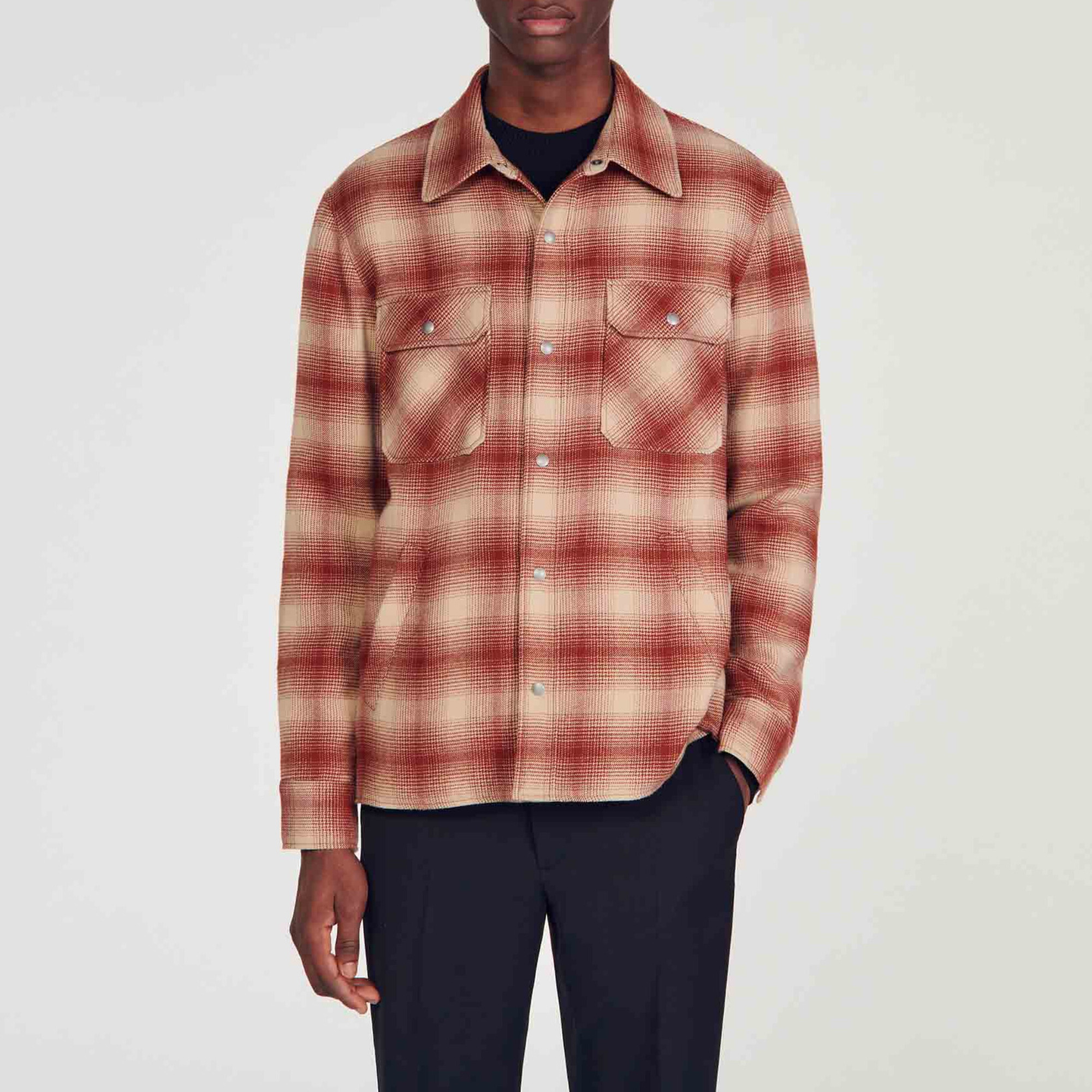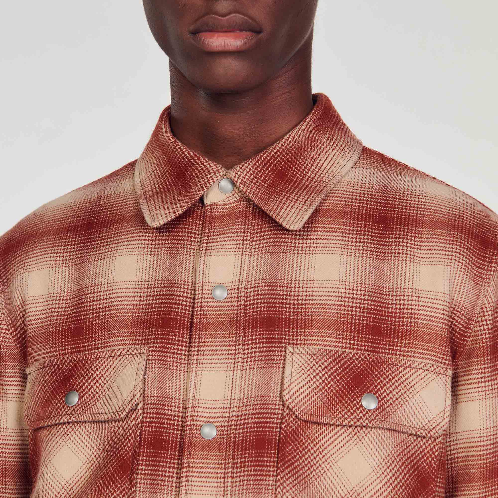 Sandro Men's checked jacket Quilted, lined interior Long sleeves Press-stud fastening Press studs on cuffs Side vents Patch chest pockets with flap and press studs Front welt pockets..