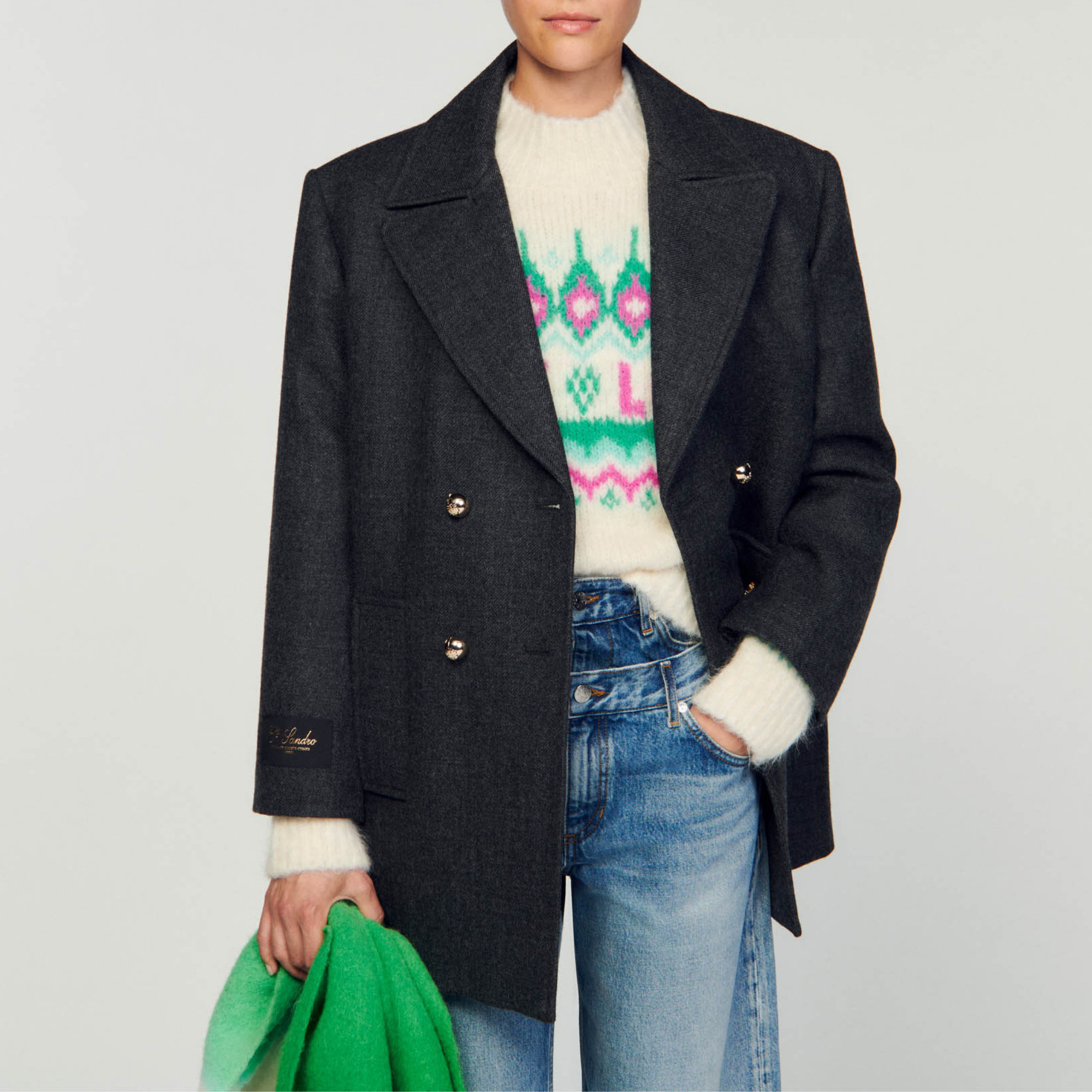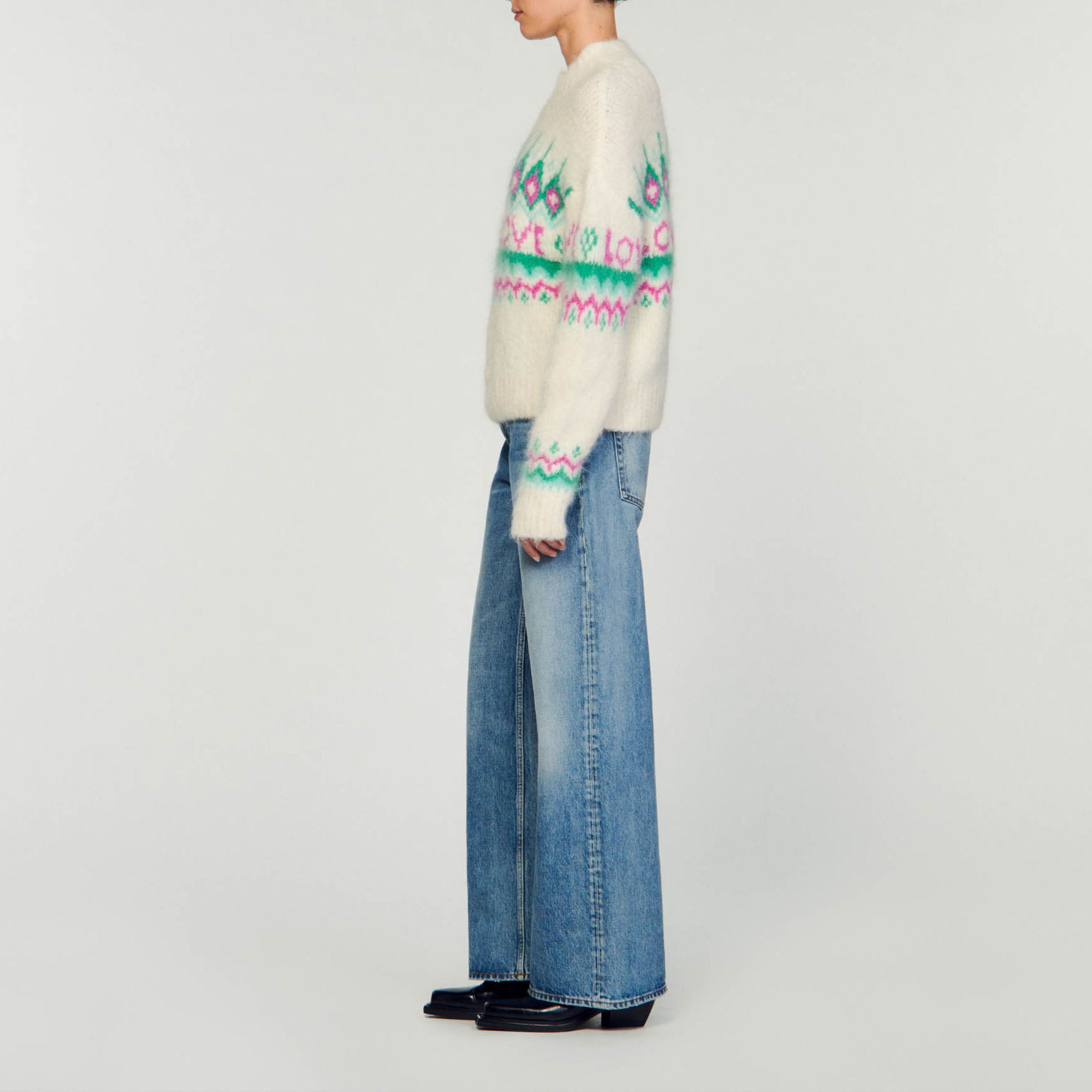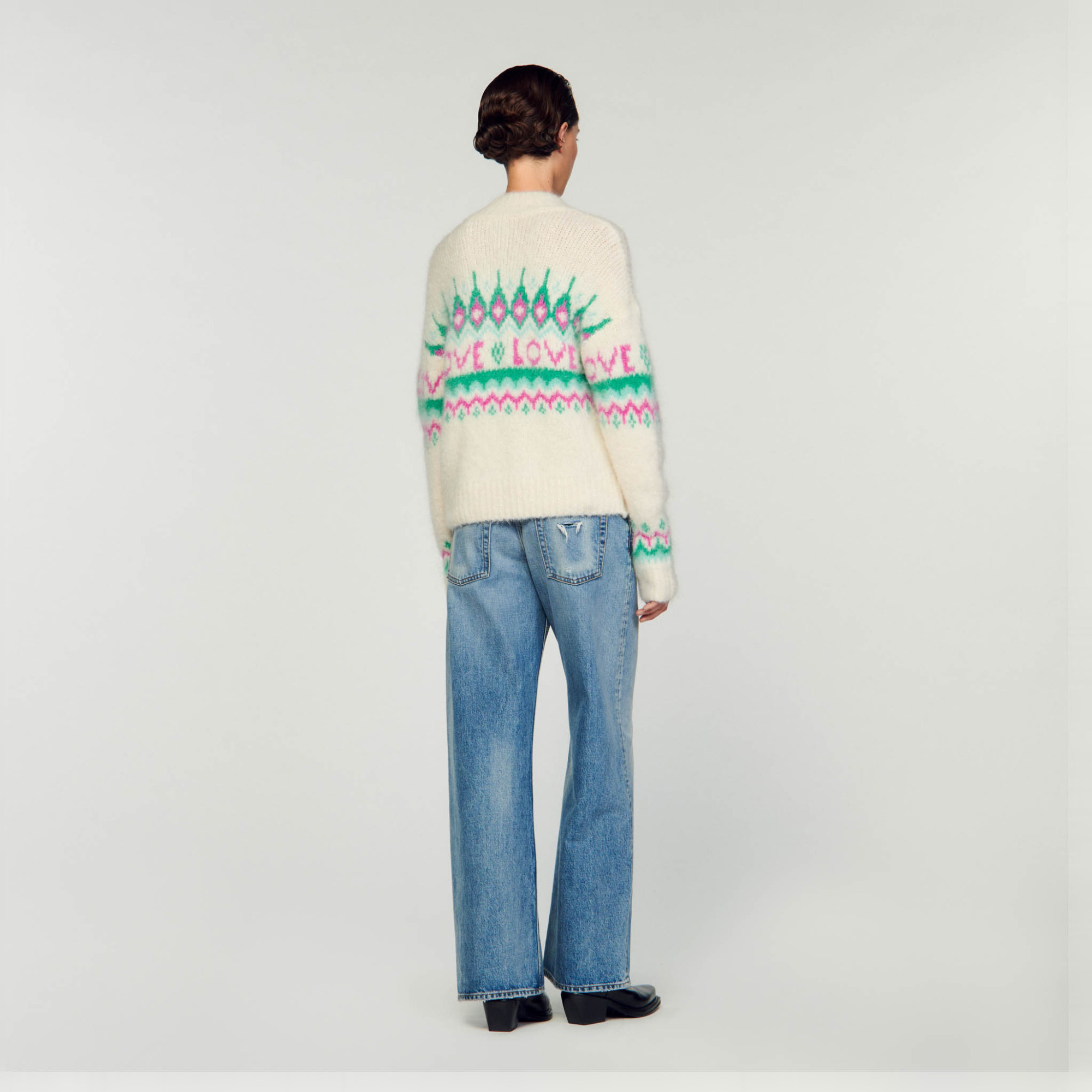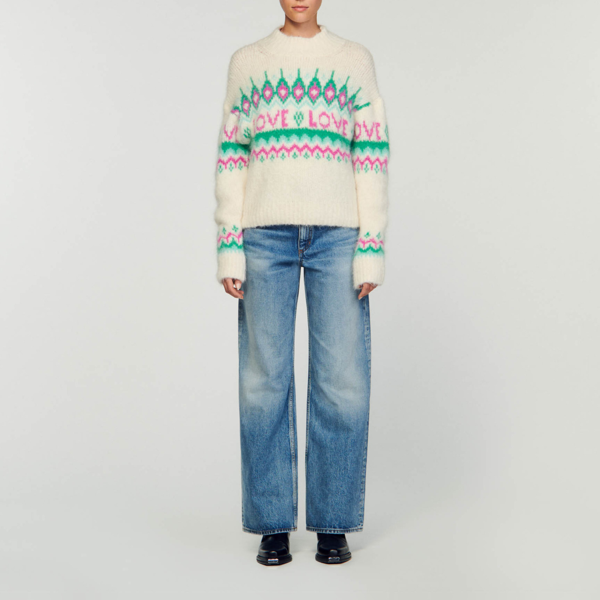 Sandro alpaca Knit sweater made from wool and alpaca, with high neck, long sleeves and embellished with a fancy knit that spells Love.