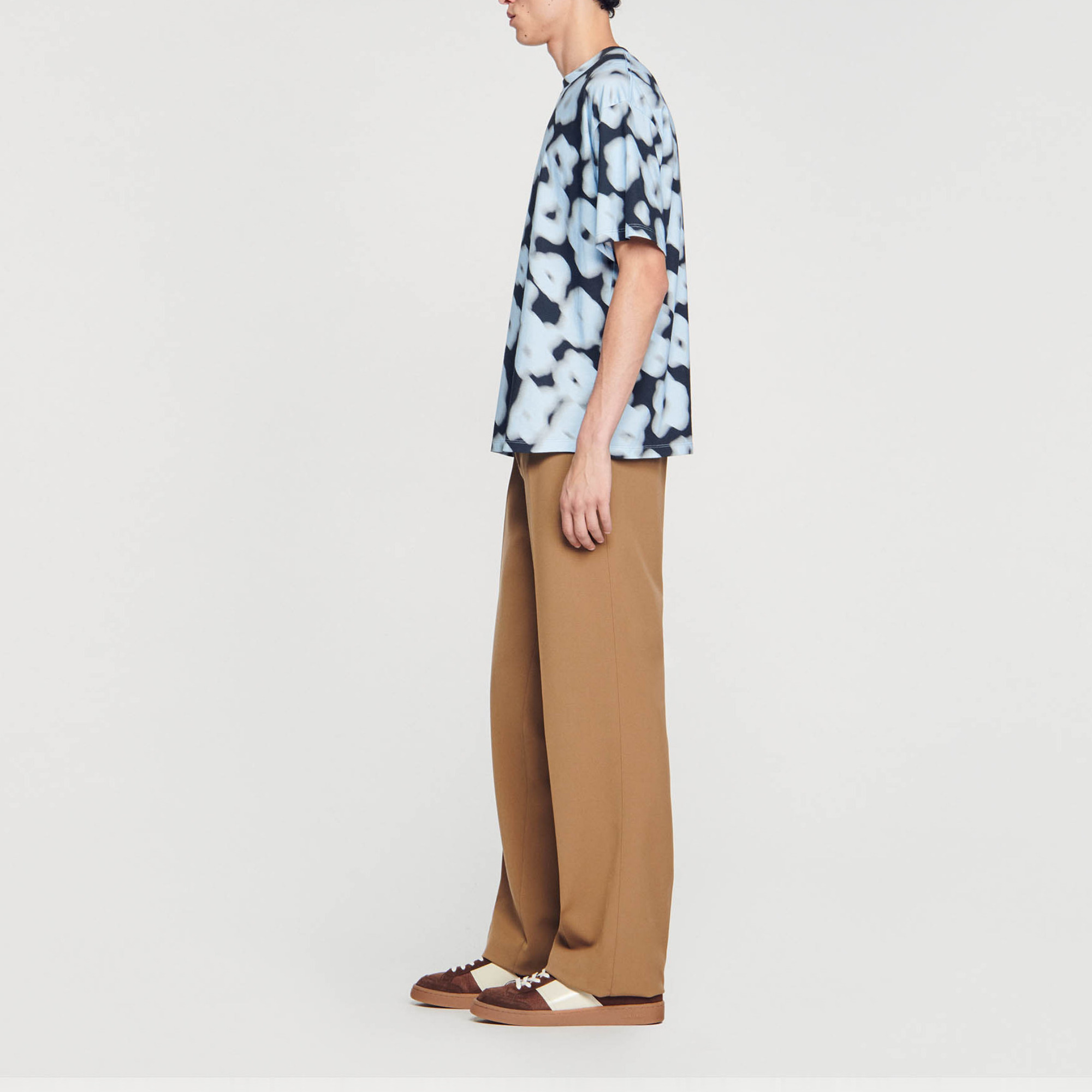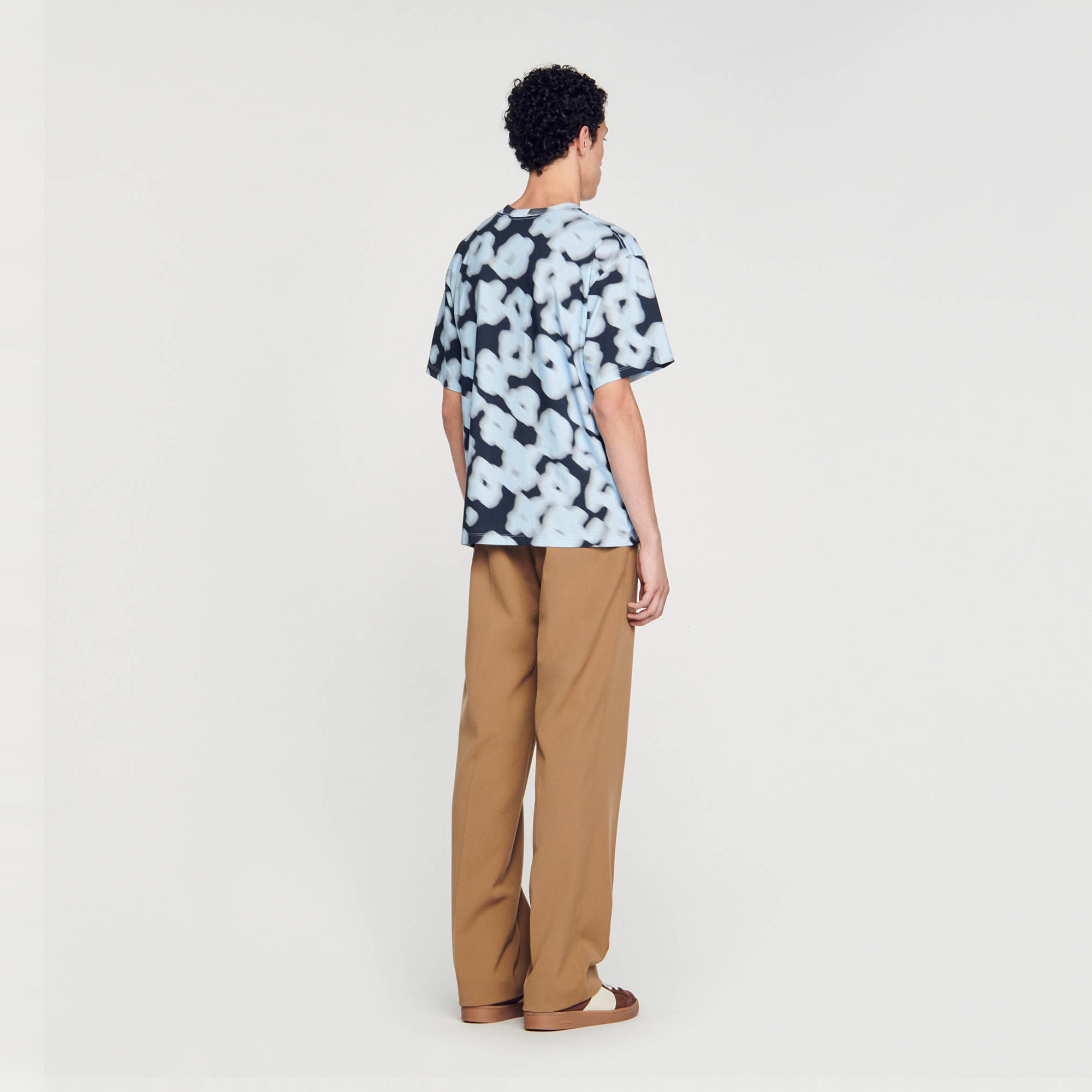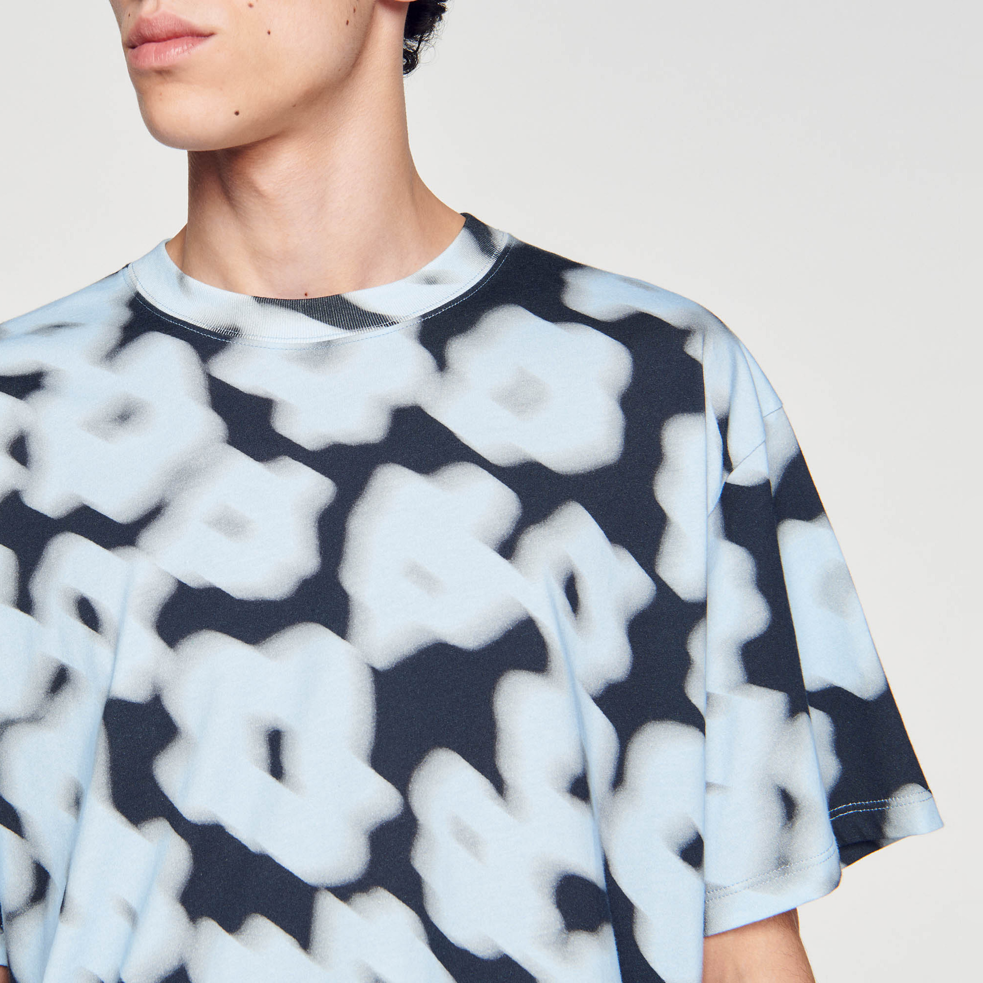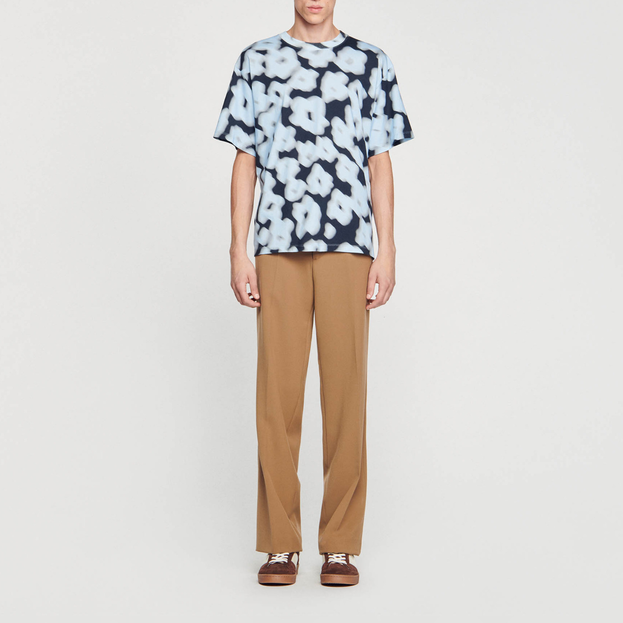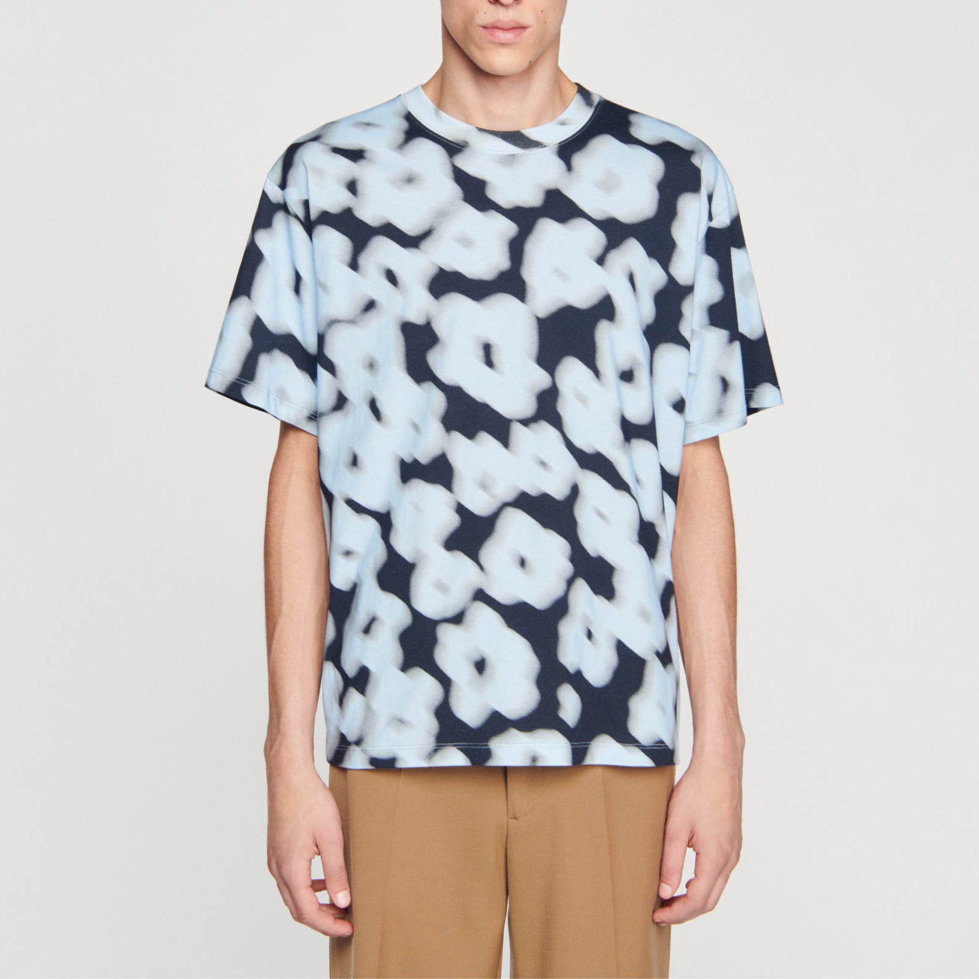 Sandro Men's cotton T-shirt Classic cut Round neck Short sleeves Blurry floral pattern.