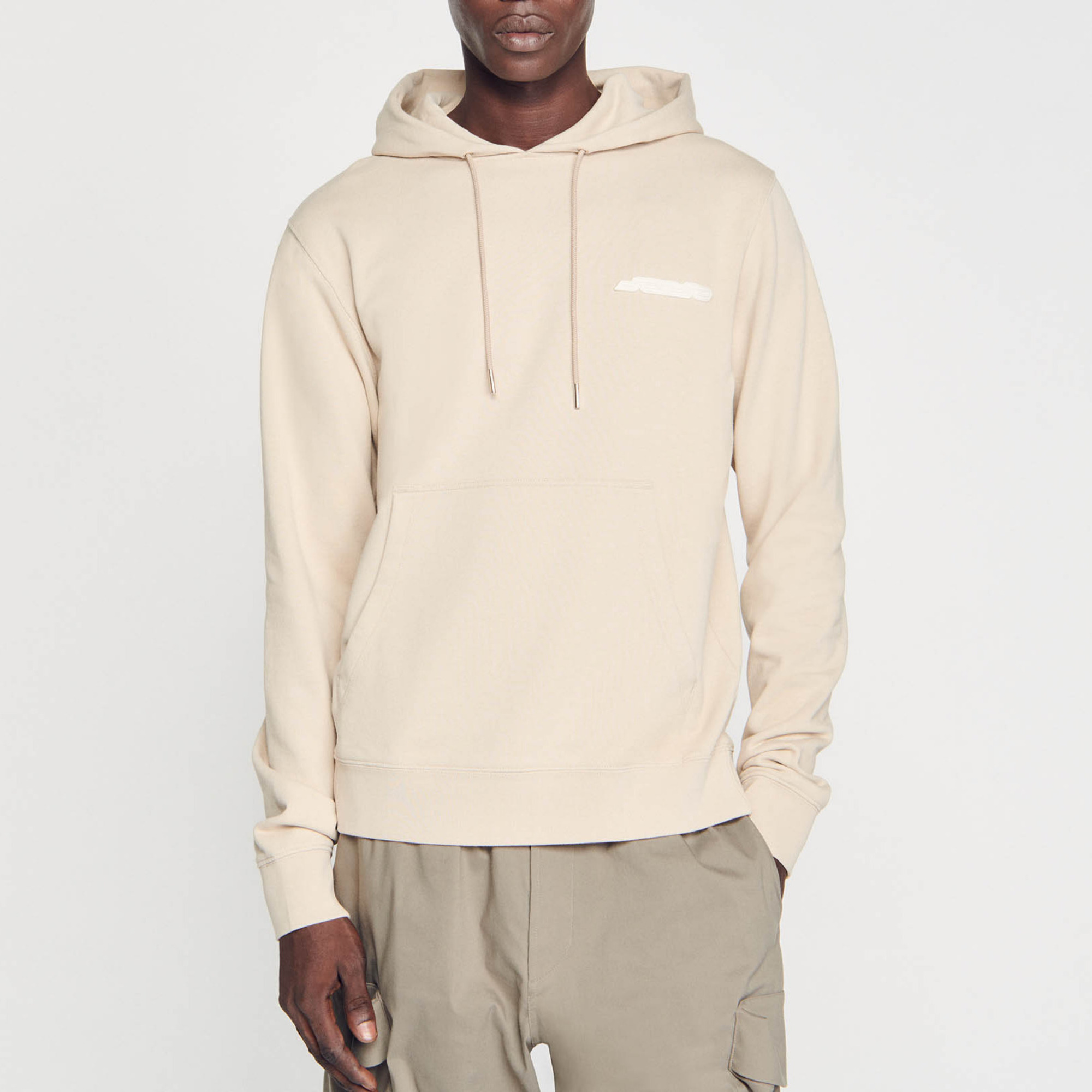 Sandro Men's fleece hoodie Hood Long sleeves Sandro patch Rib finish The model wearing pink is 185 cm / 6'