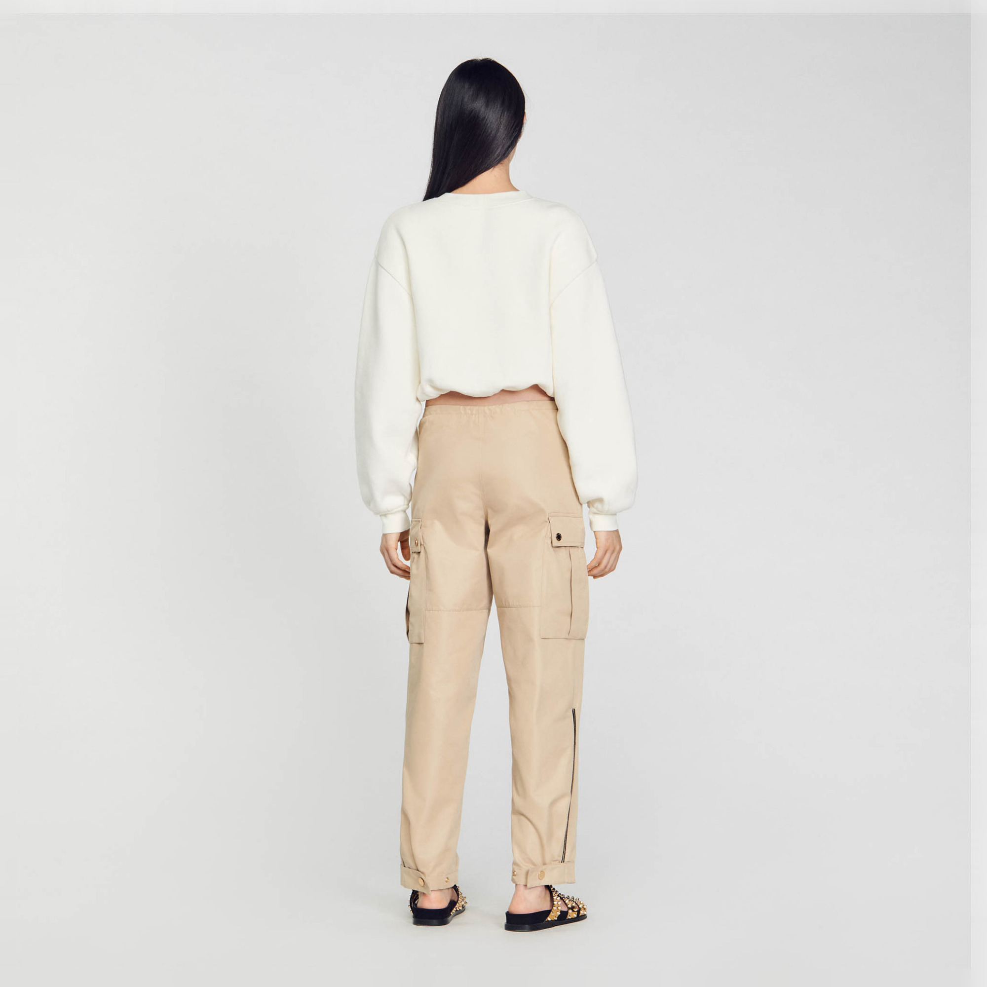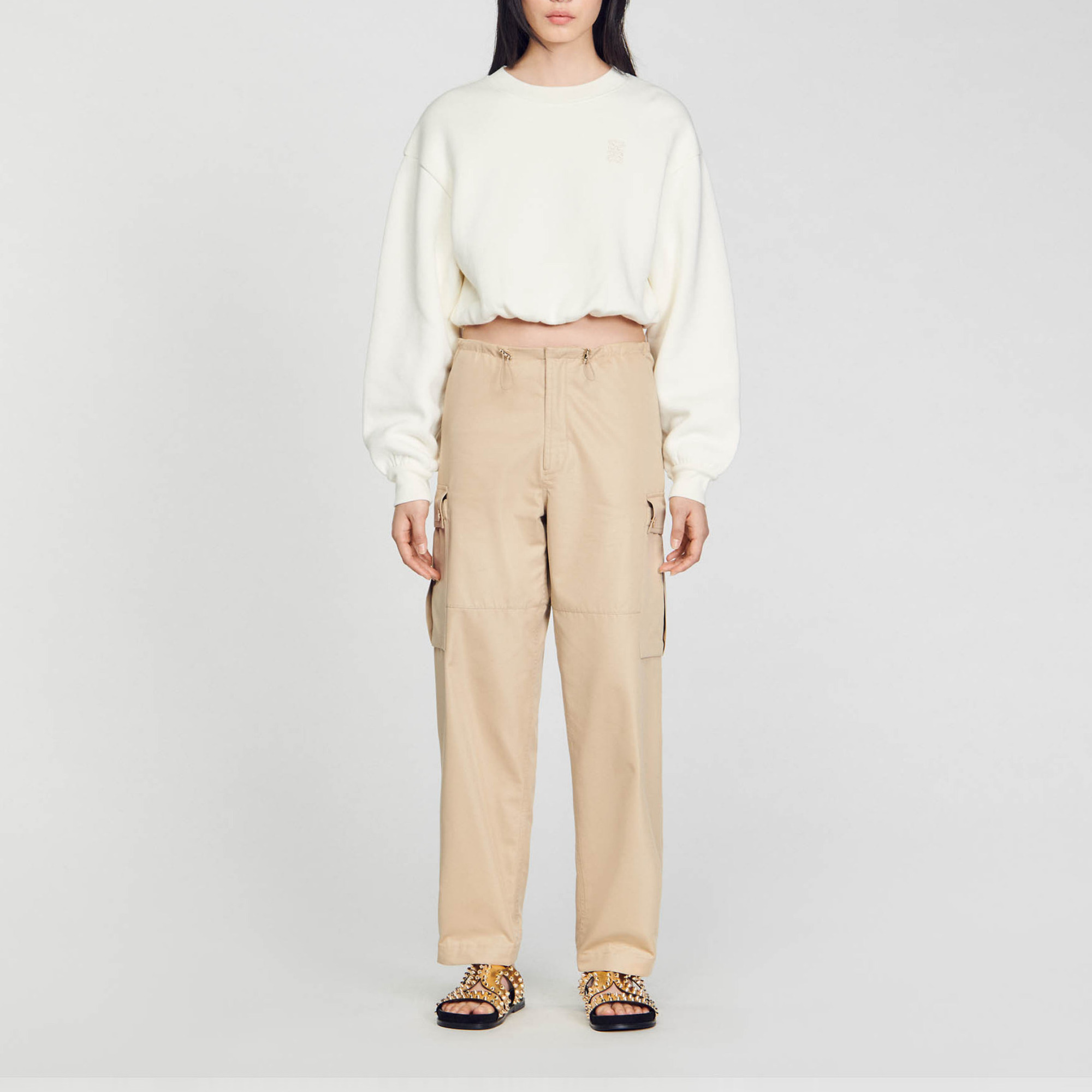 Sandro cotton Cropped sweatshirt with waist gathers, a round neck, long sleeves and double S embroidery on the chest.
