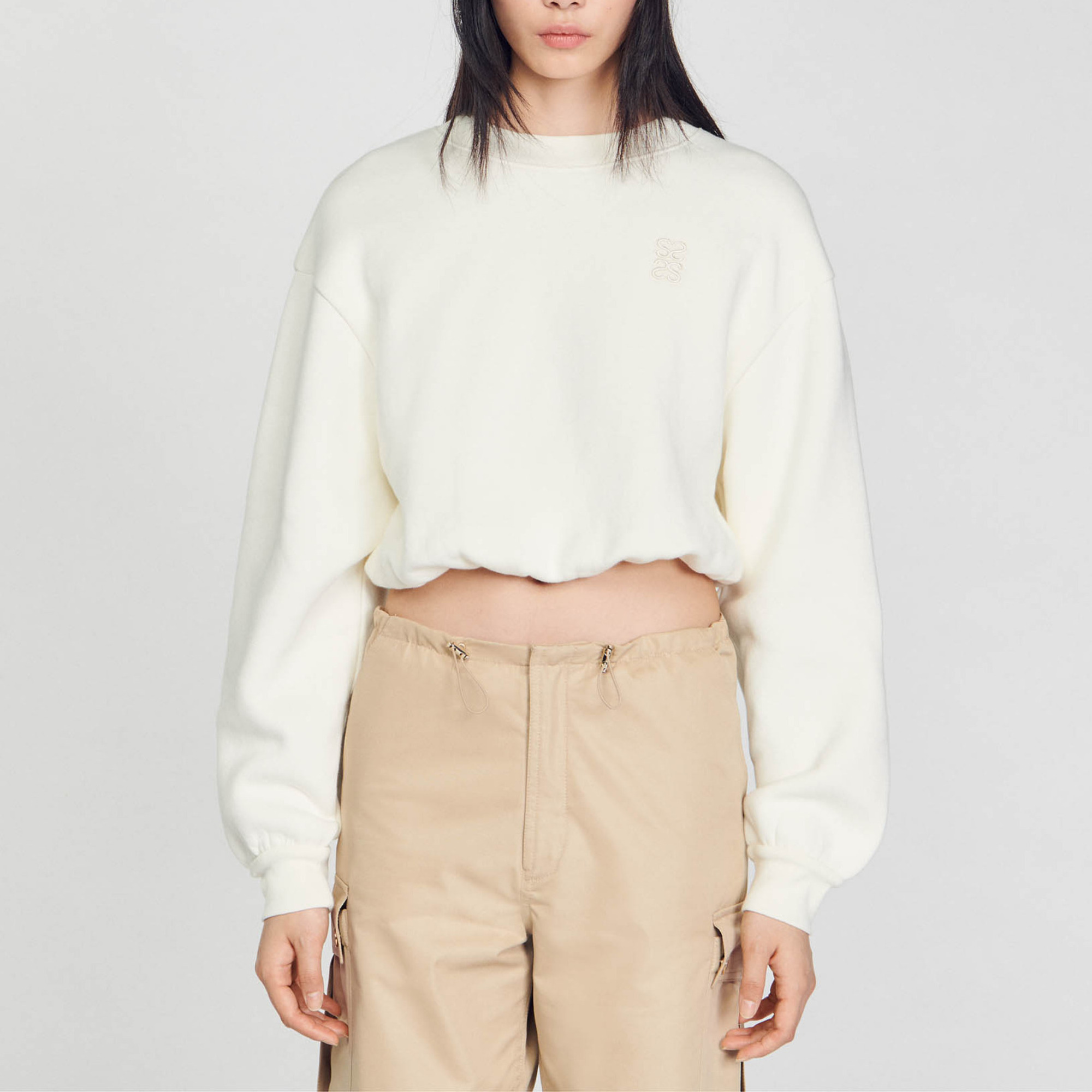Sandro Women's cropped sweatshirt Round neck Long sleeves Gathered-effect waist Rib finish Double S embroidery The cotton in this item was produced organically via a cultivation method that preserves biodiversity and bans the use of pesticides and GMOs..