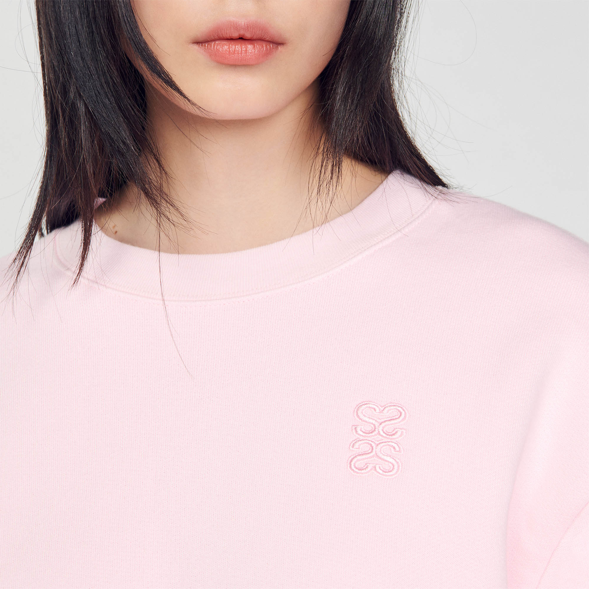 Sandro Women's cropped sweatshirt Round neck Long sleeves Gathered-effect waist Rib finish Double S embroidery The cotton in this item was produced organically via a cultivation method that preserves biodiversity and bans the use of pesticides and GMOs..
