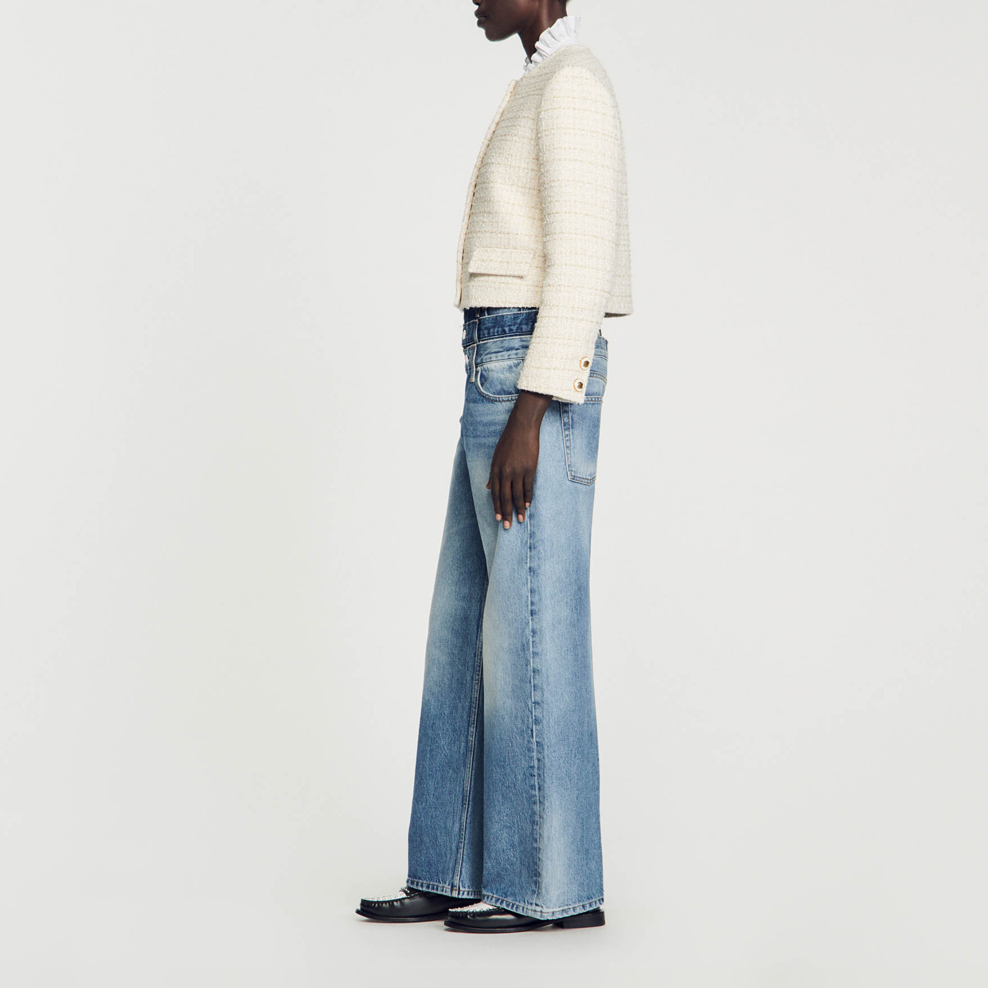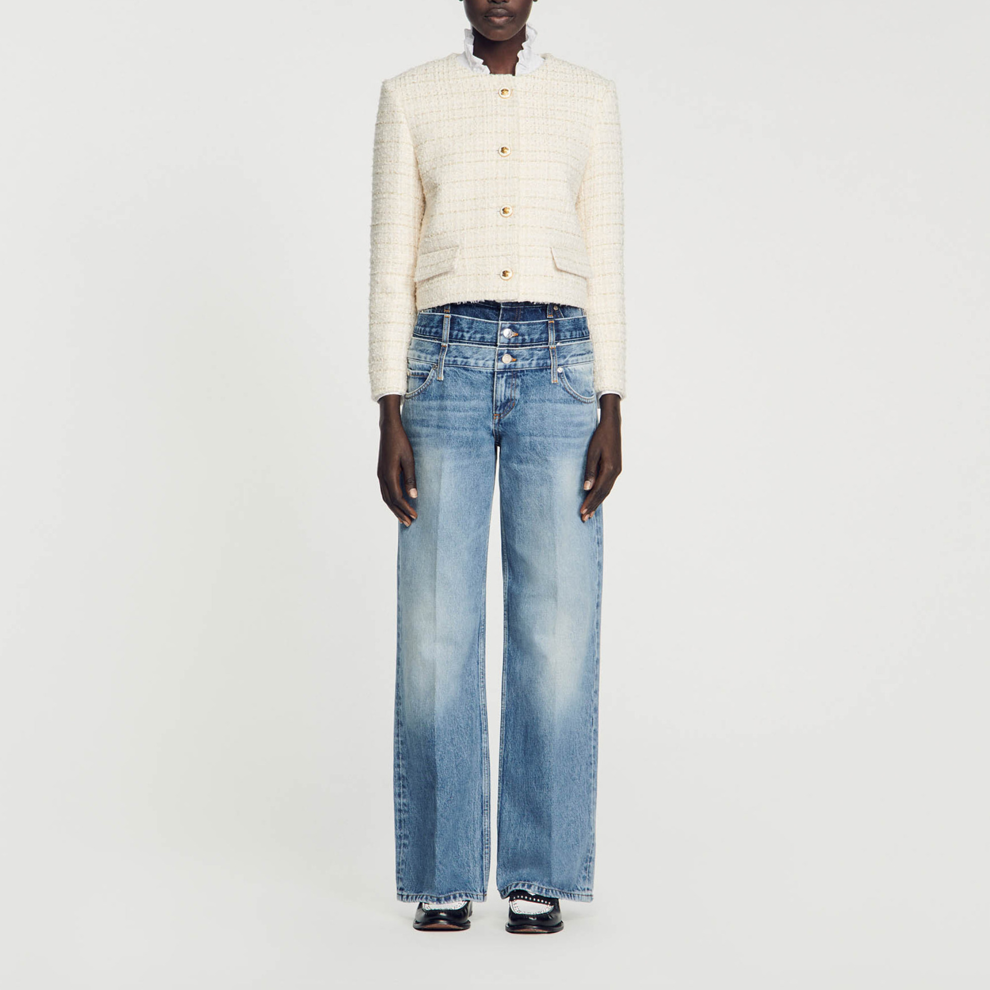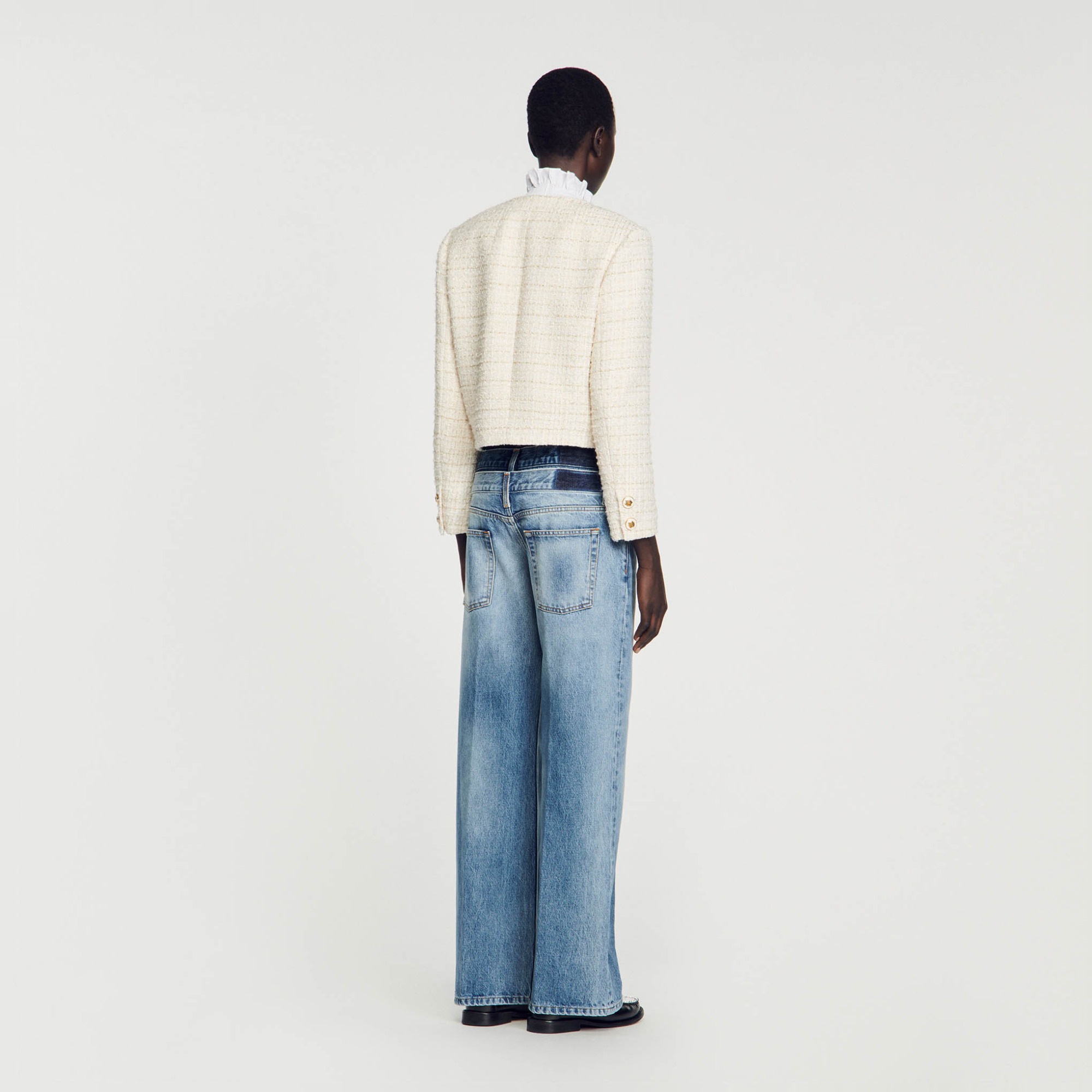 Sandro Women's cropped tweed jacket Round neck Long sleeves Button fastening Cuff buttons.