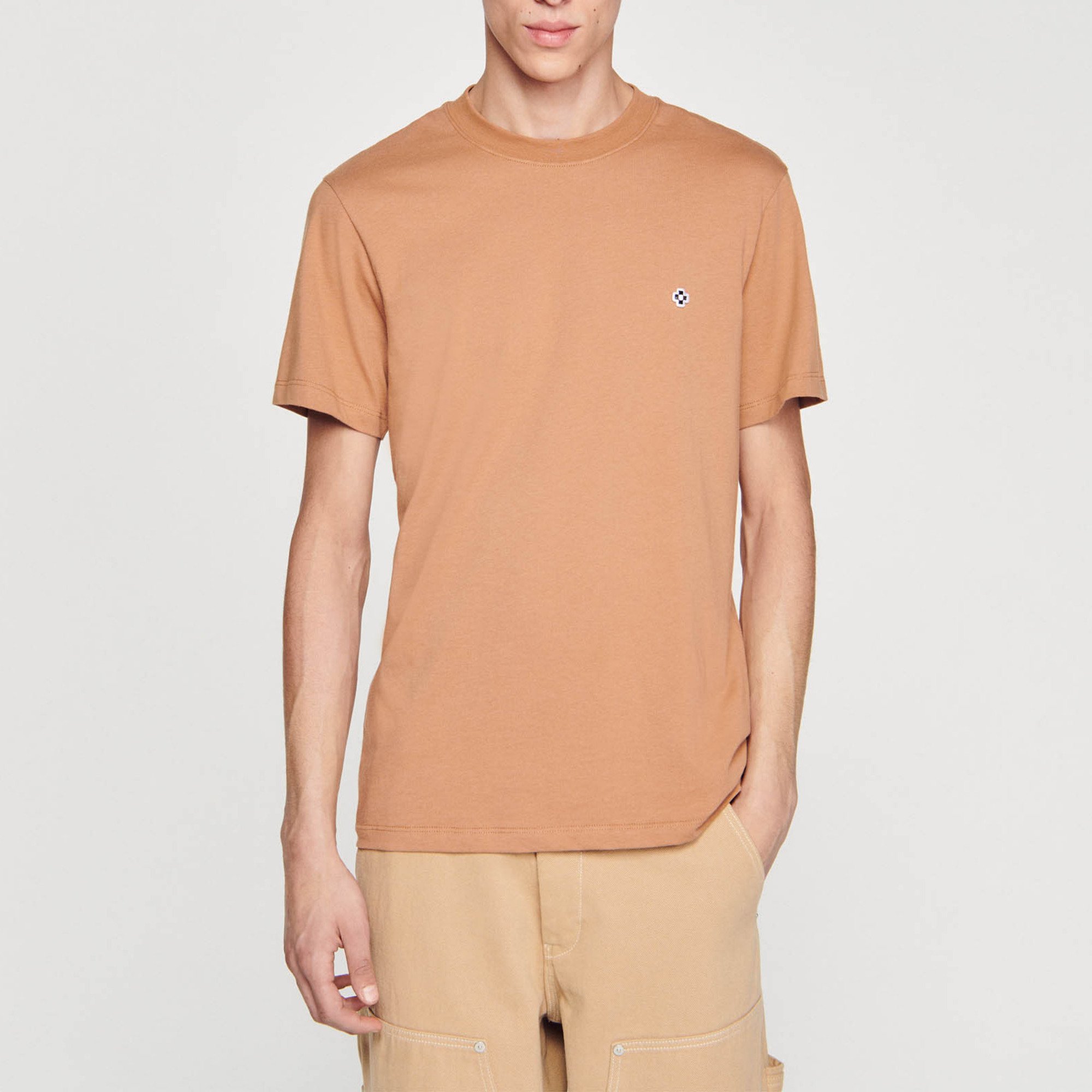 Sandro cotton Cotton T-shirt with a round neck, short sleeves and a mini Square Cross patch on the chest.