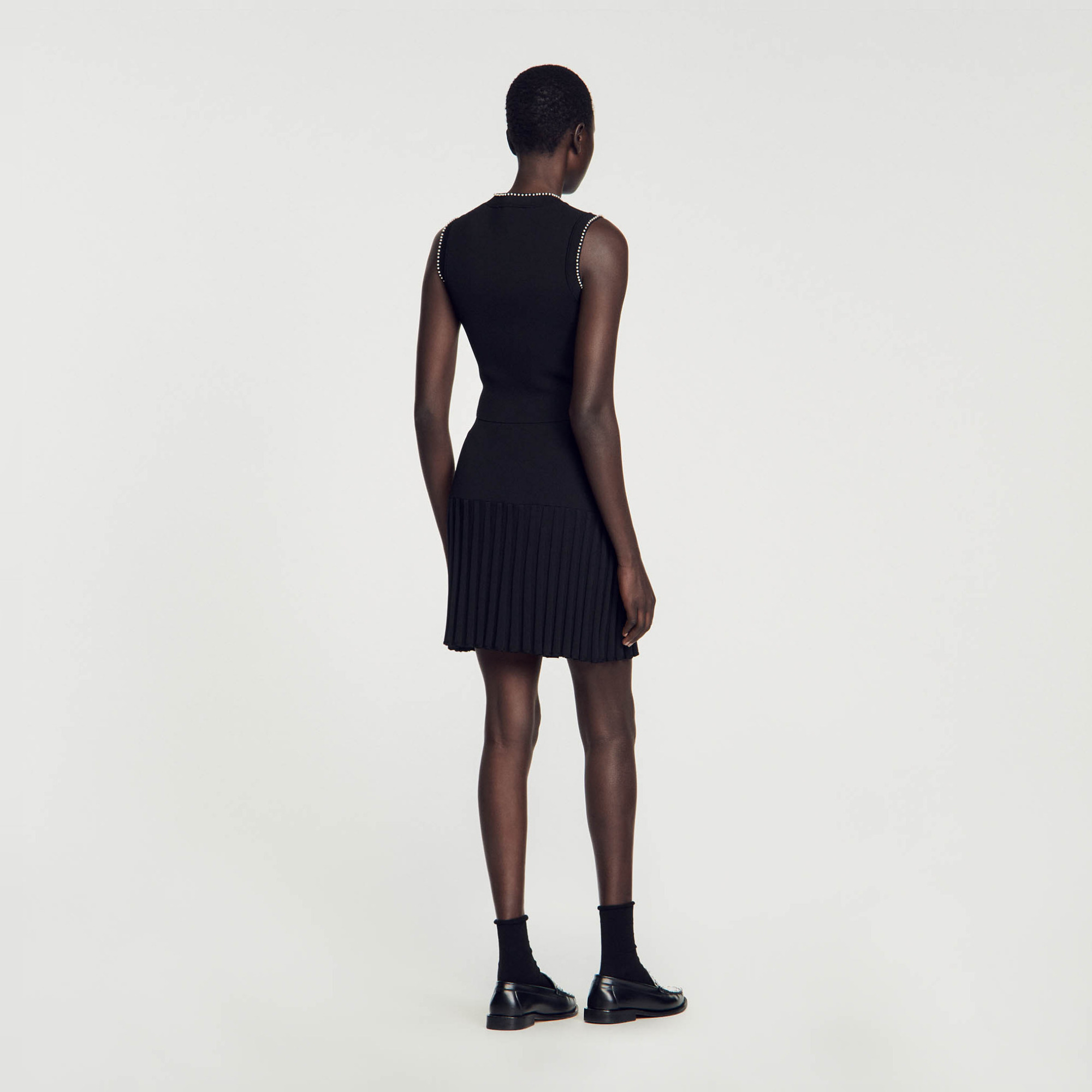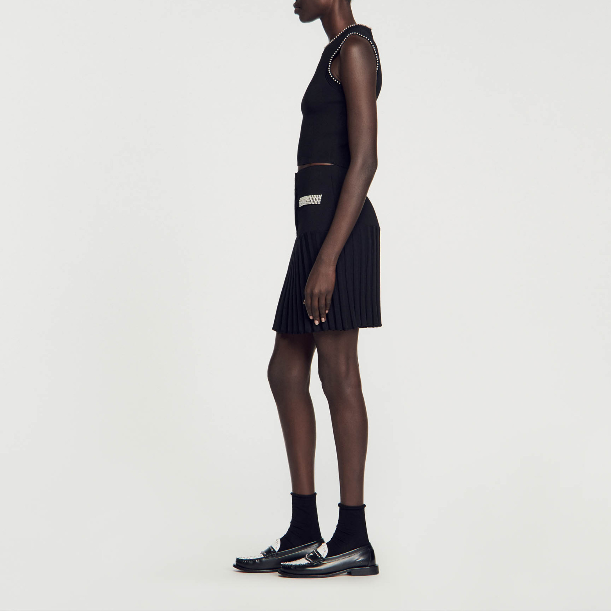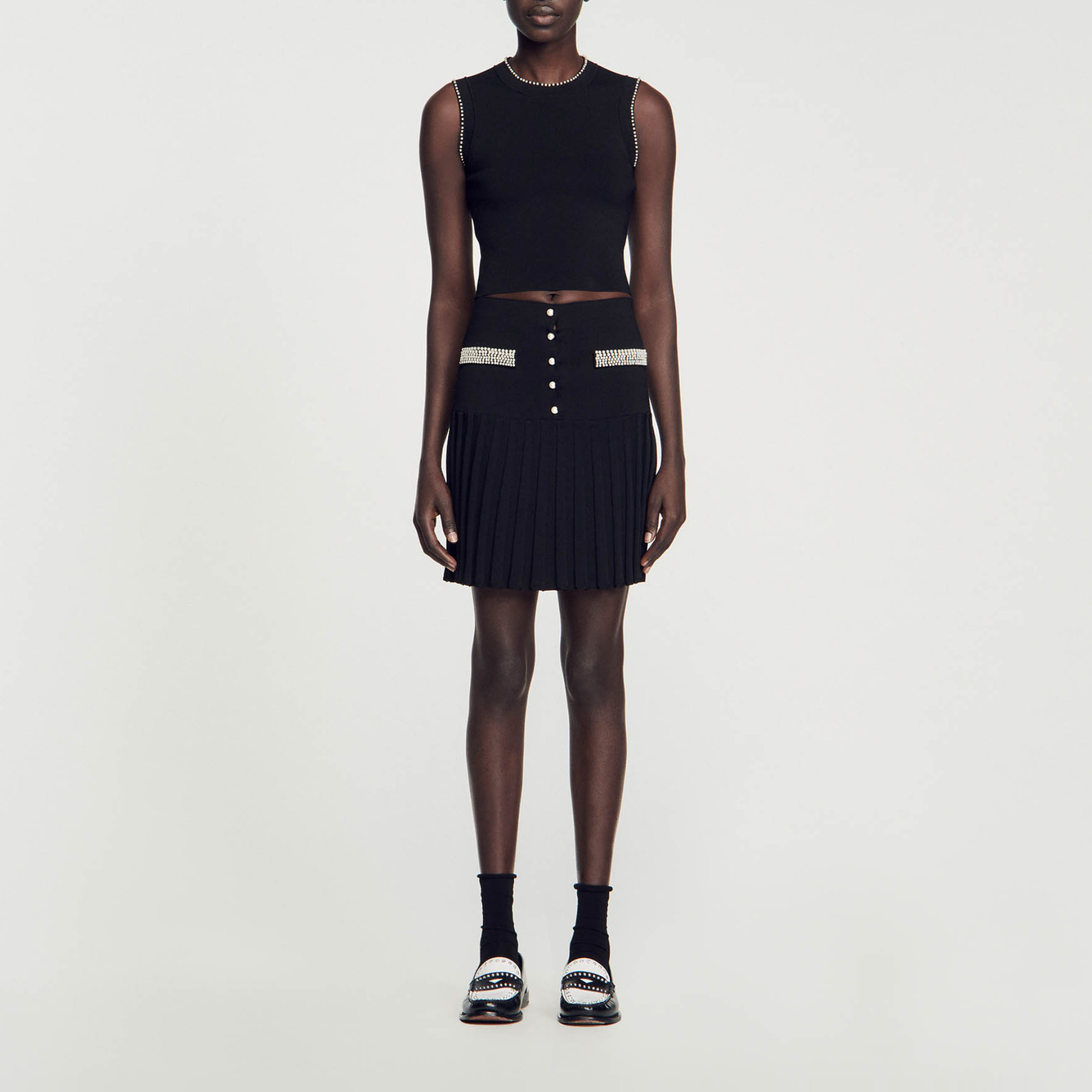 Sandro viscose Short knit skirt with mock beaded buttons at the top and pleats at the bottom.