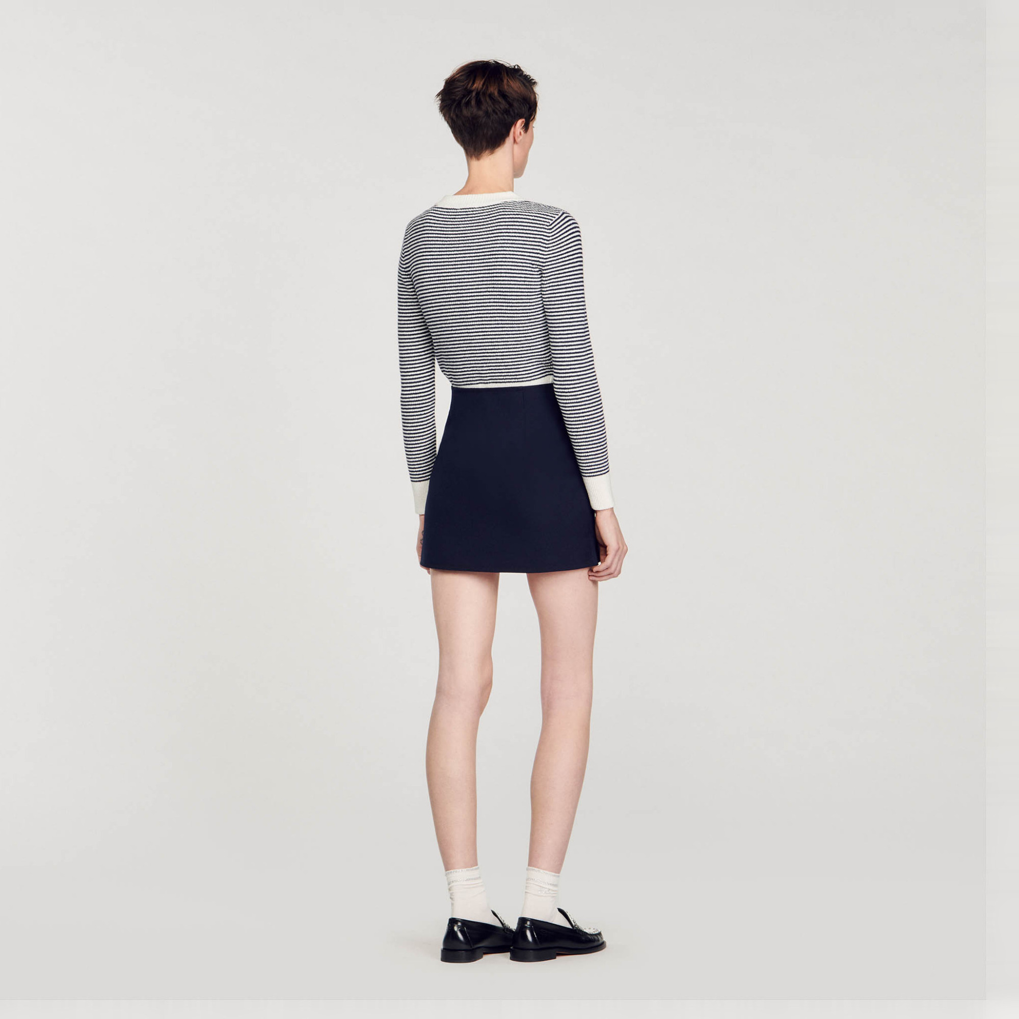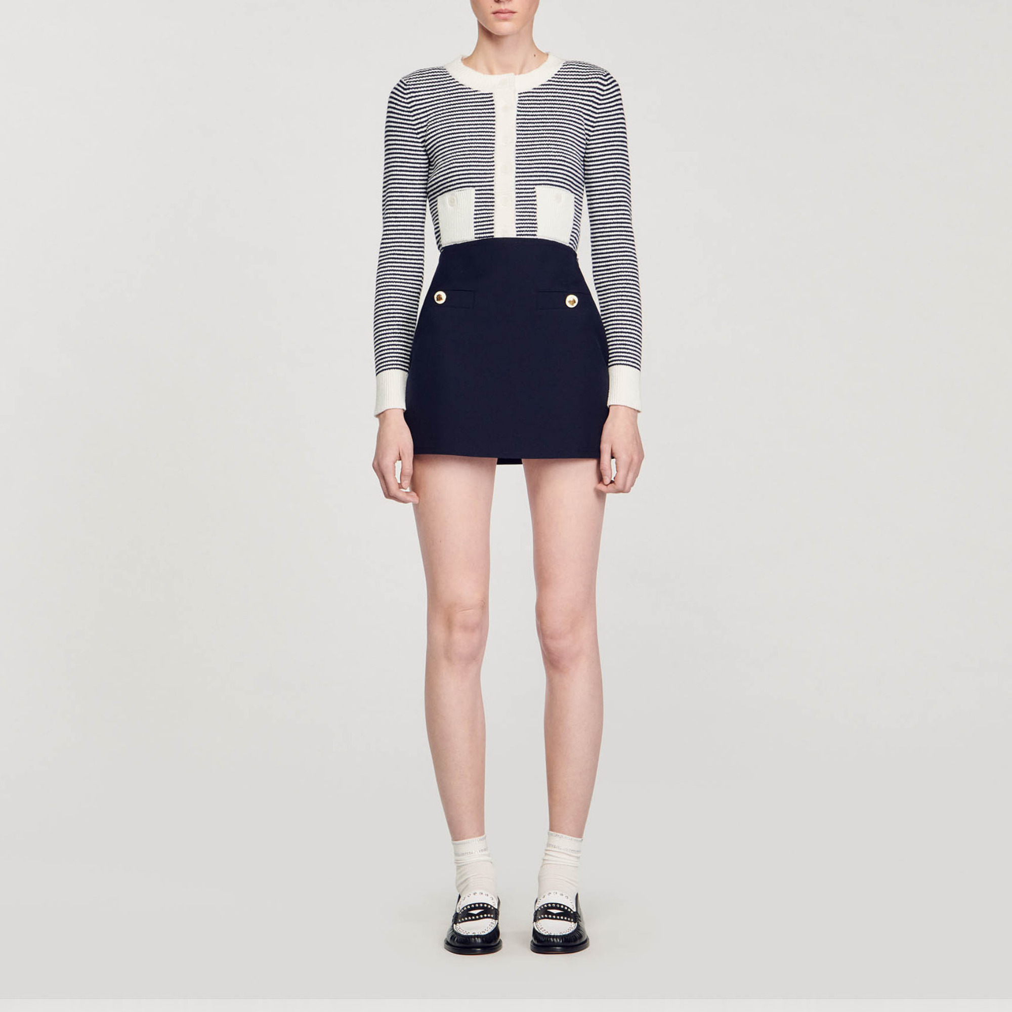 Sandro virgin Short skirt in wool-blend twill, with small side slits and welted mock pockets on the front embellished with decorative buttons.