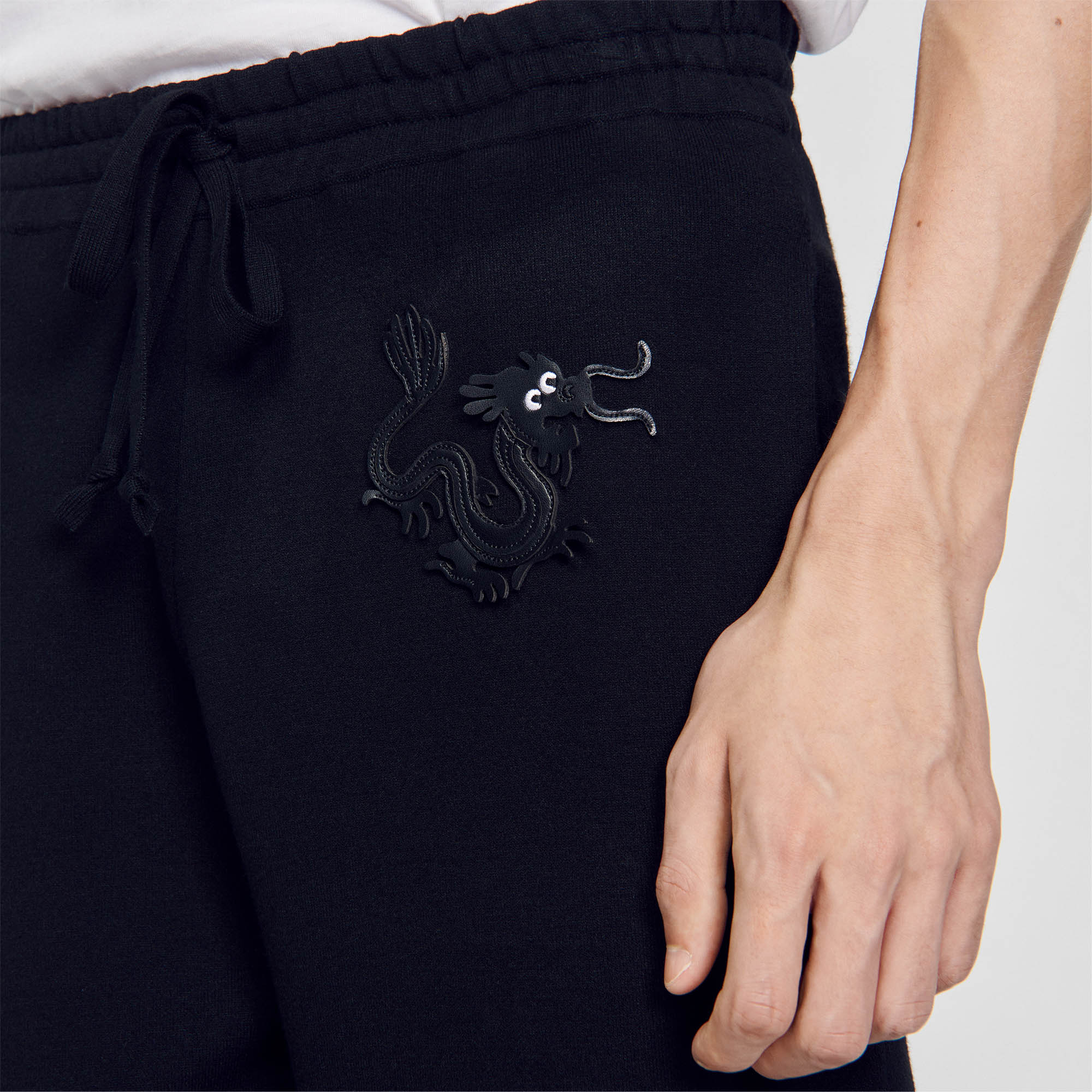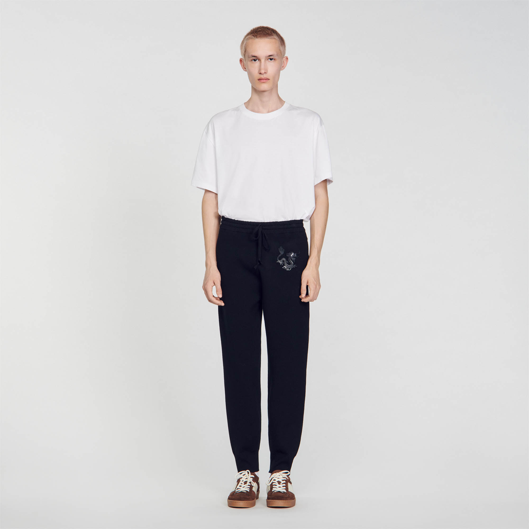 Sandro Men's jogging bottoms Fleece 2 pockets Drawstring waist Dragon patch The viscose in this item has a lower environmental impact than traditional viscose.
