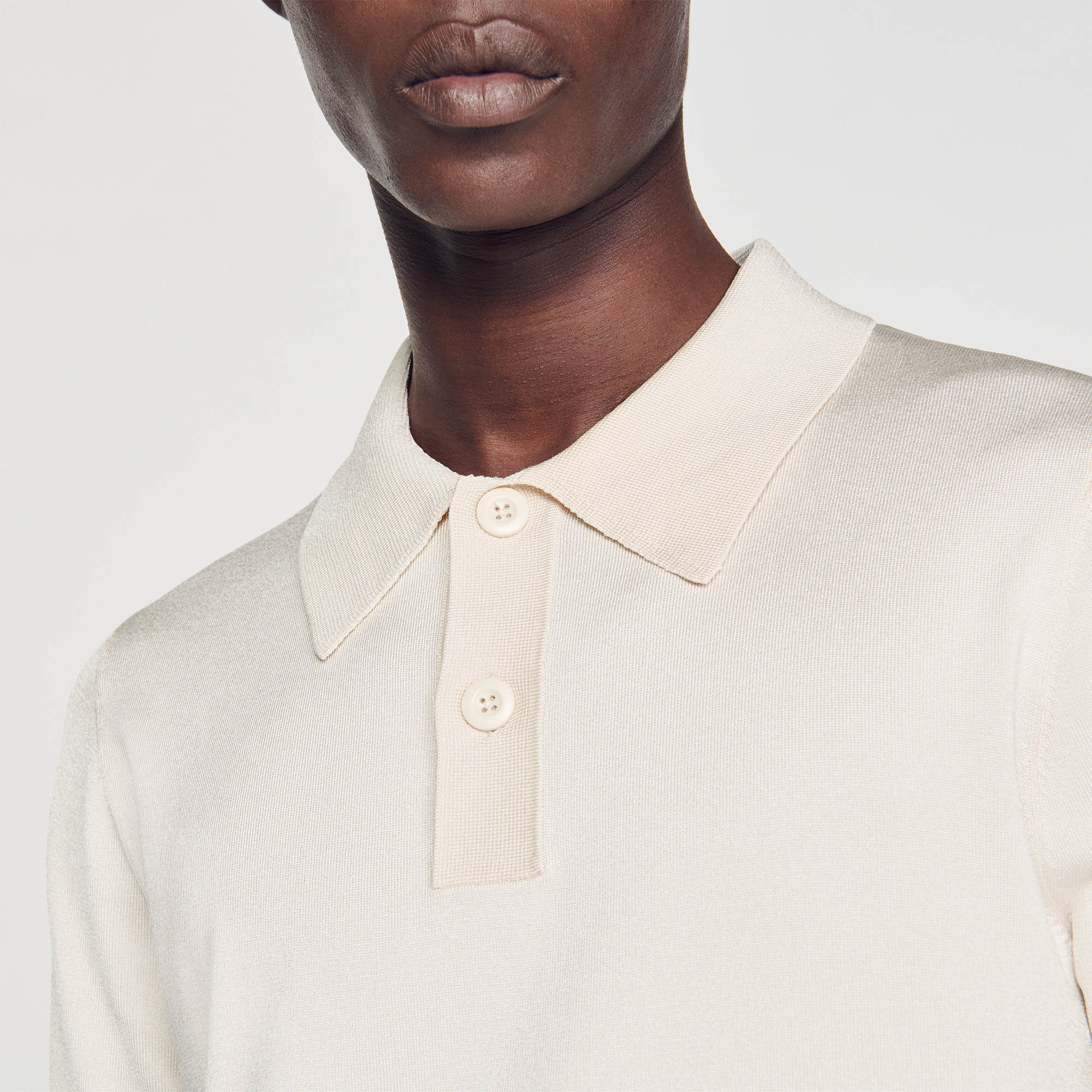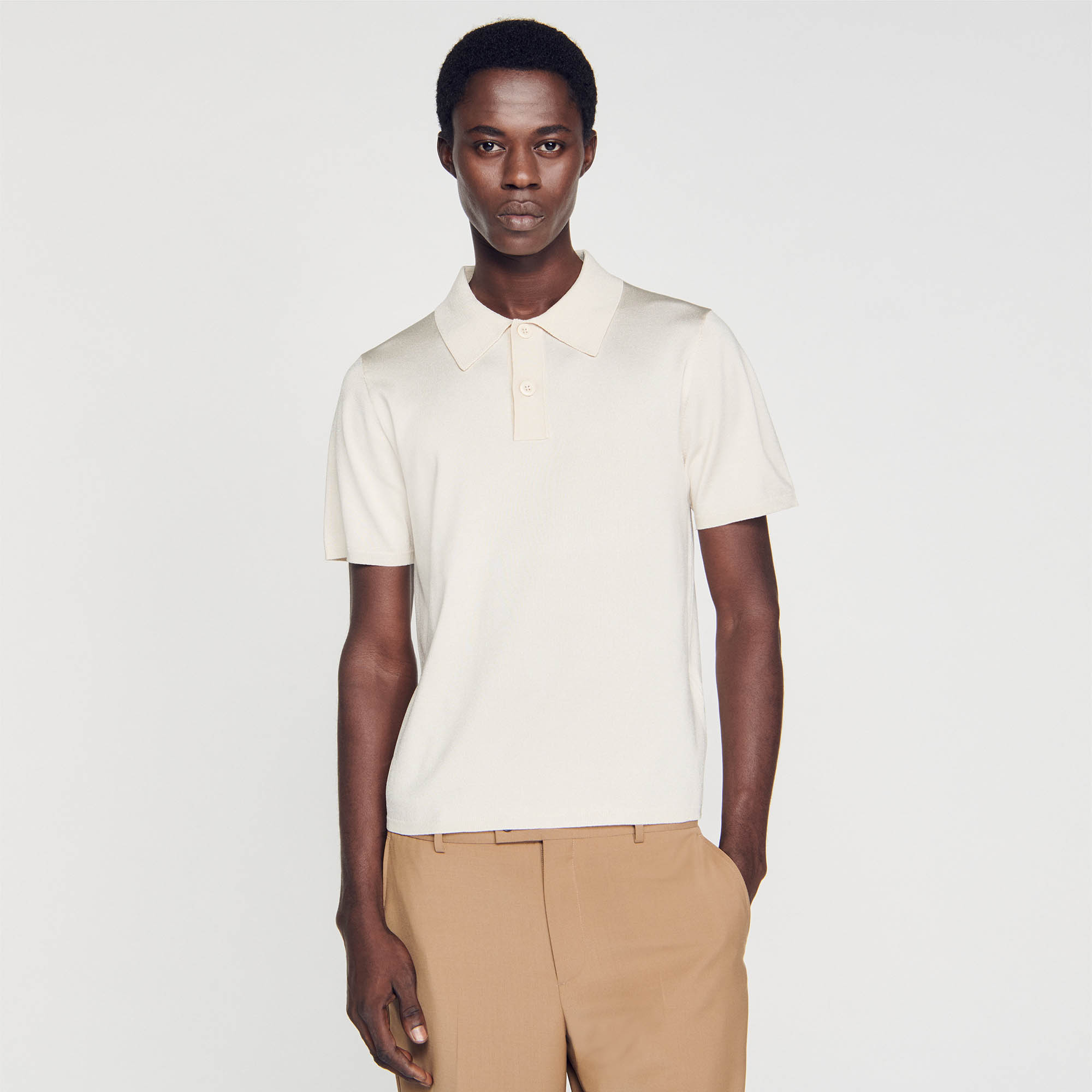 Sandro acetate Knitted polo shirt with a button-up collar and short sleeves.
