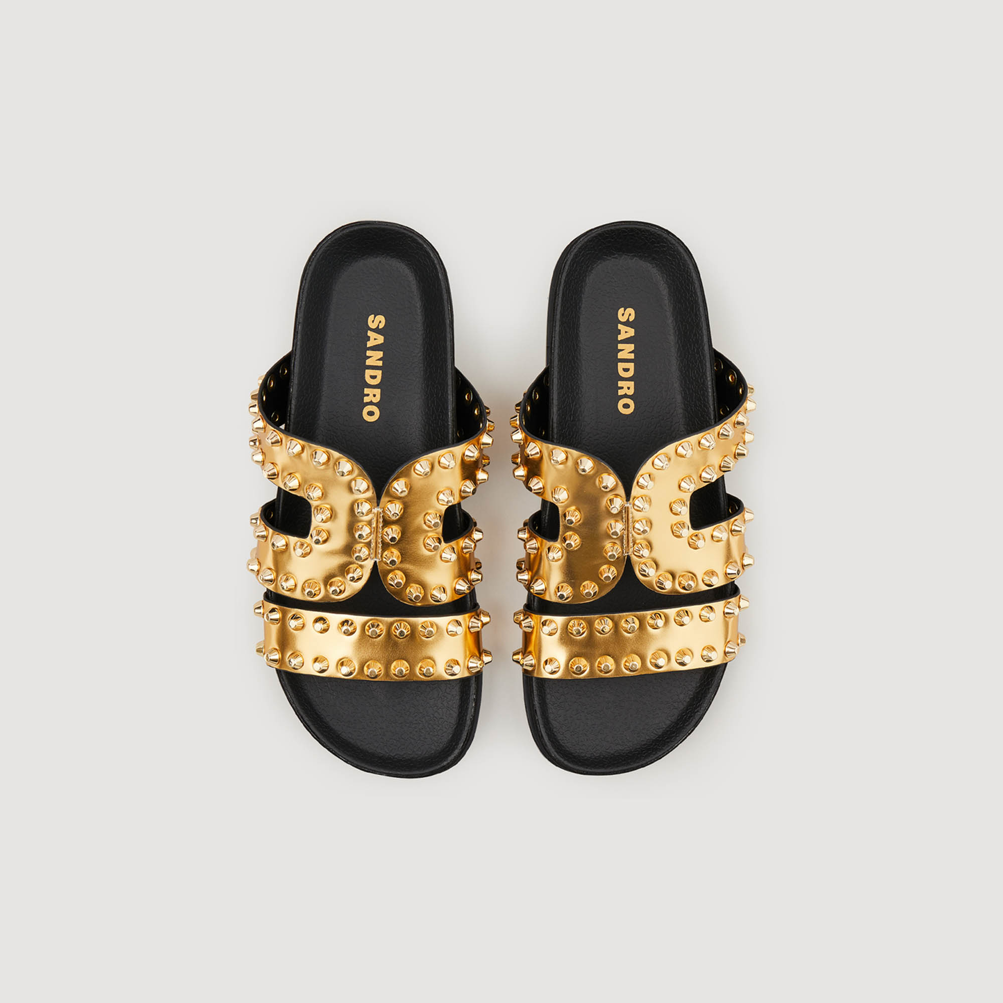Sandro leather Flat sandals with wide metallic straps embellished with spiked rivets.