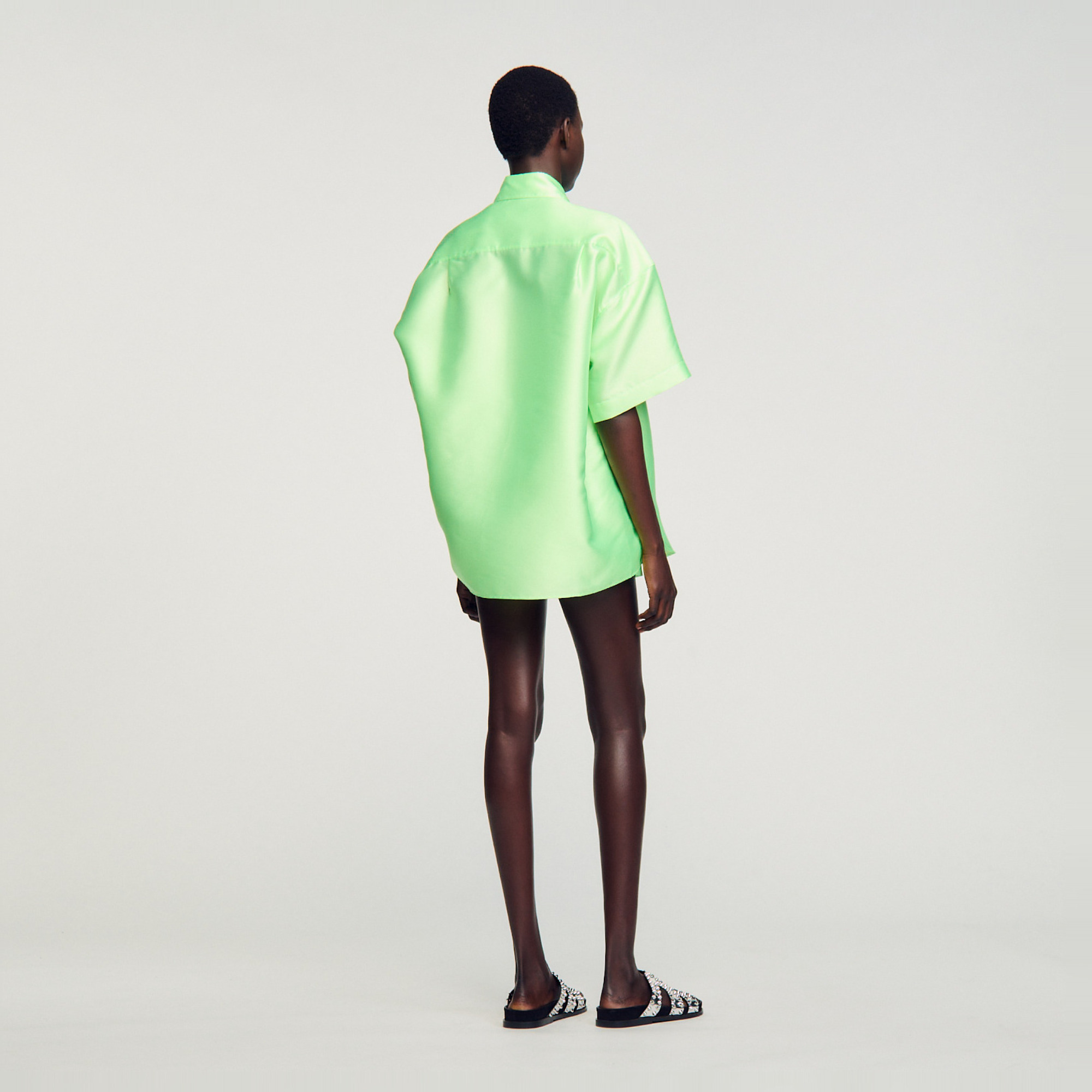 Sandro polyester Oversized satin shirt with short, loose-fitting sleeves, a patch pocket on the chest and a button placket with press studs.