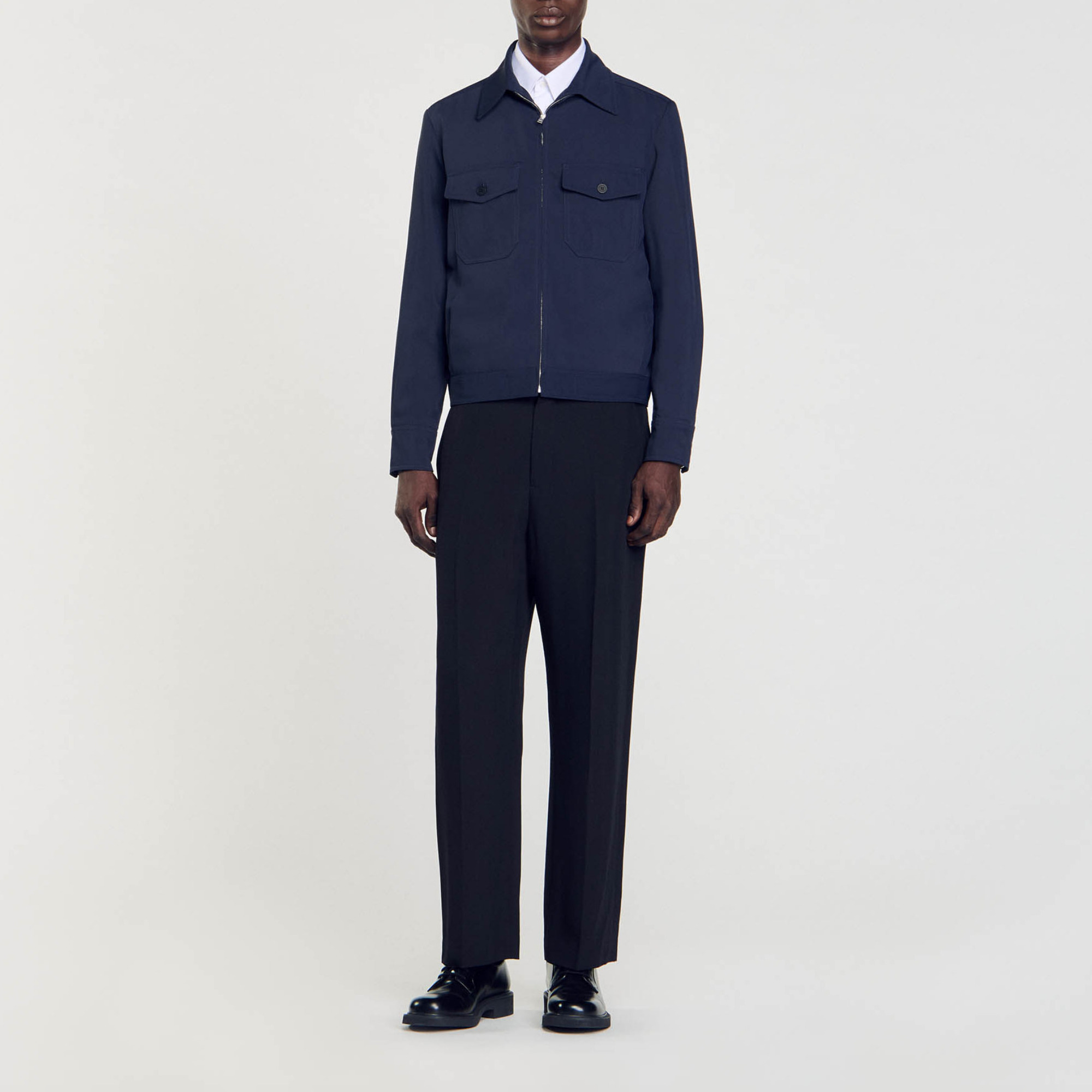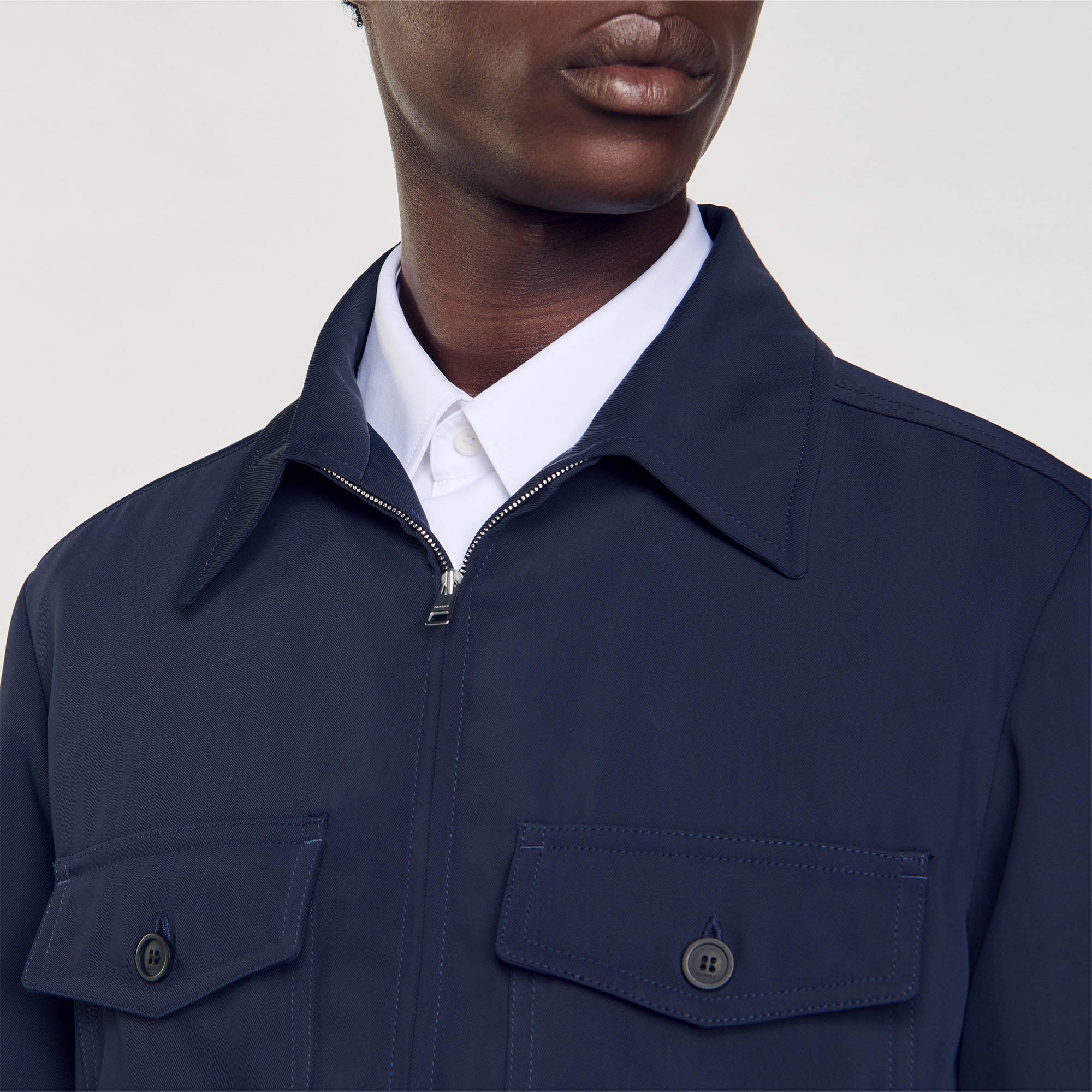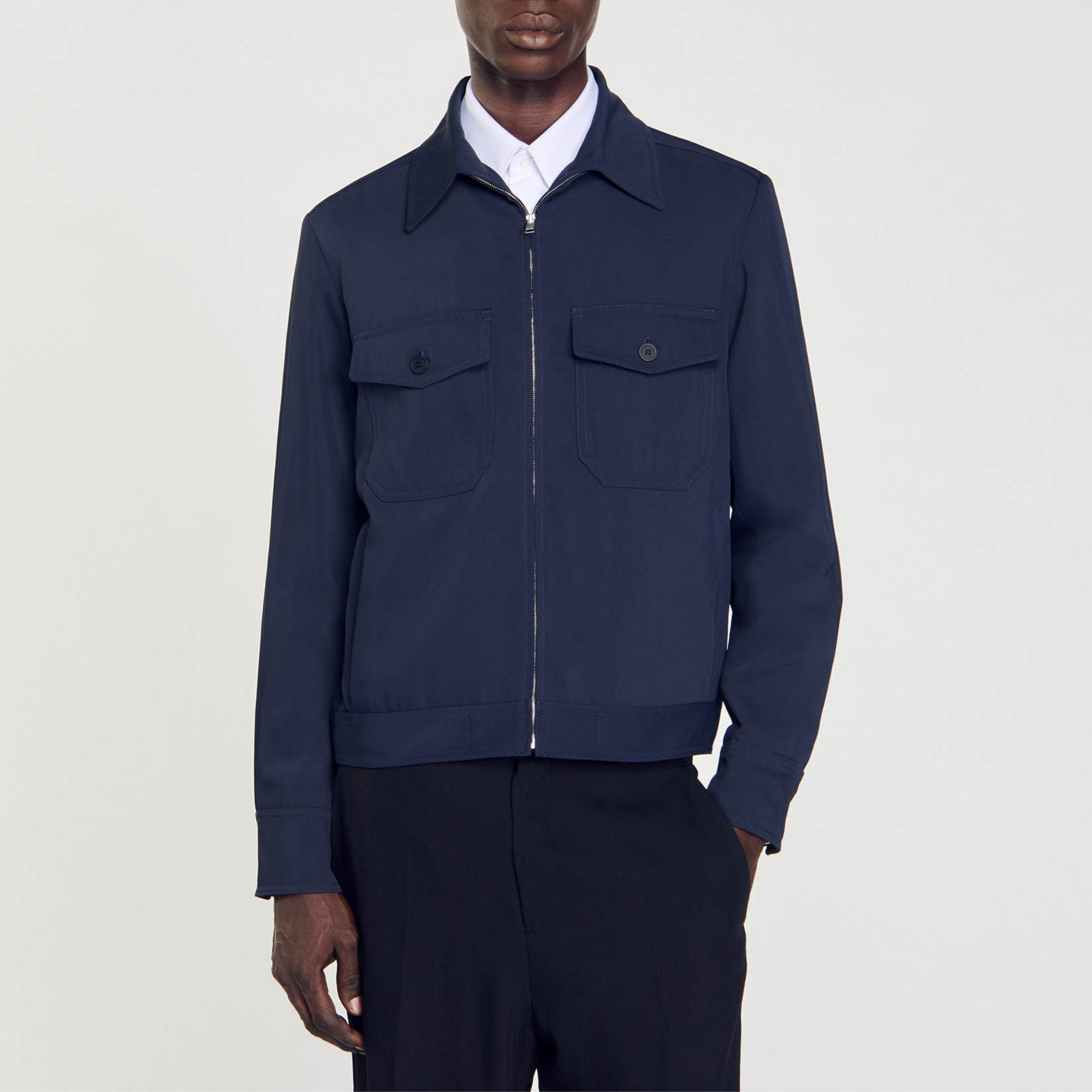 Sandro Men's jacket Long sleeves Zip fastening Chest flap pockets Side pockets Lined Shirt collar Inside welt pockets.