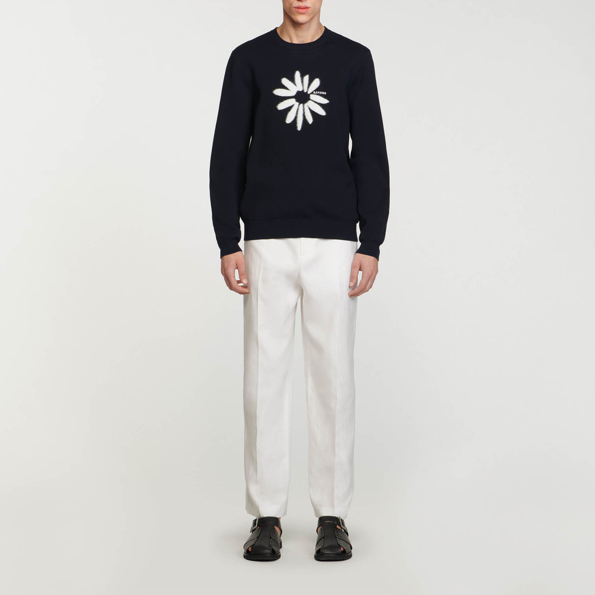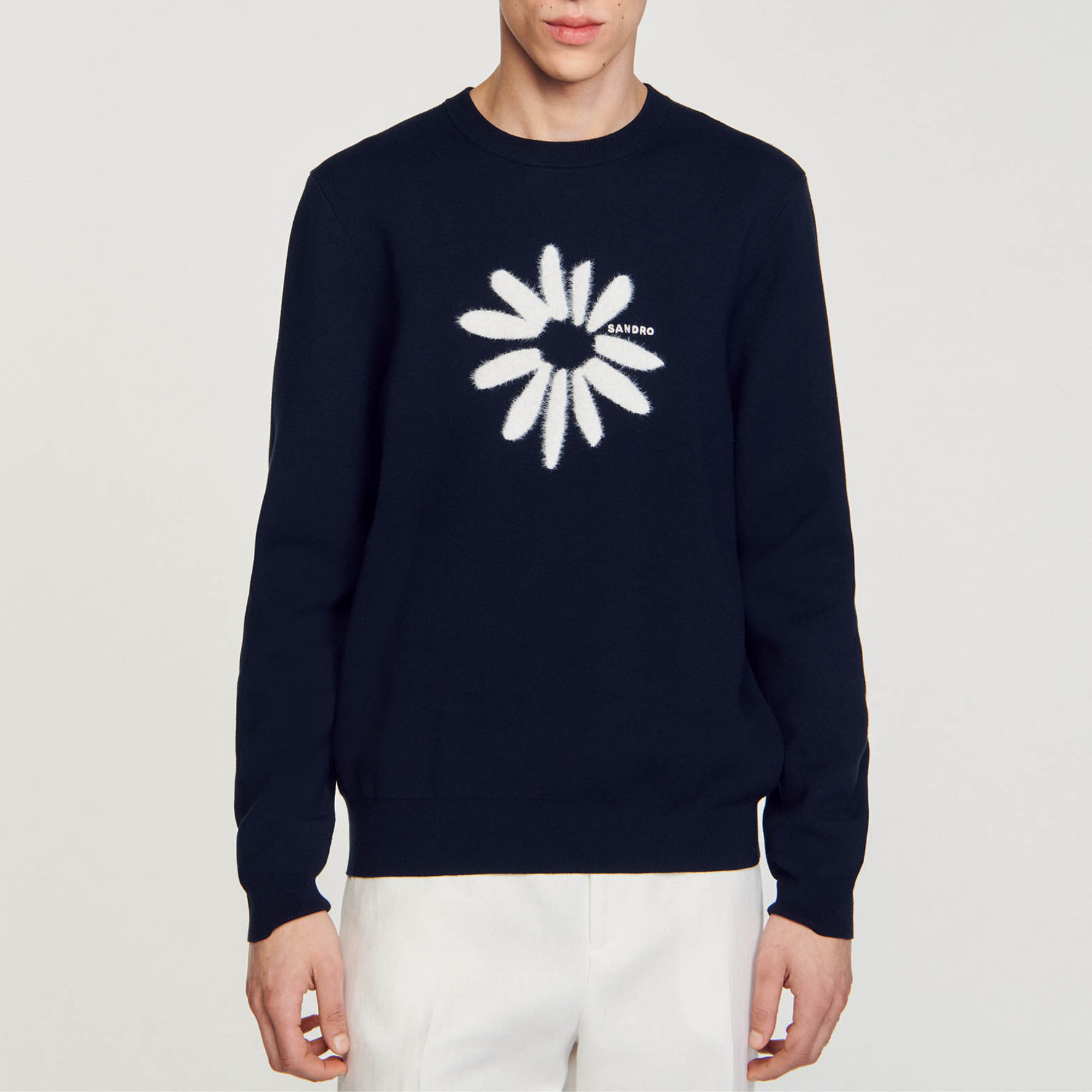 Sandro Men's jersey jumper Round neck Long sleeves Jacquard flower The viscose in this garment has a lower environmental impact than conventional viscose.