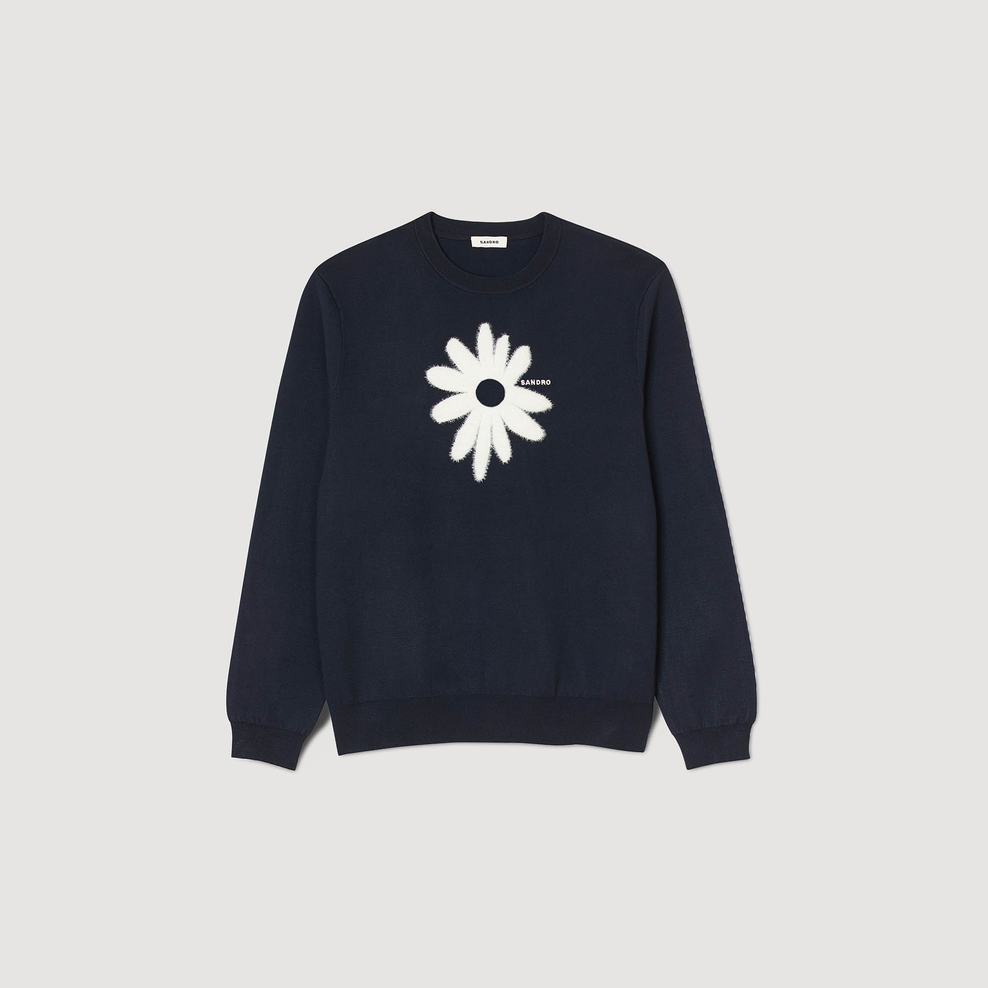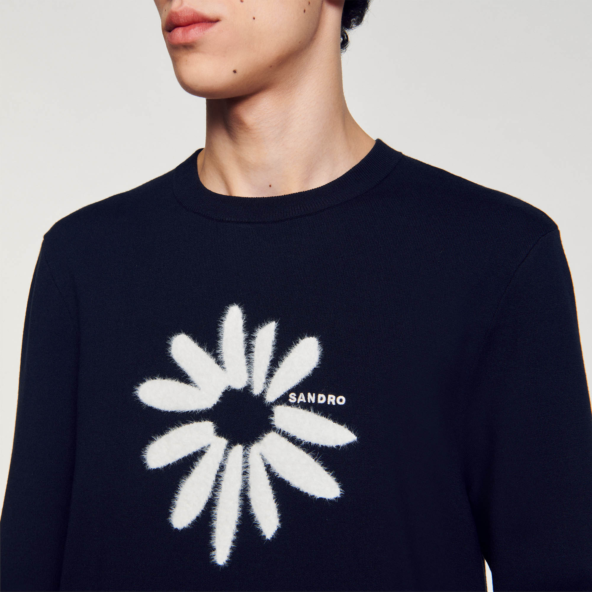Sandro viscose Double jersey knit jumper with round neck and long sleeves, embellished with a jacquard flower on the front.
