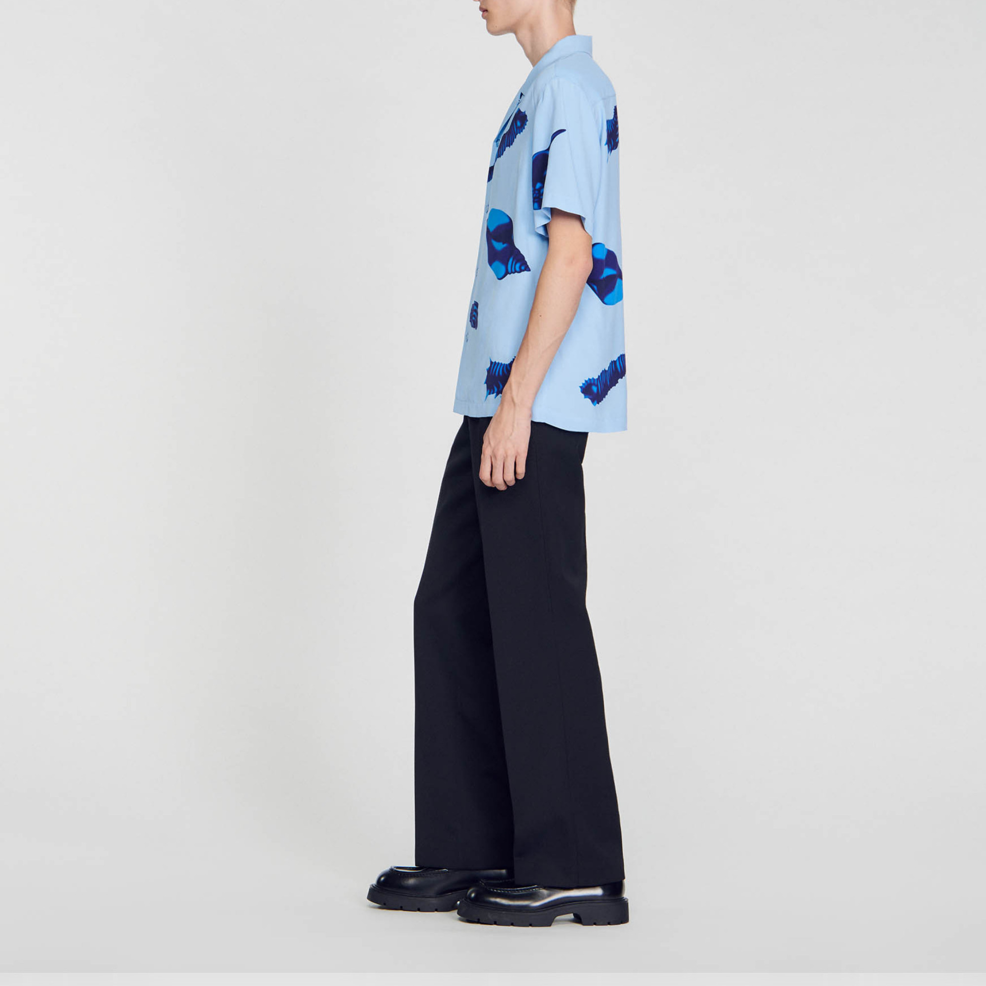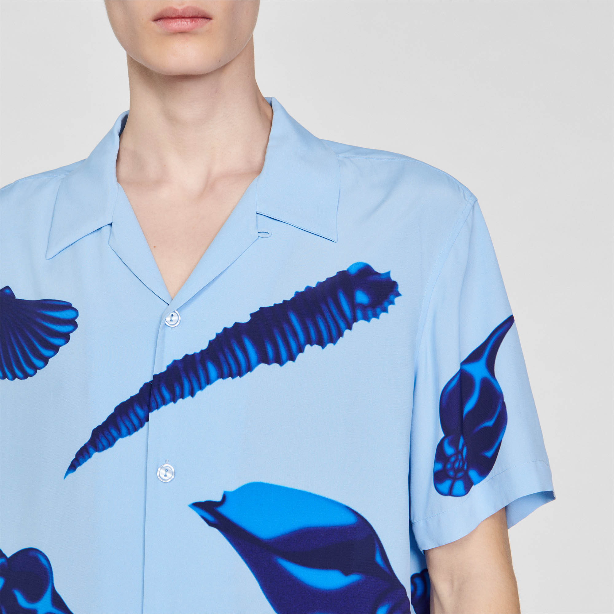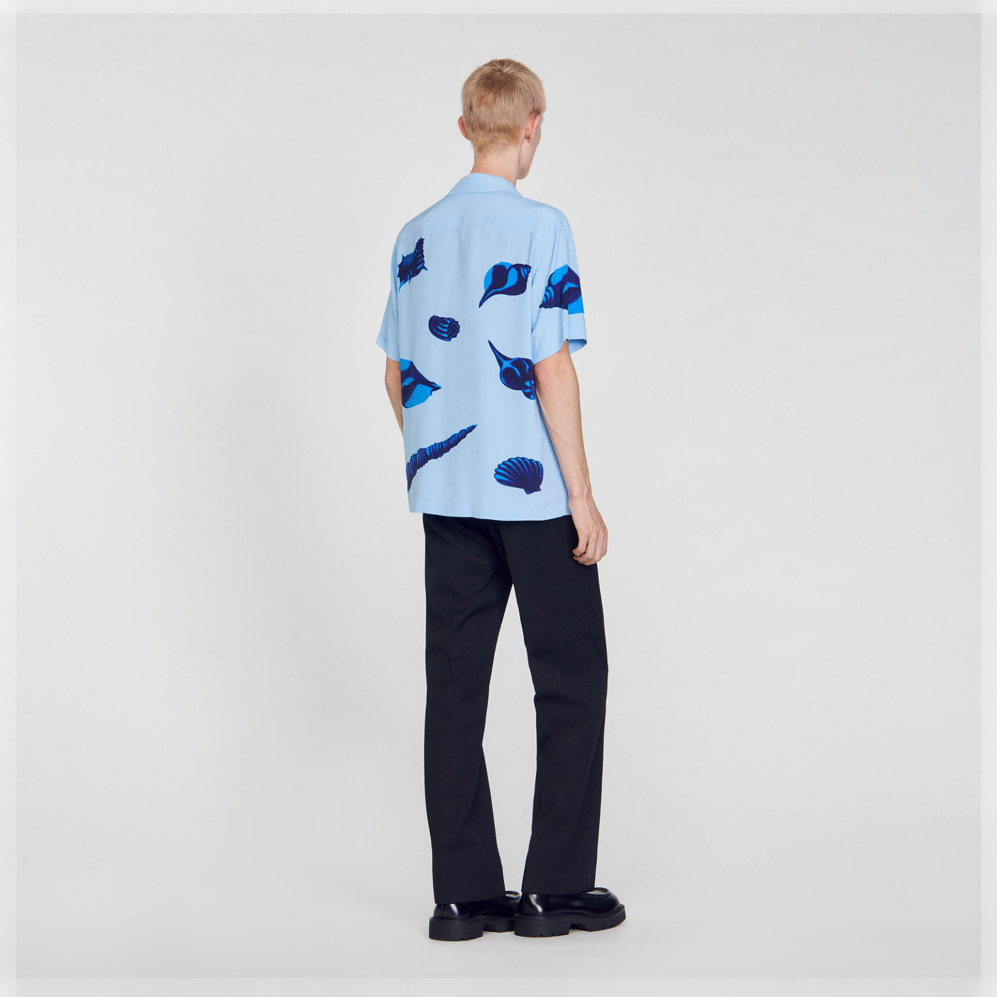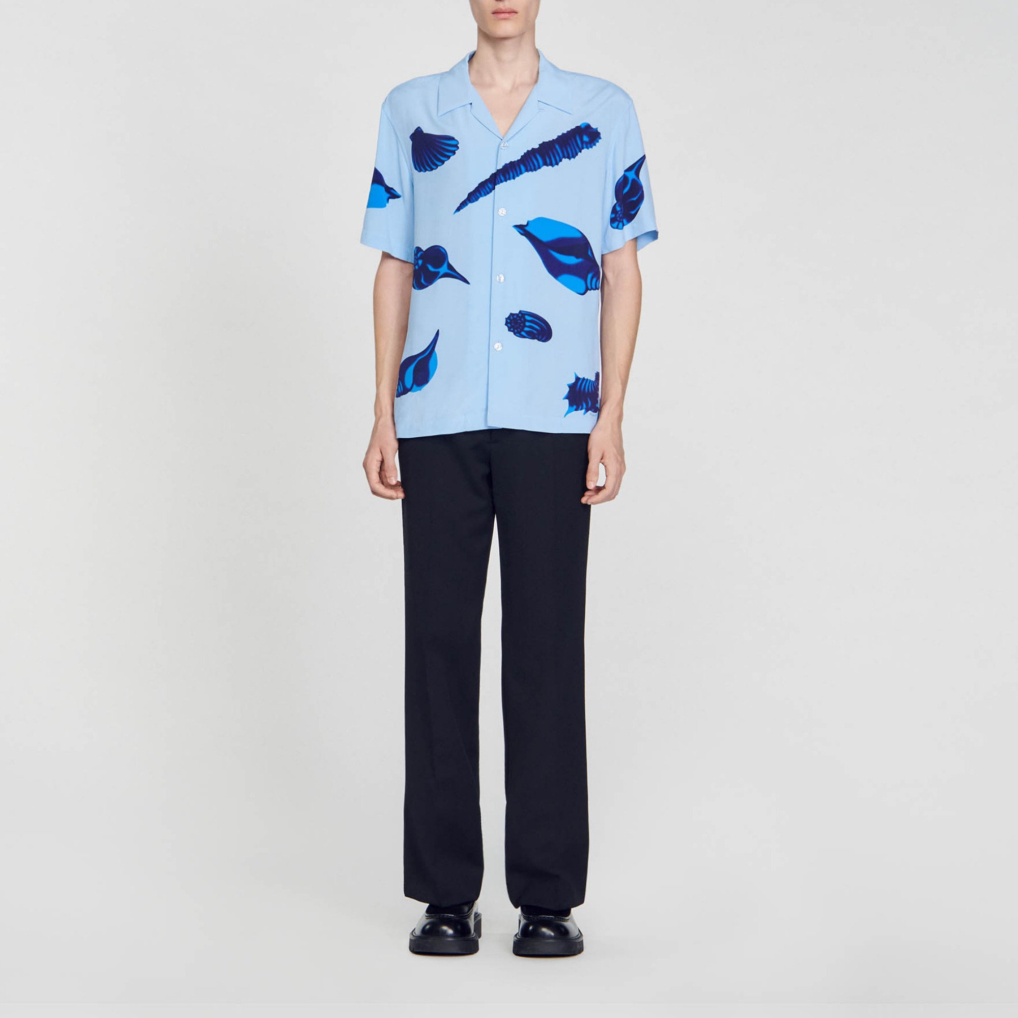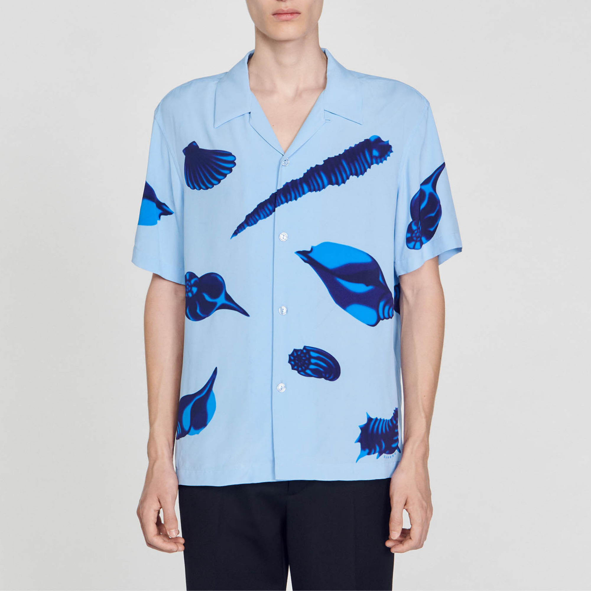 Sandro viscose Short-sleeved shirt with shark collar, button fastening and a seashell pattern.
