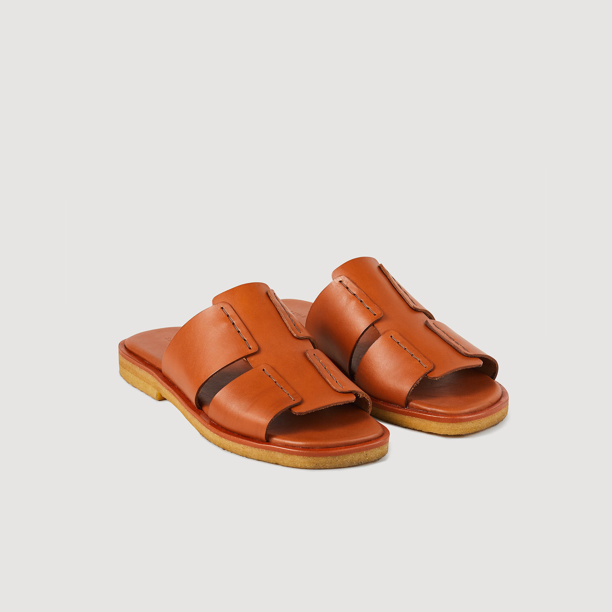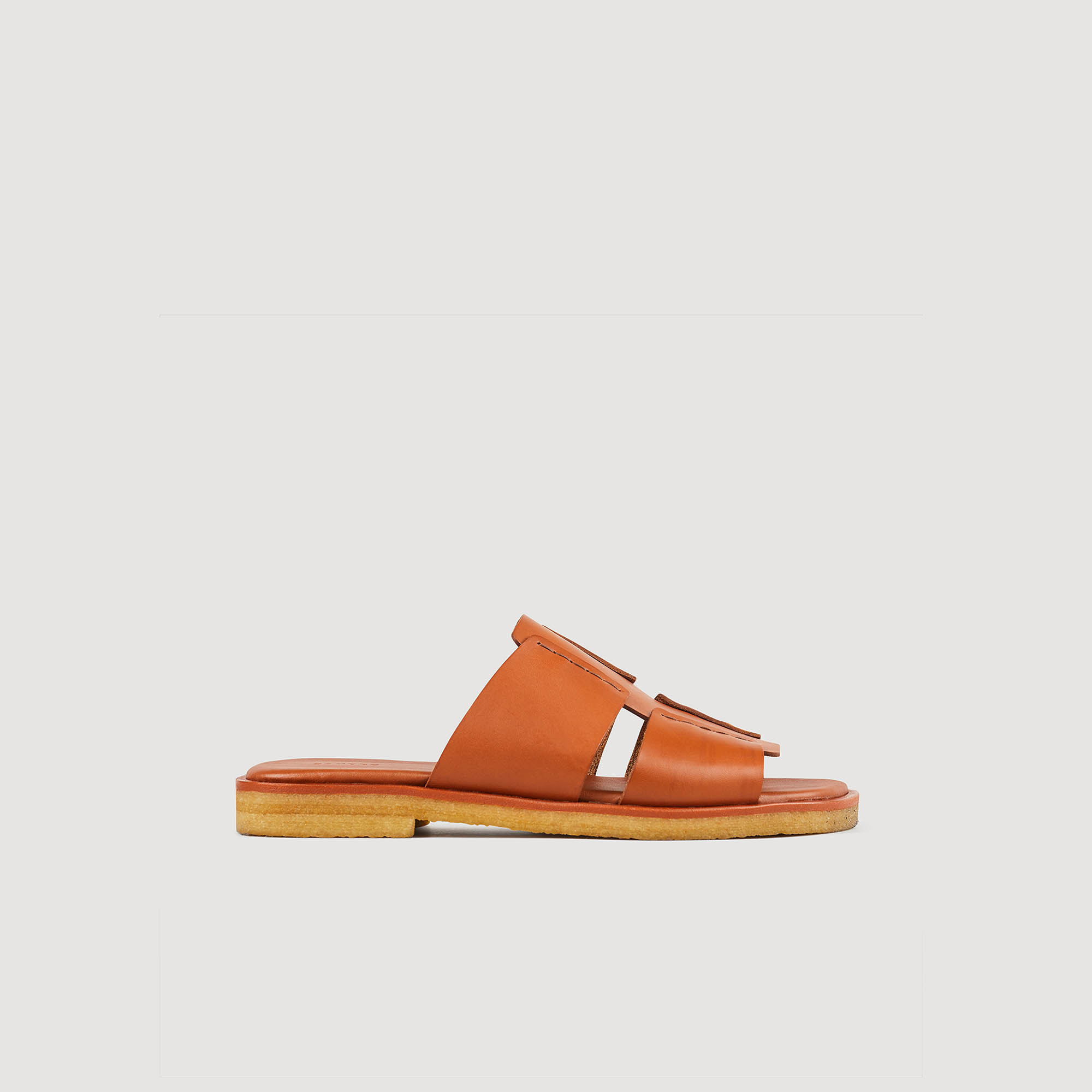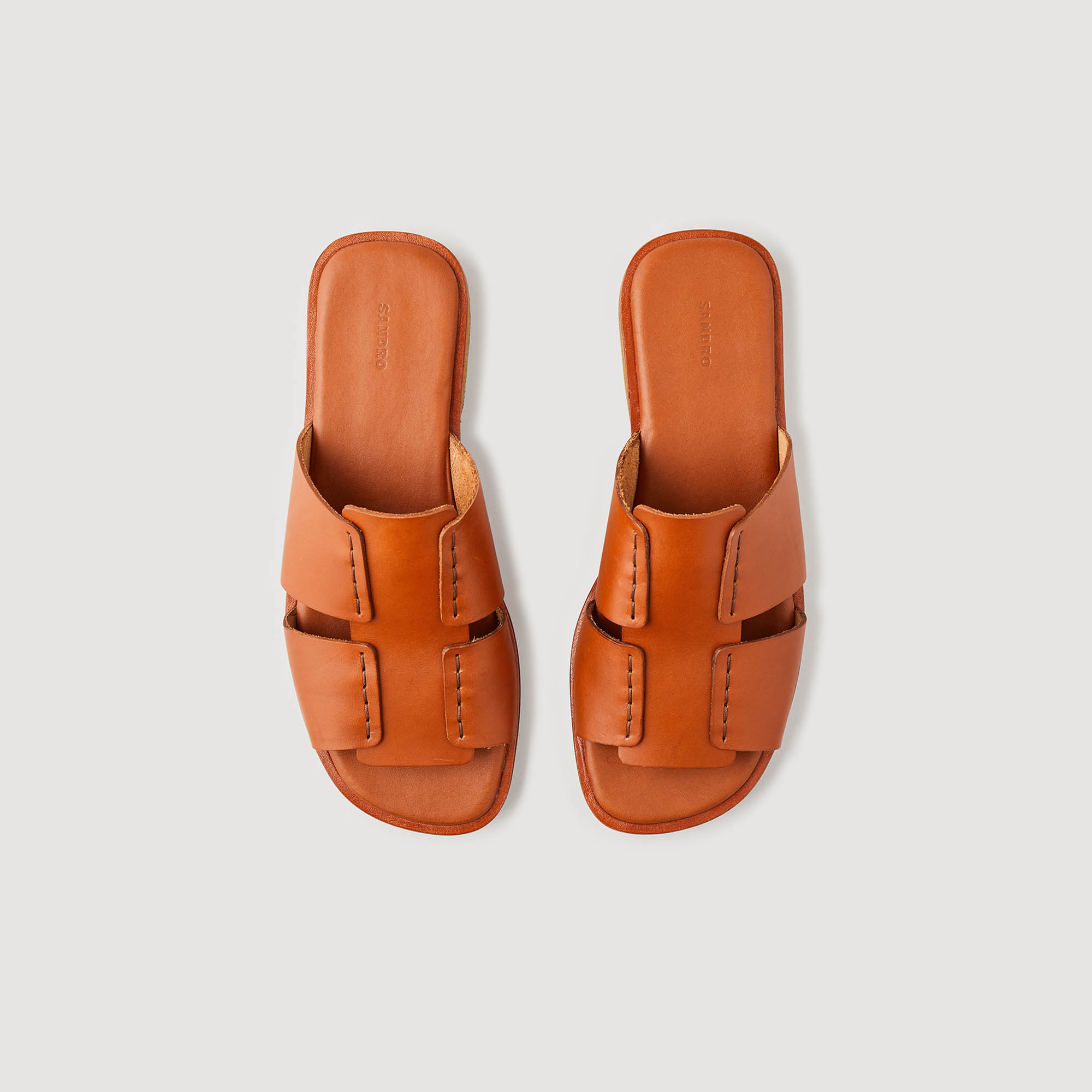 Sandro leather Mule sandals in plant-based leather with wide, hand-stitched straps and a natural crepe sole.