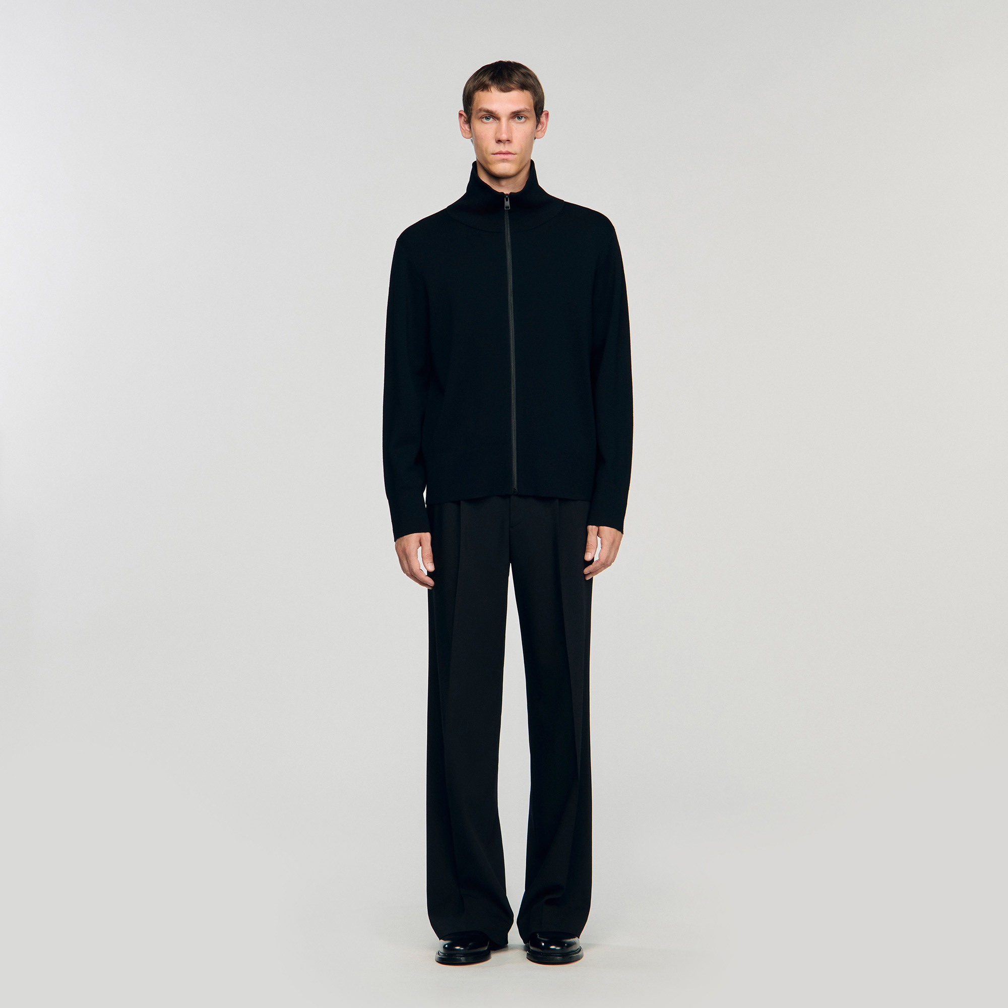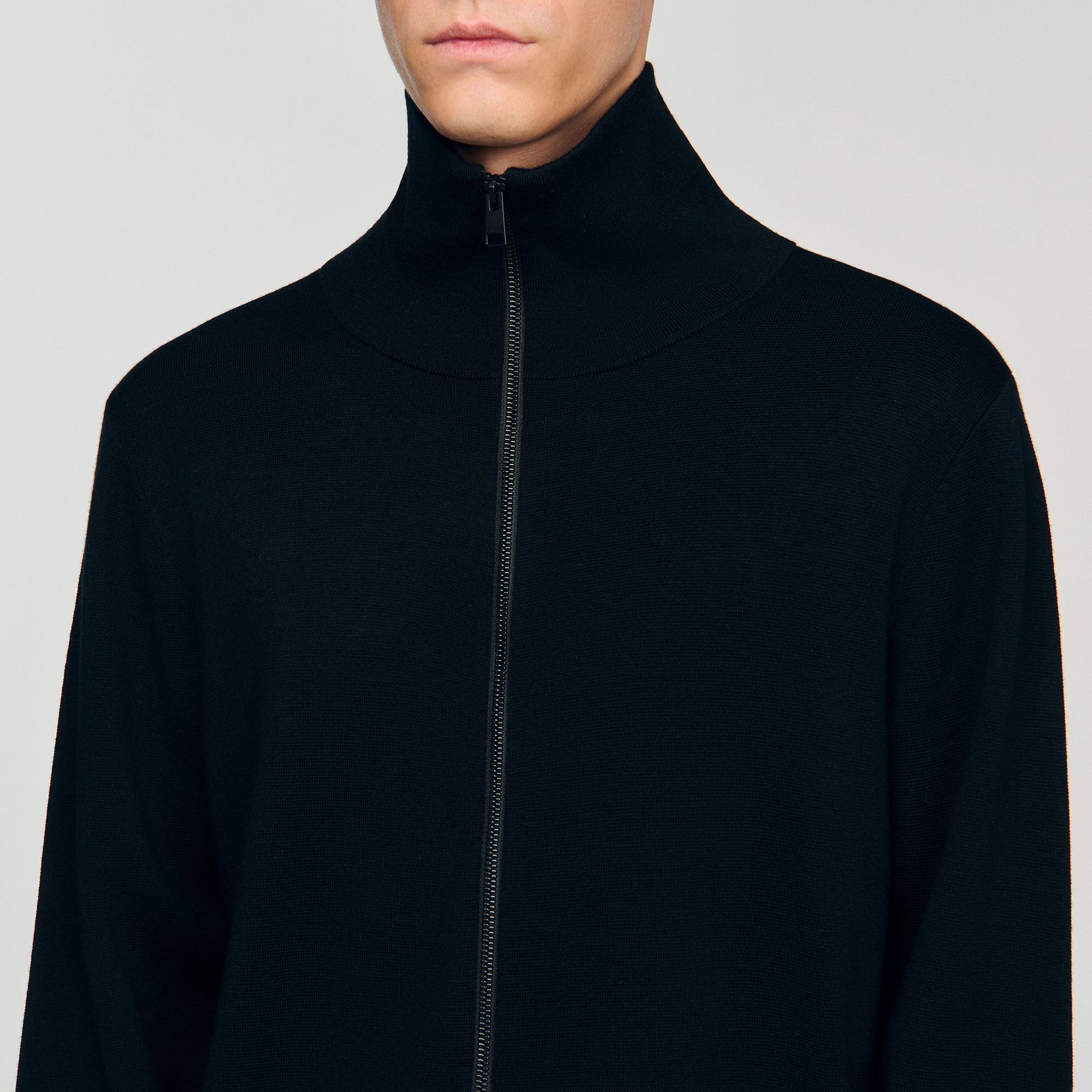 Sandro Sandro men's cardigan Wool cardigan High neck Zip fastening on the front Long sleeves Ribbed trim finish True to size The wool in this item comes from extensive farming, which respects animal welfare and contributes to the preservation of local biodiversity.
