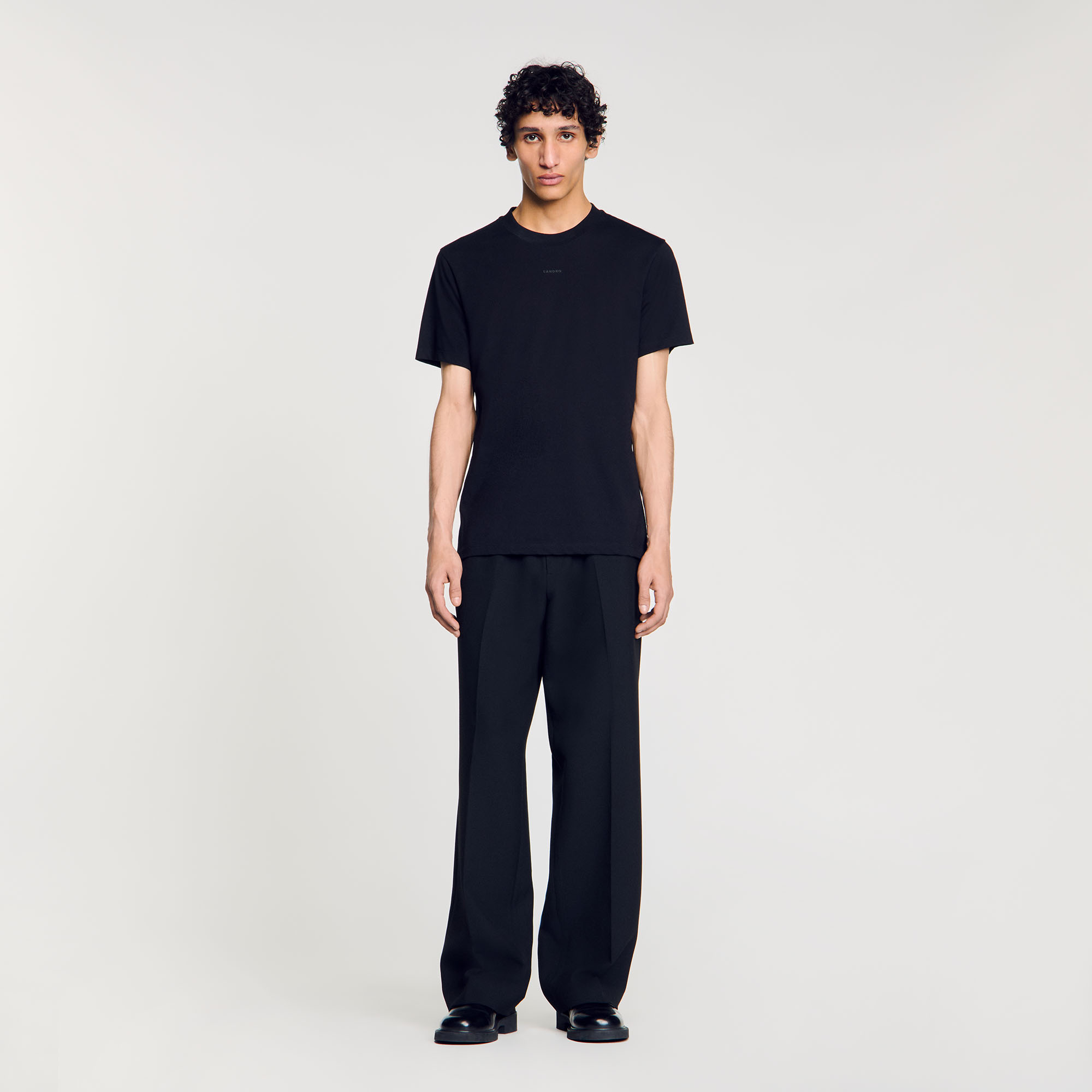 Sandro cotton Short-sleeved, mock neck cotton T-shirt with rubberized Sandro logo.