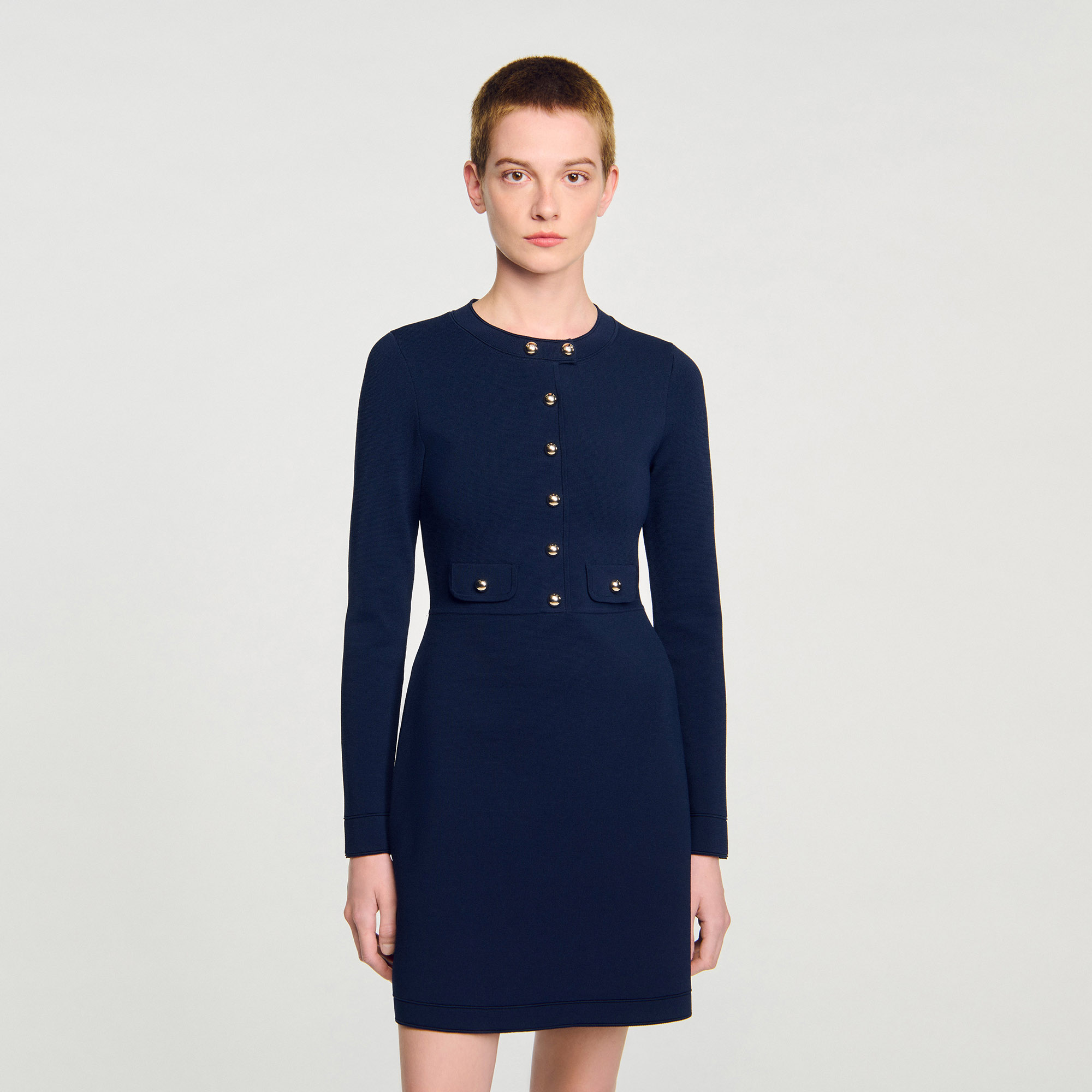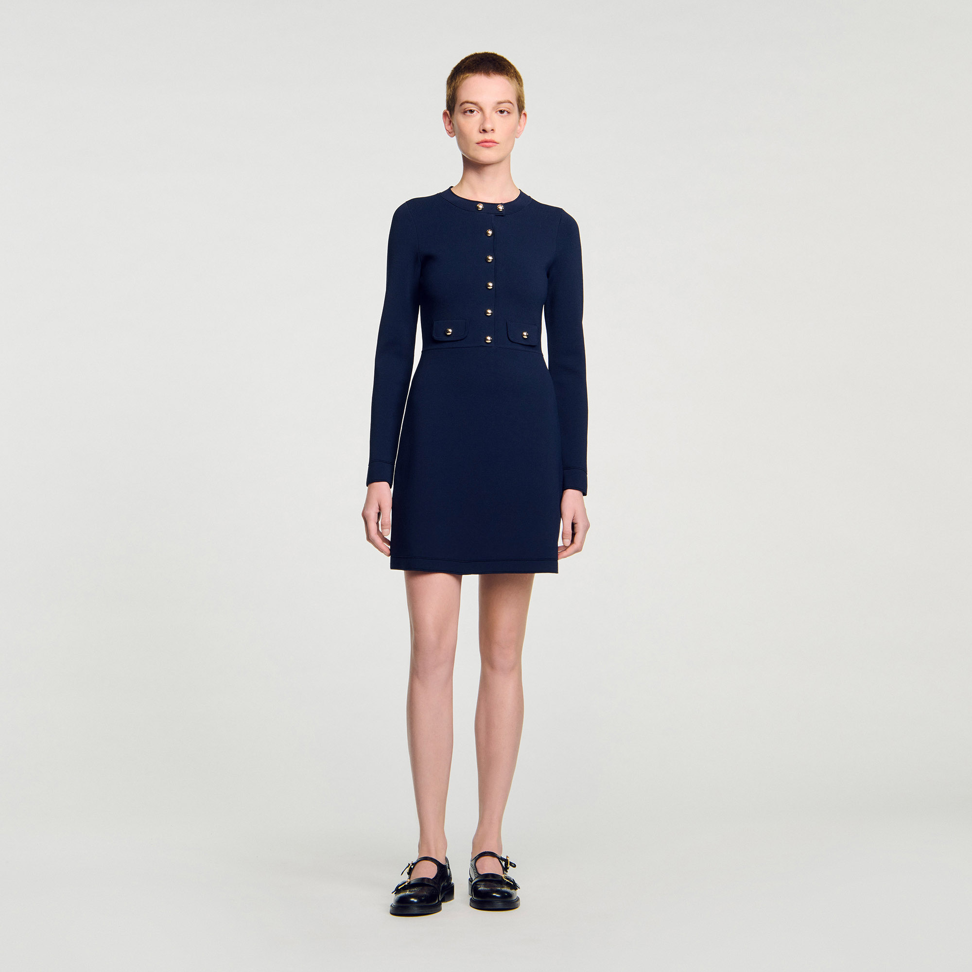 Sandro Women's mini knit dress Round neck Button placket 2 flap pockets with decorative button Designed for a slim-fit.