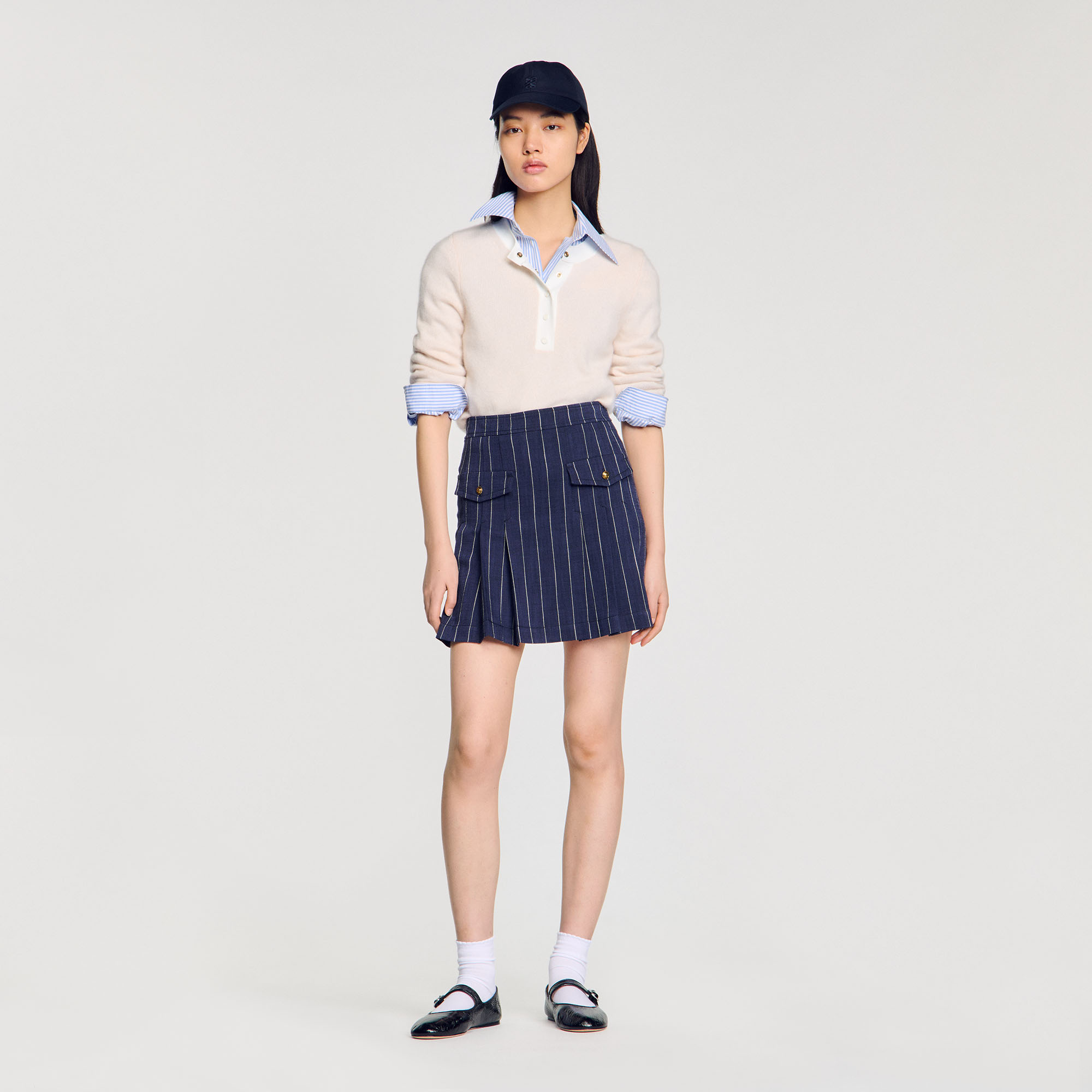 Sandro wool Wool and cashmere sweater featuring a round neck with contrasting placket and press studs, long sleeves and ribbed trim.