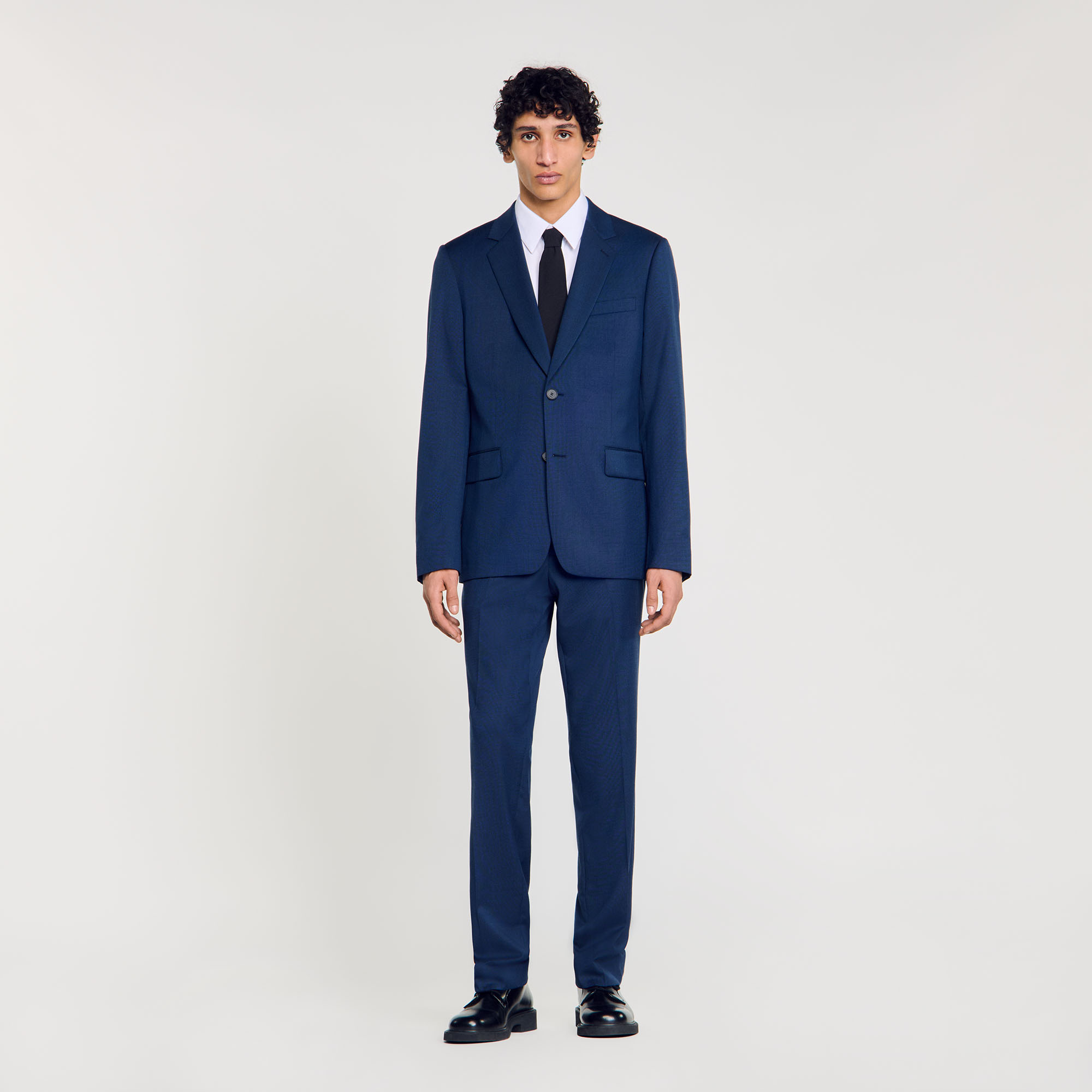 Sandro Men's wool suit jacket Classic fit Micro pattern 2-button fastening Long sleeves with button cuffs 2 flap pockets Welt pocket True to size This jacket matches the trousers.