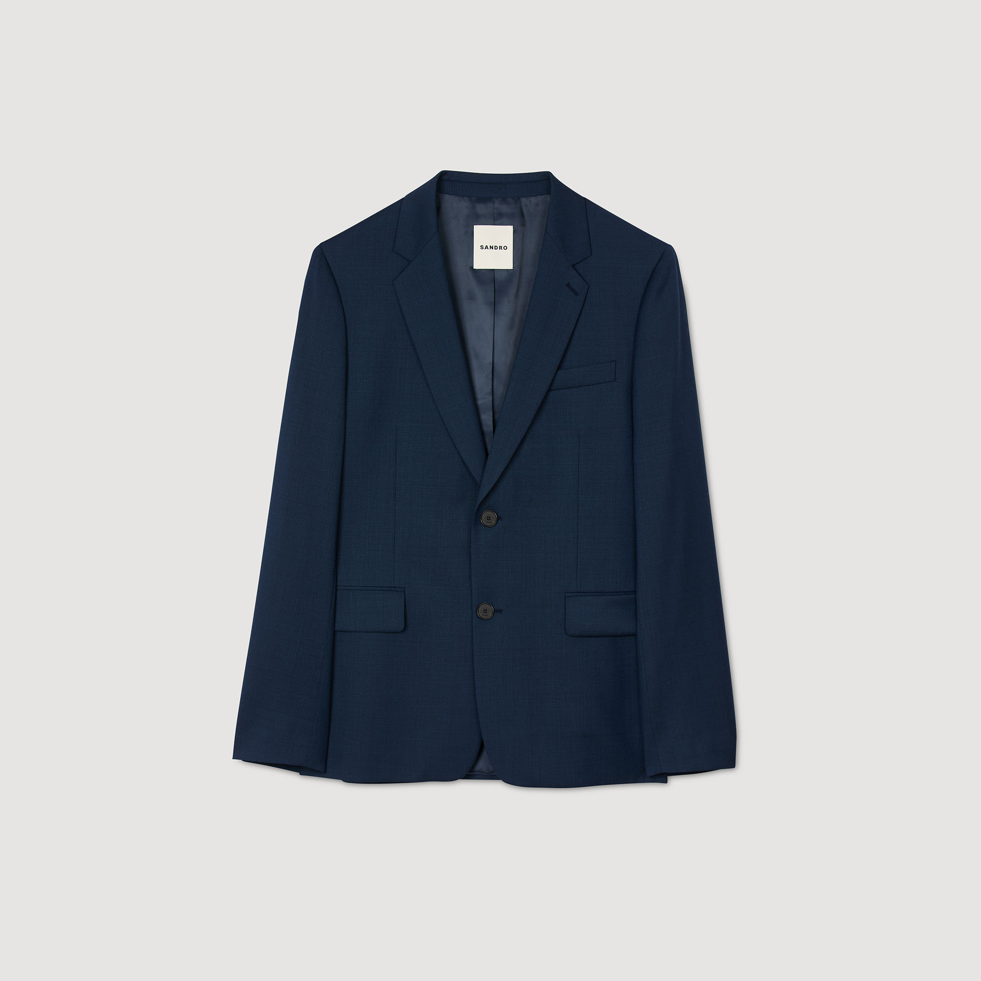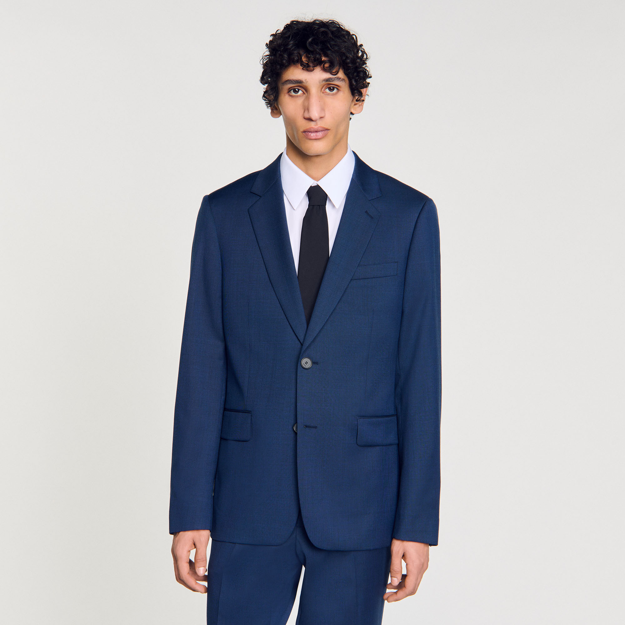 Sandro virgin Classic wool suit jacket with two-button fastening, flap pockets and back vent.