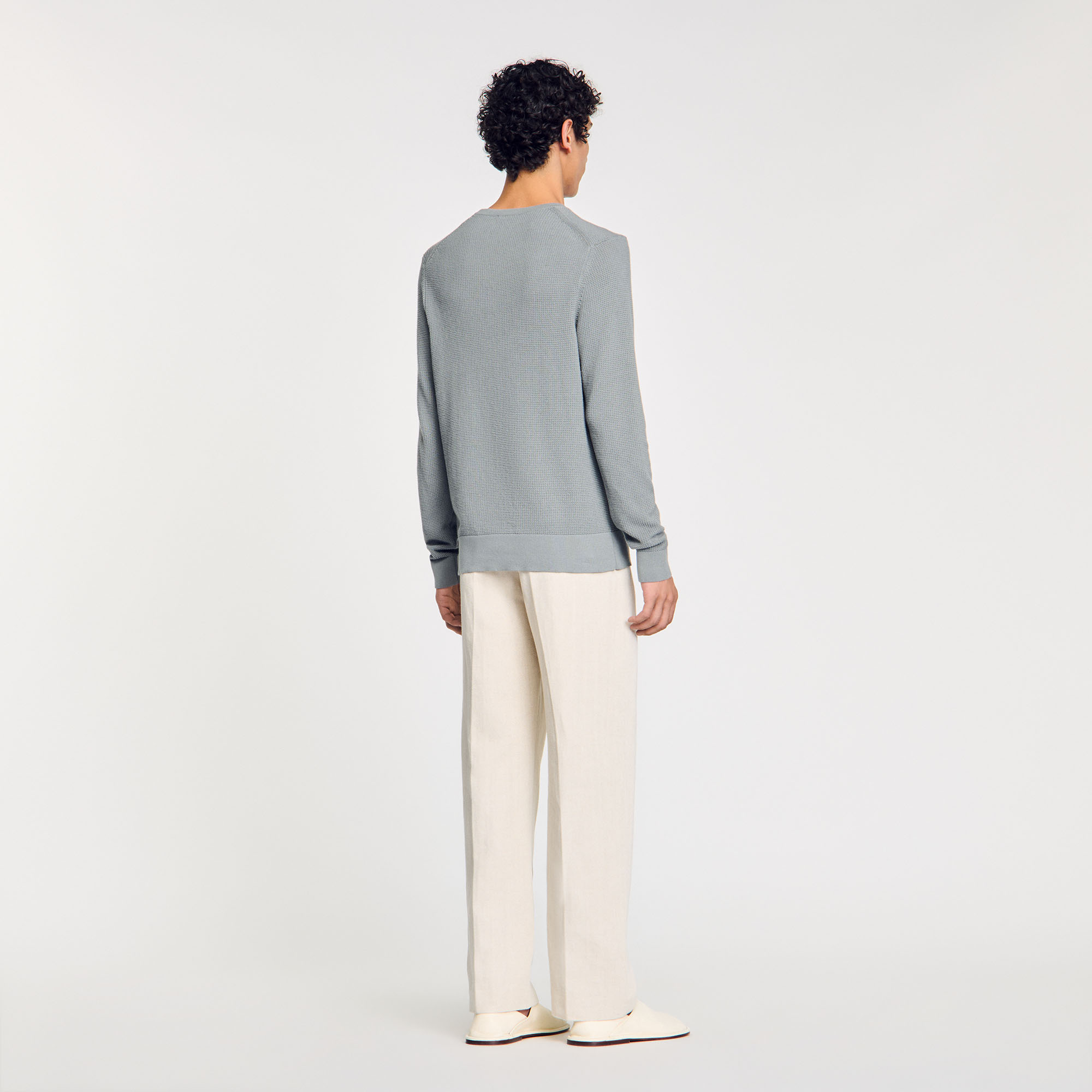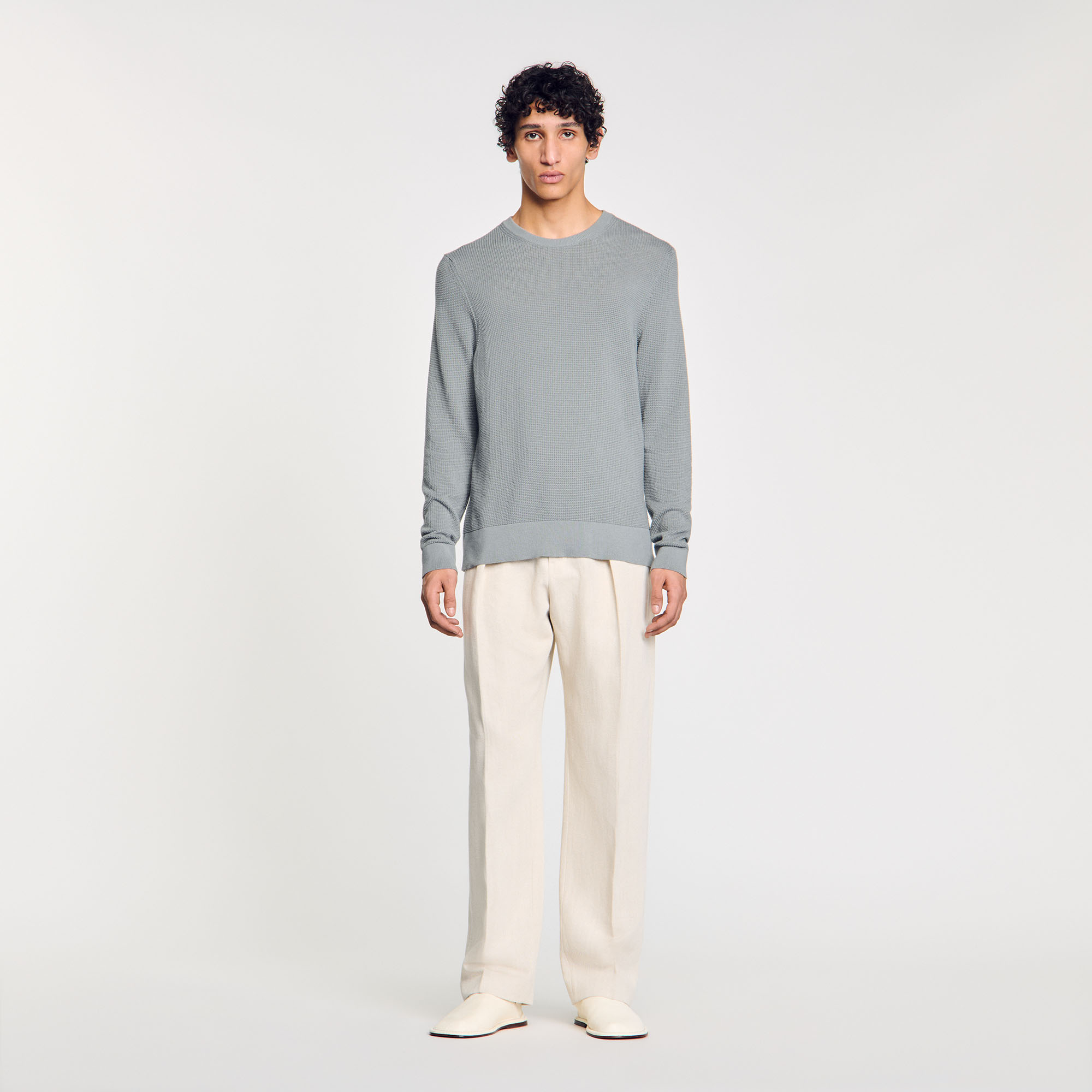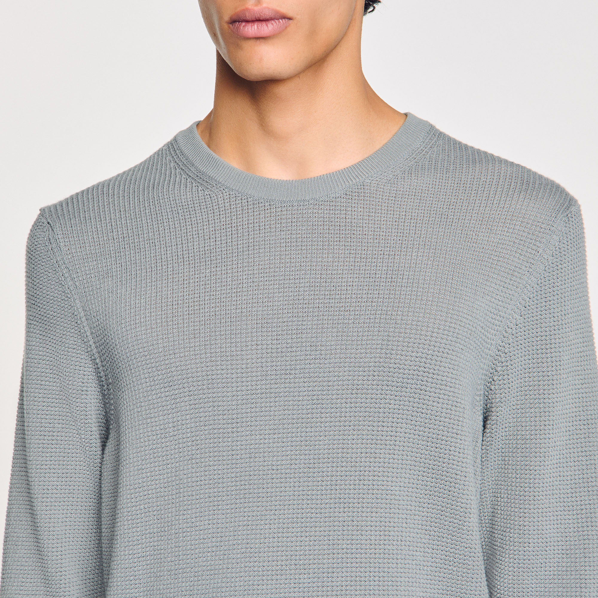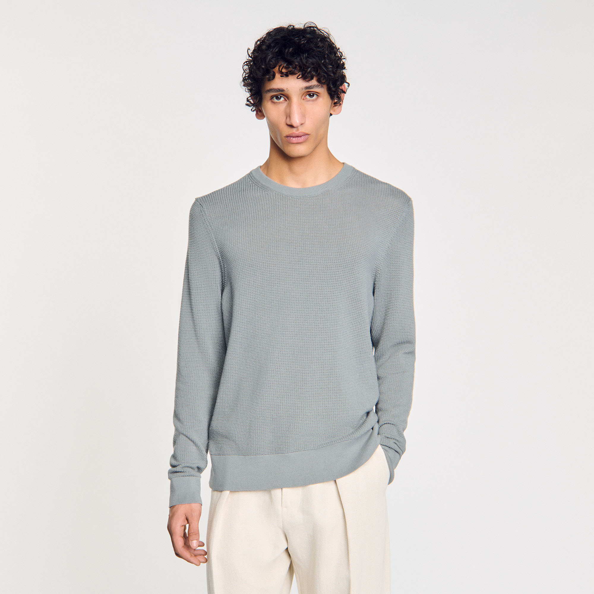 Sandro cotton Rice-stitch textured knit sweater with round neck and long sleeves.