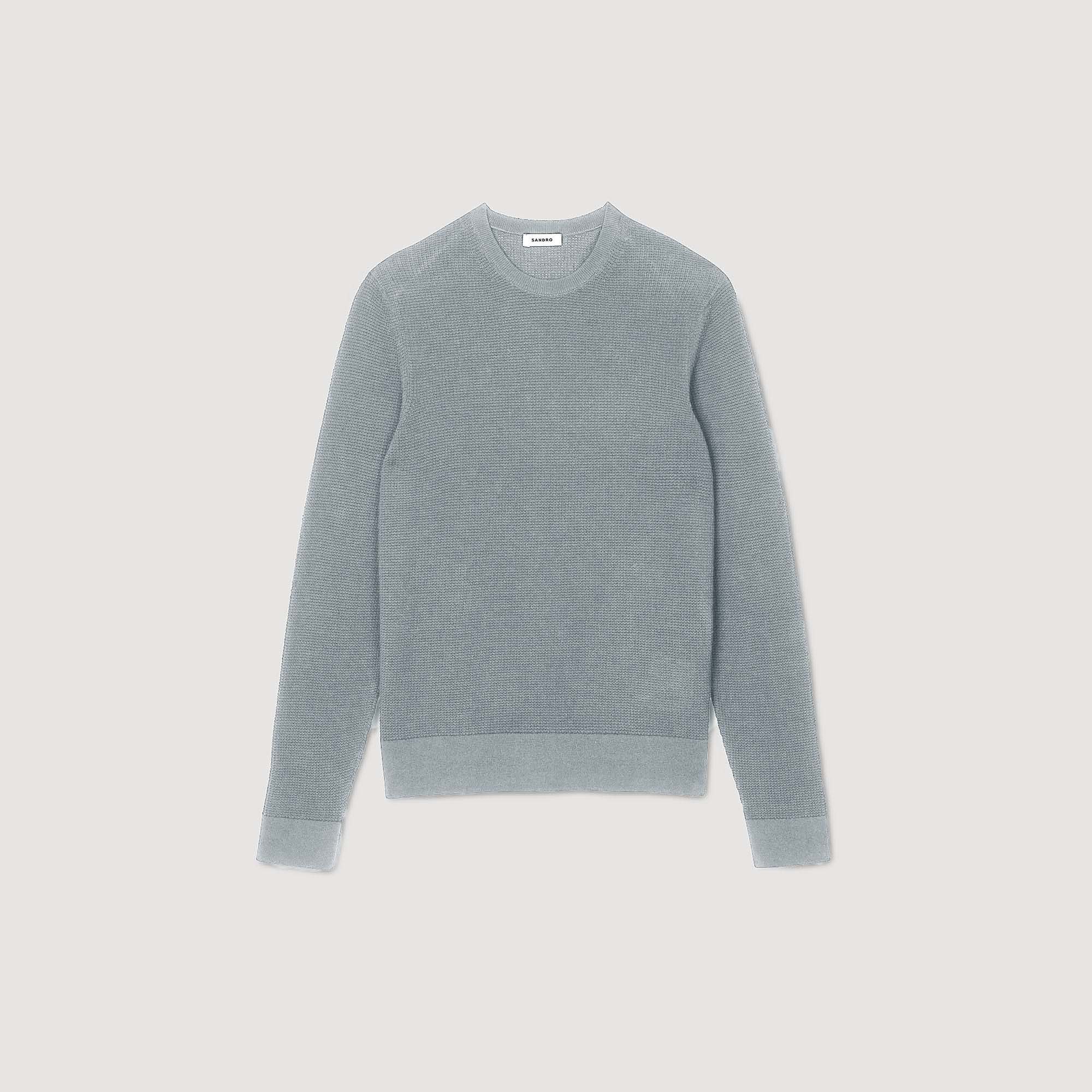 Sandro Men's textured knit sweater Rice stitch Round neck Long sleeves Plain waist and cuffs True to size.