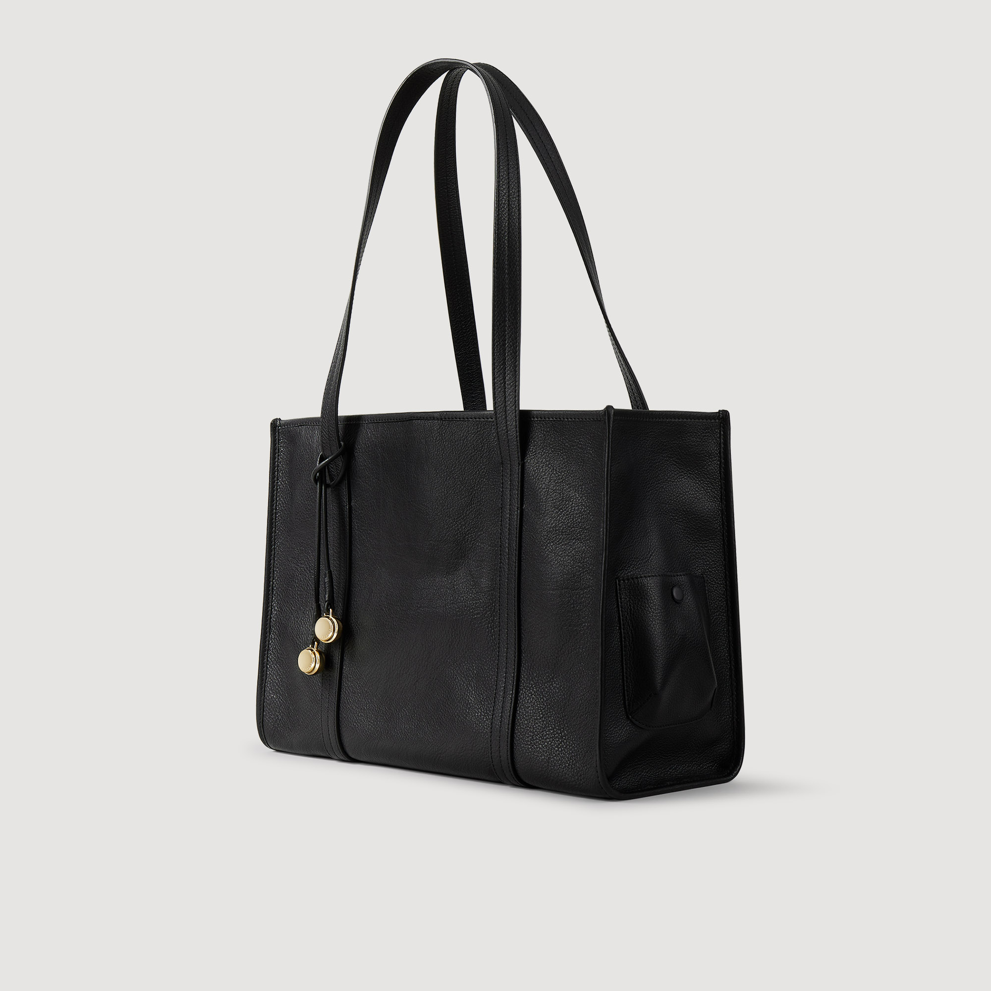 Sandro leather Soft leather tote bag with long shoulder straps, magnetic clasp, side pocket and charms.