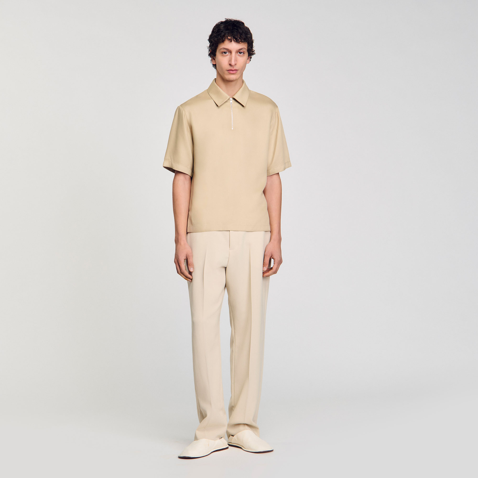 Sandro Men's zip-neck polo shirt Short sleeves Designed for an oversized fit.