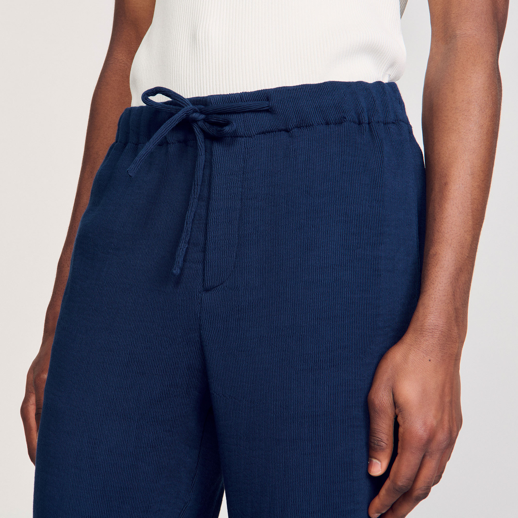 Sandro viscose Pleated Bermuda shorts with elasticated drawstring waist, fly and side pockets.