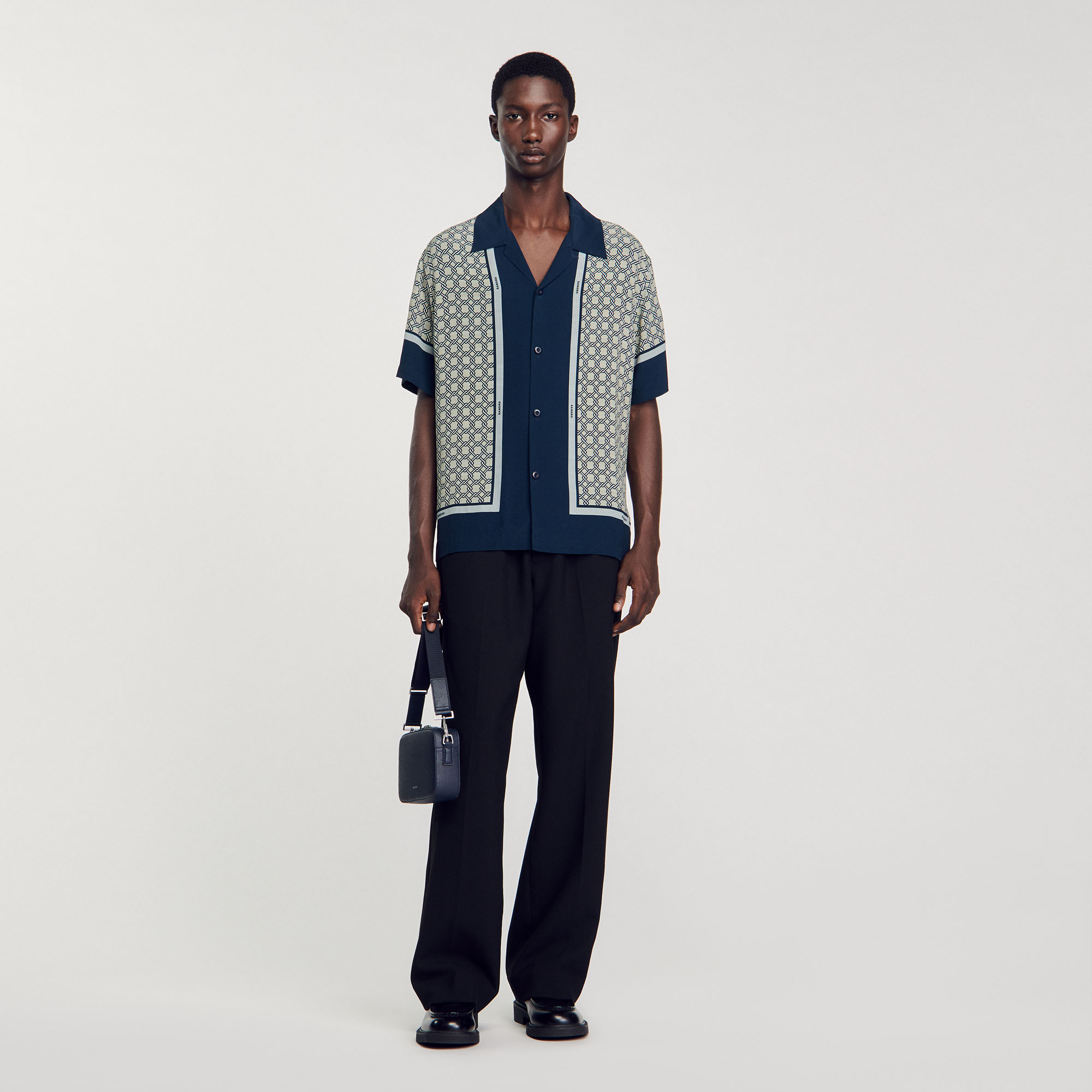 Sandro Men's shirt Shark collar Short sleeves Button fastening Cross motif Designed for a loose fit.