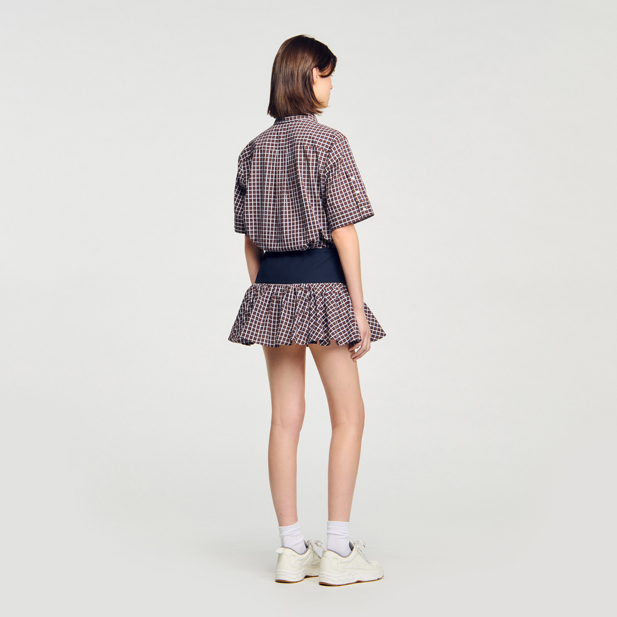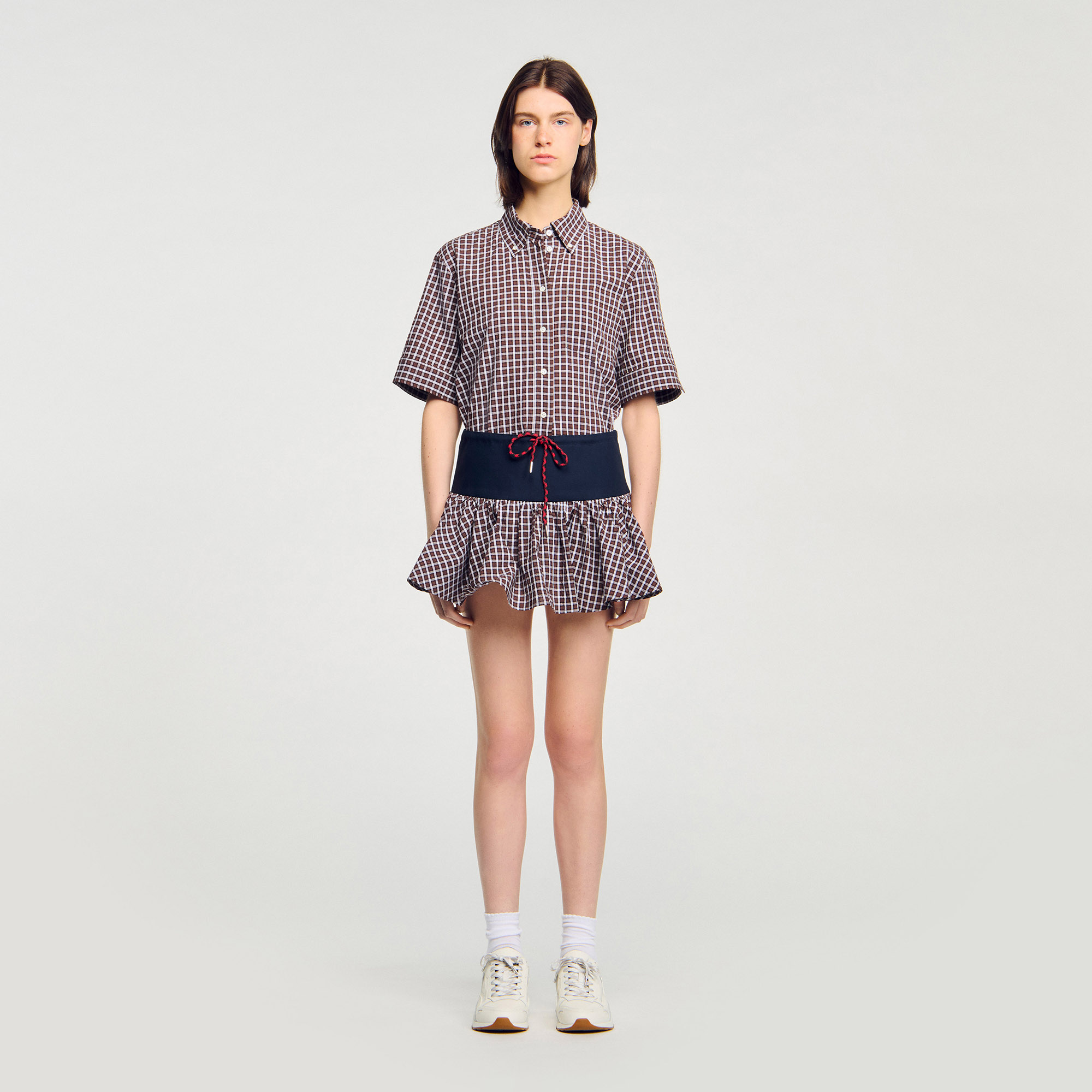 Sandro Women's check skort High waist Flared Decorative drawstring Side zip fastening Designed for a flared fit This skirt matches the shirt.