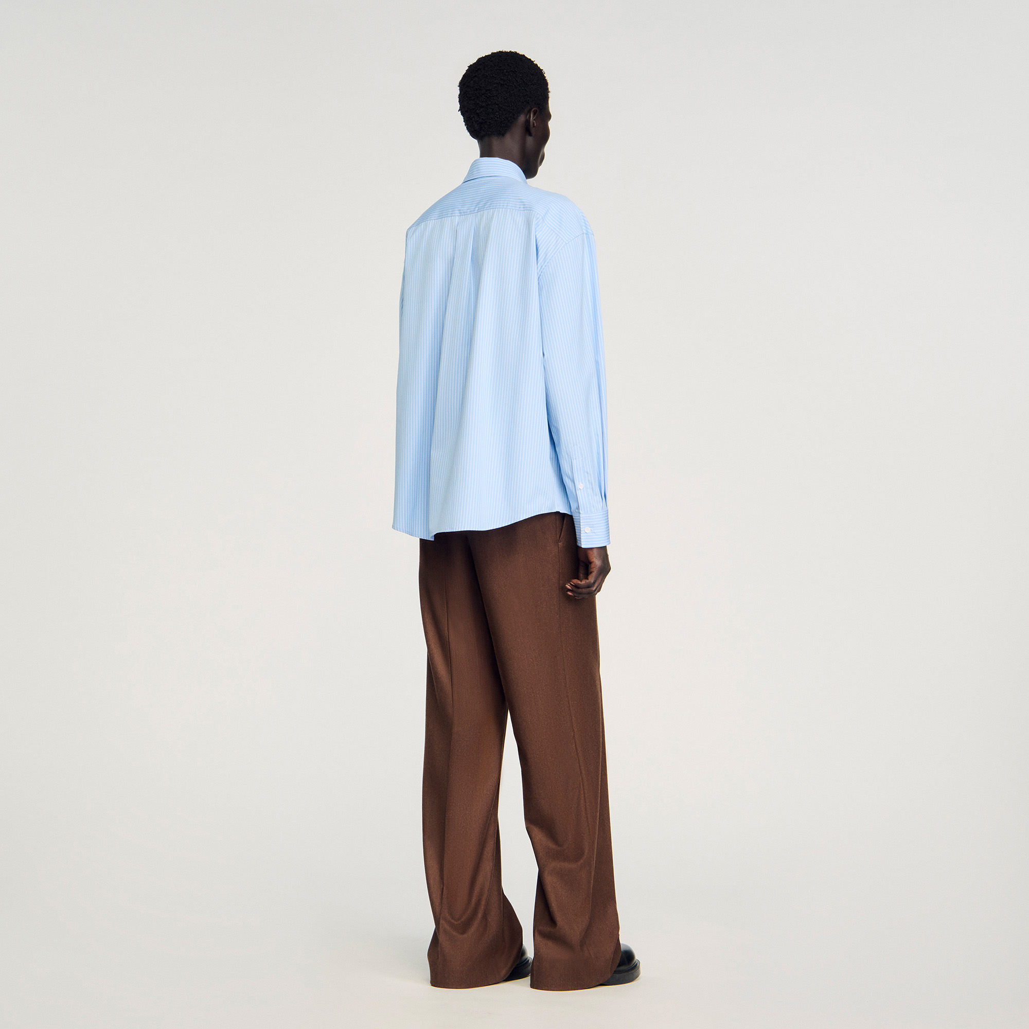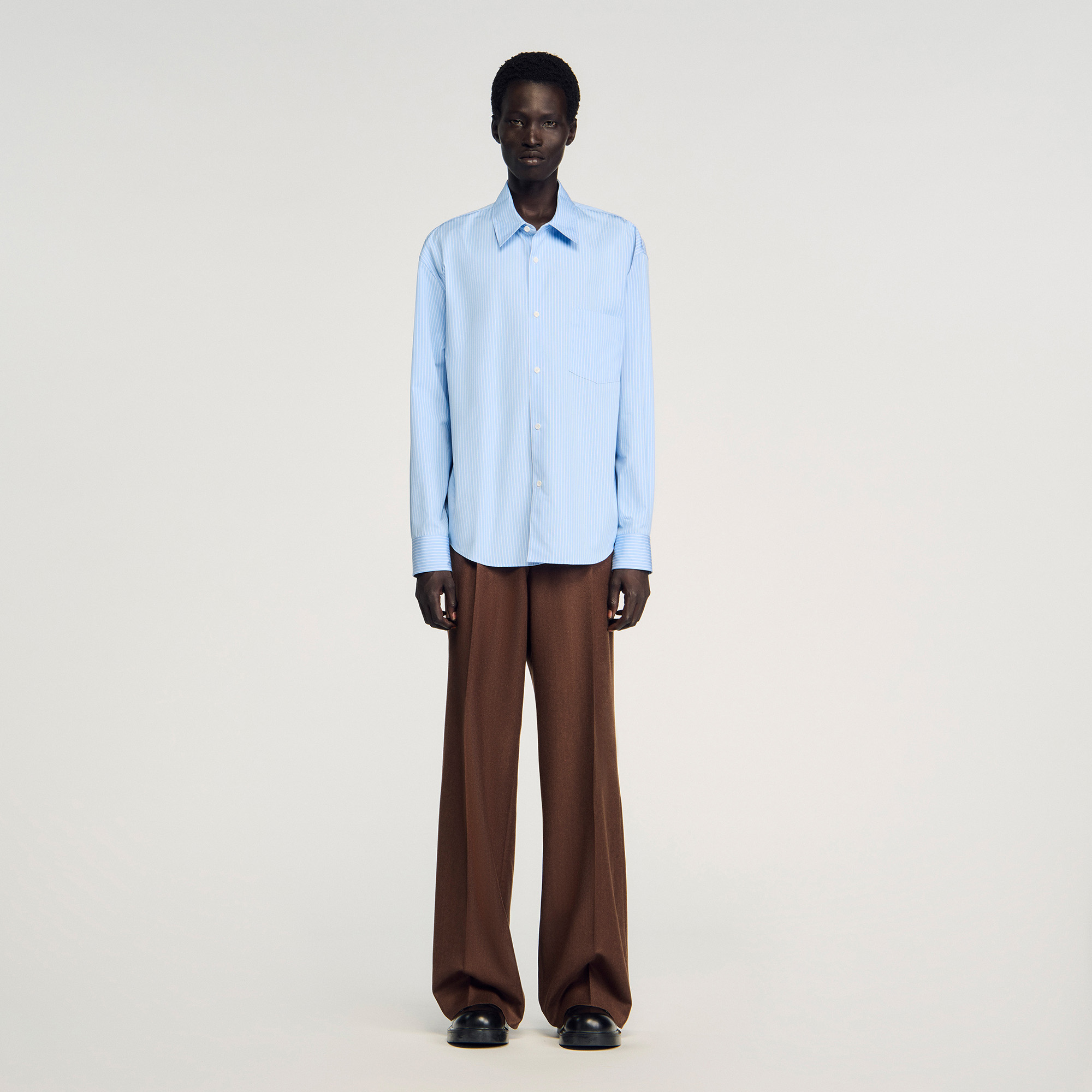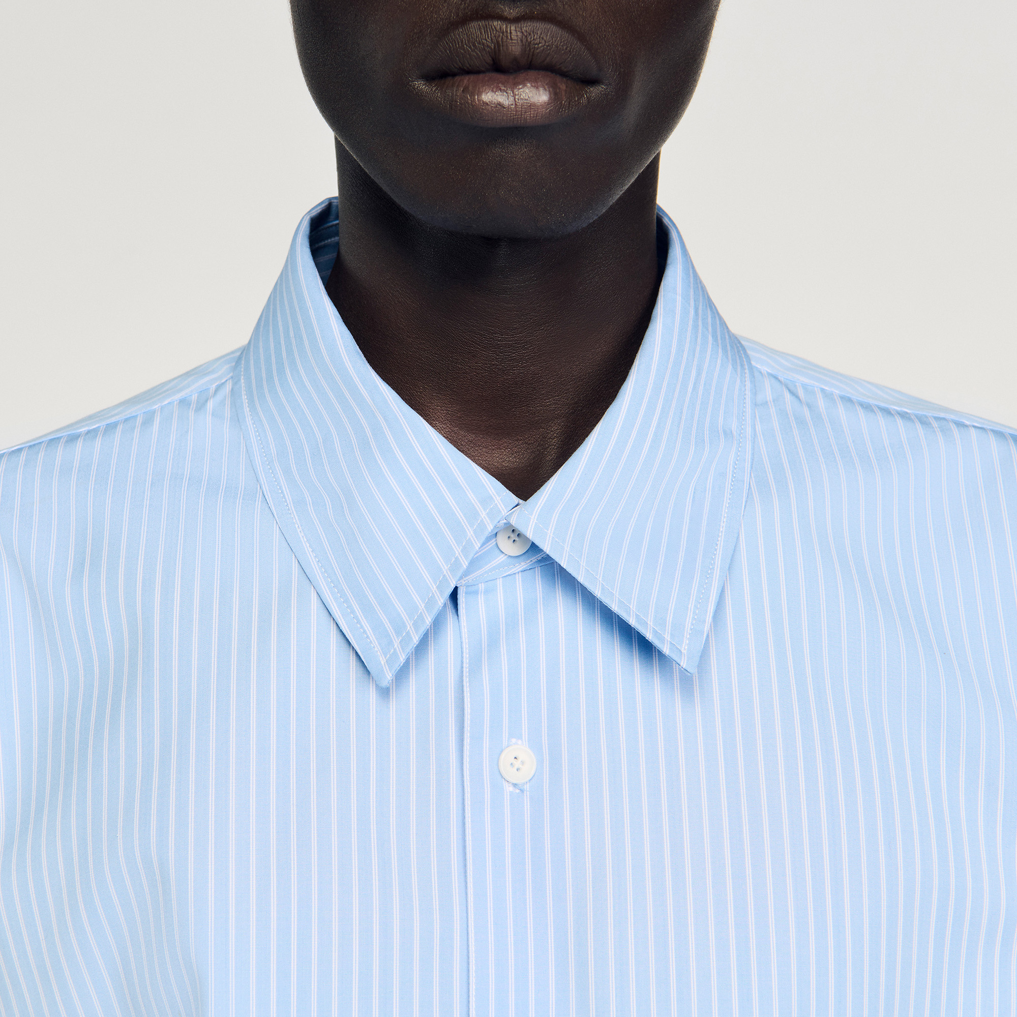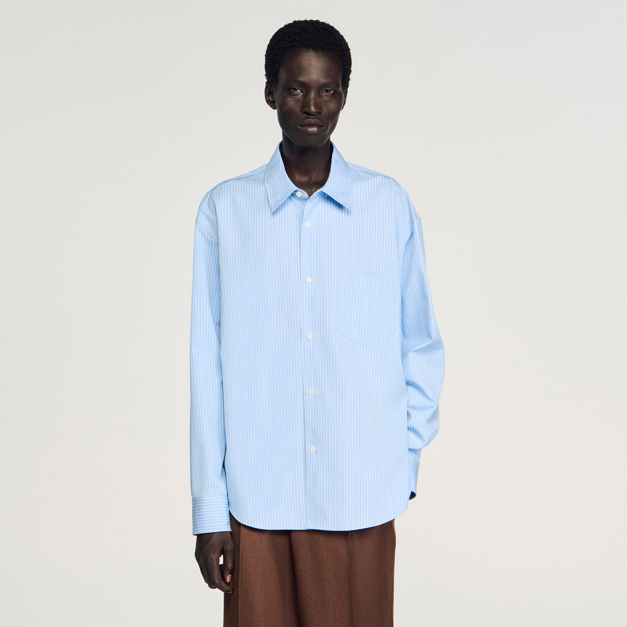 Sandro Men's oversized striped shirt Classic collar Button fastening Long sleeves Chest pocket Back pleat Designed for an oversized fit.